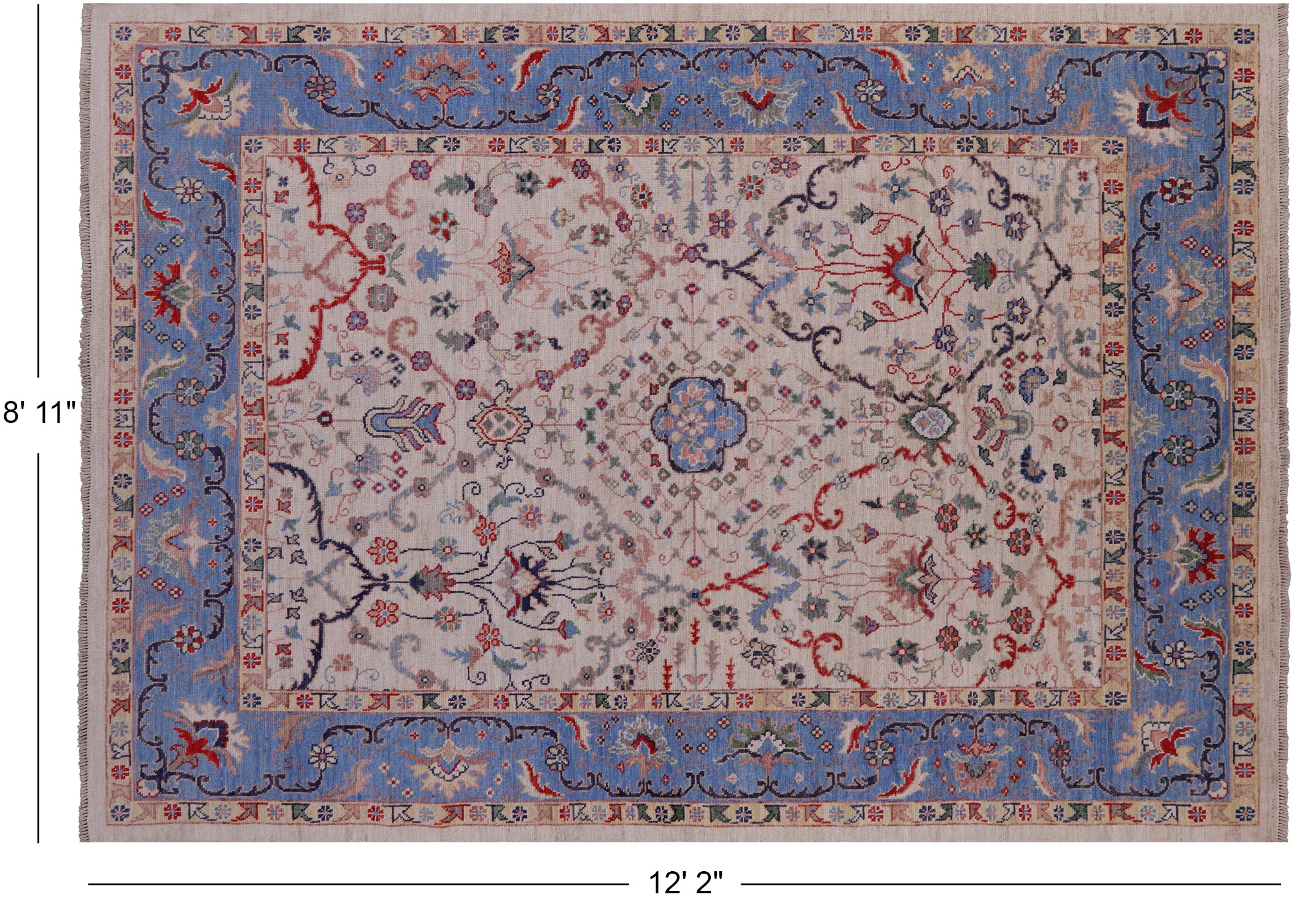 Ivory Handmade Turkish Oushak Wool On Wool Rug 8' 11" X 12' 2" - Q10490