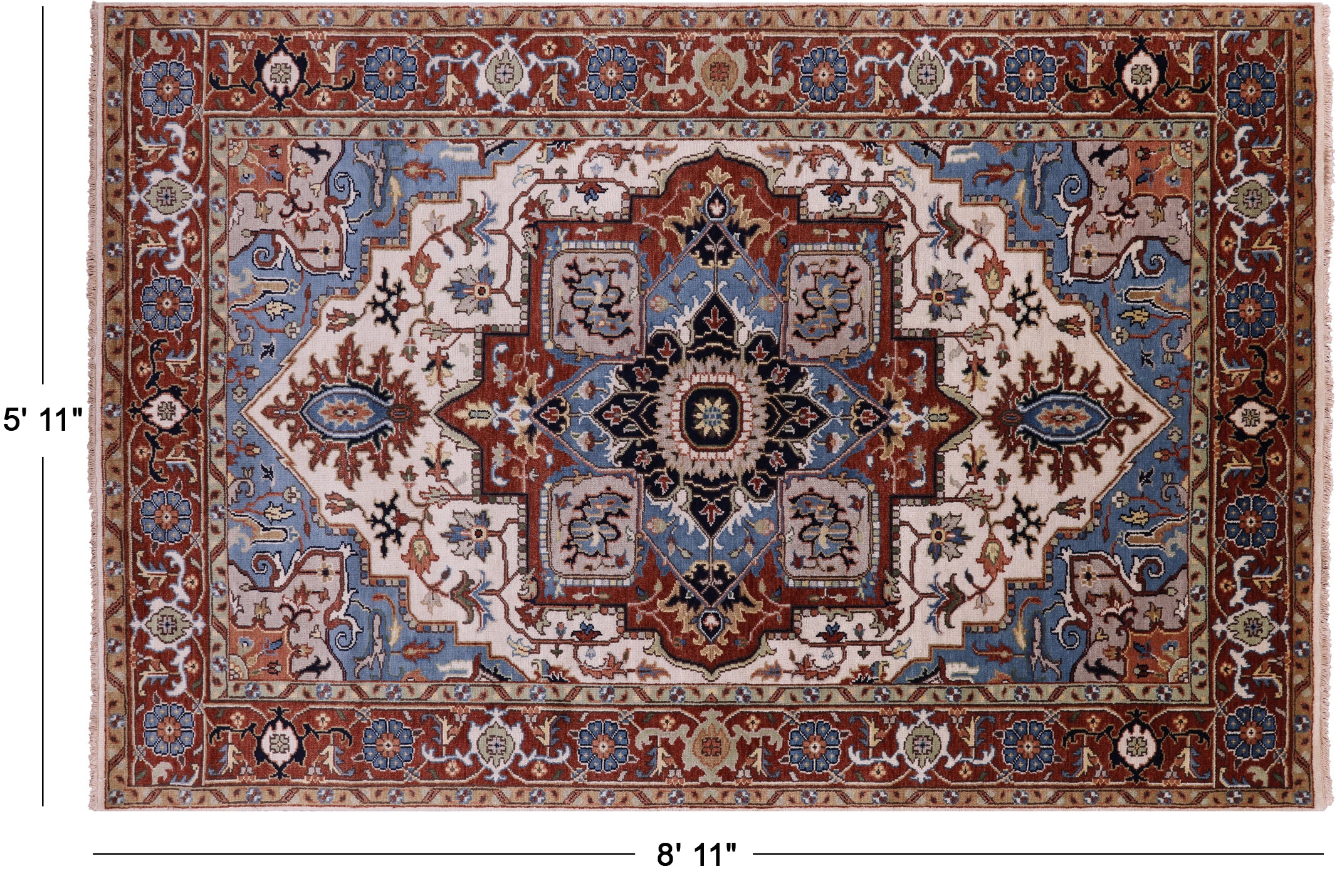 Ivory Heriz Serapi Handmade Wool Rug 5' 11" X 8' 11" - Q11576