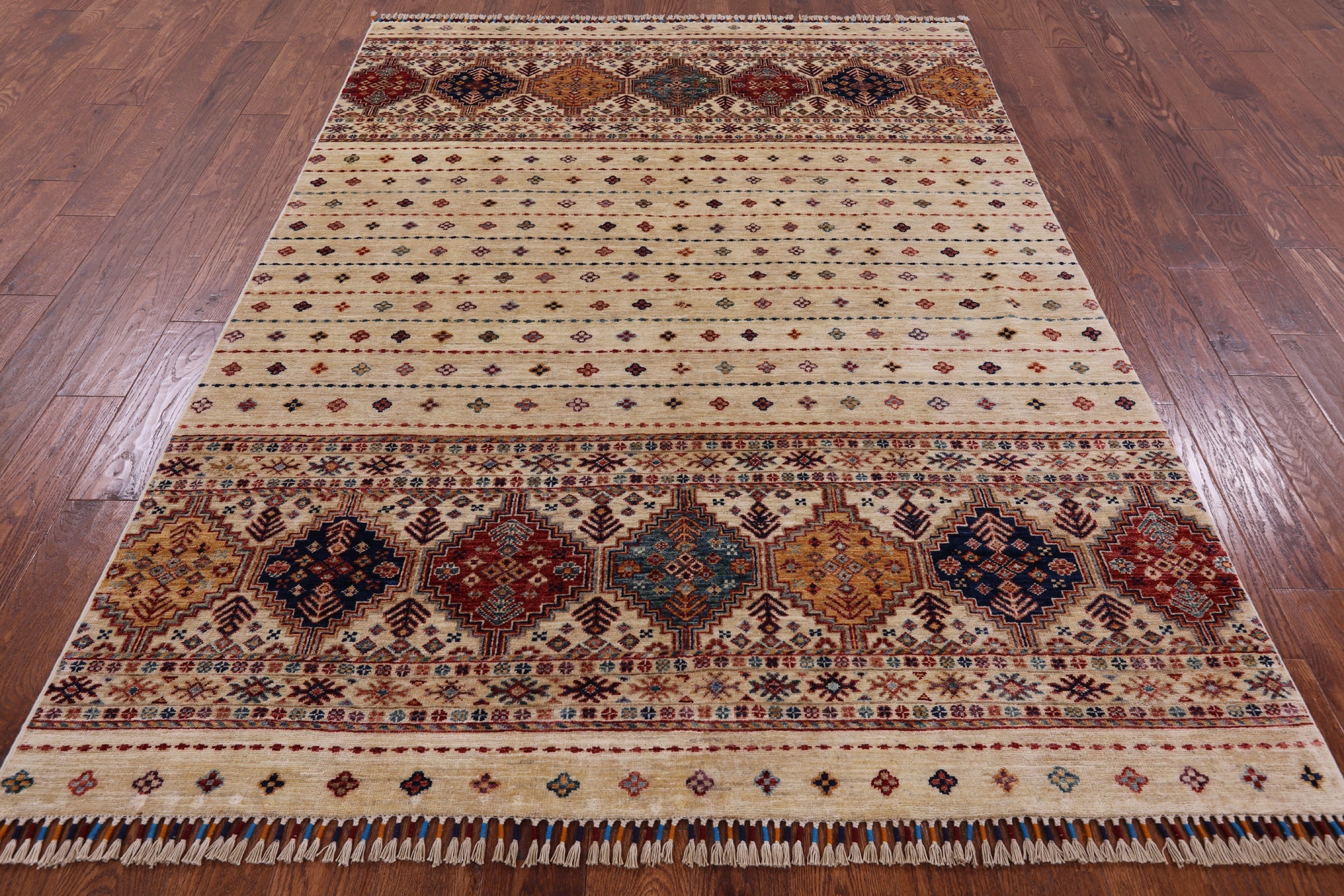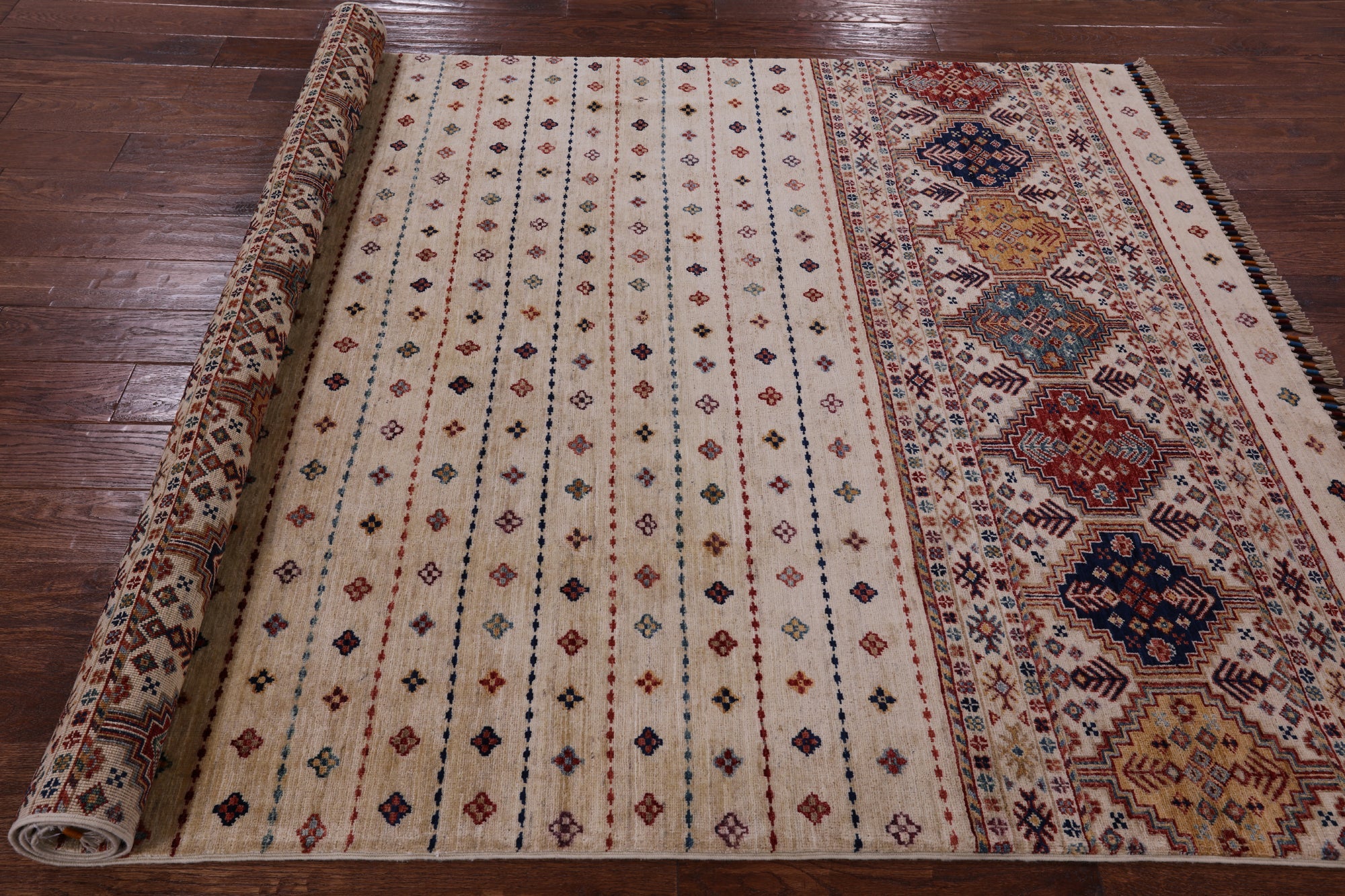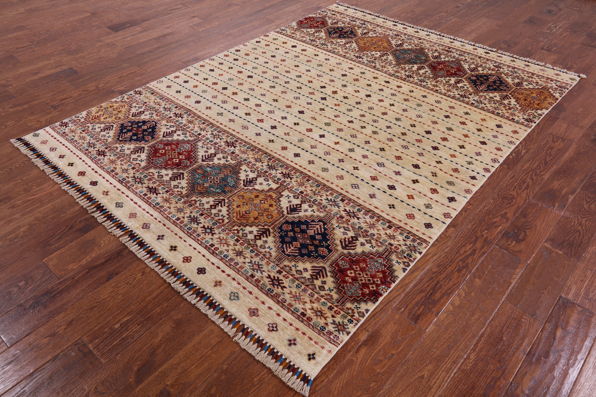 Ivory 5' 8" X 7' 9" Khorjin Super Kazak Hand Knotted Wool Rug - Q2986 is backordered and will ship as soon as it is back in stock.