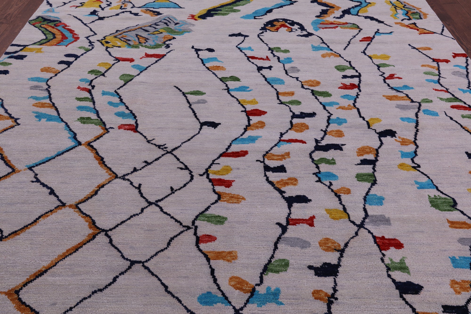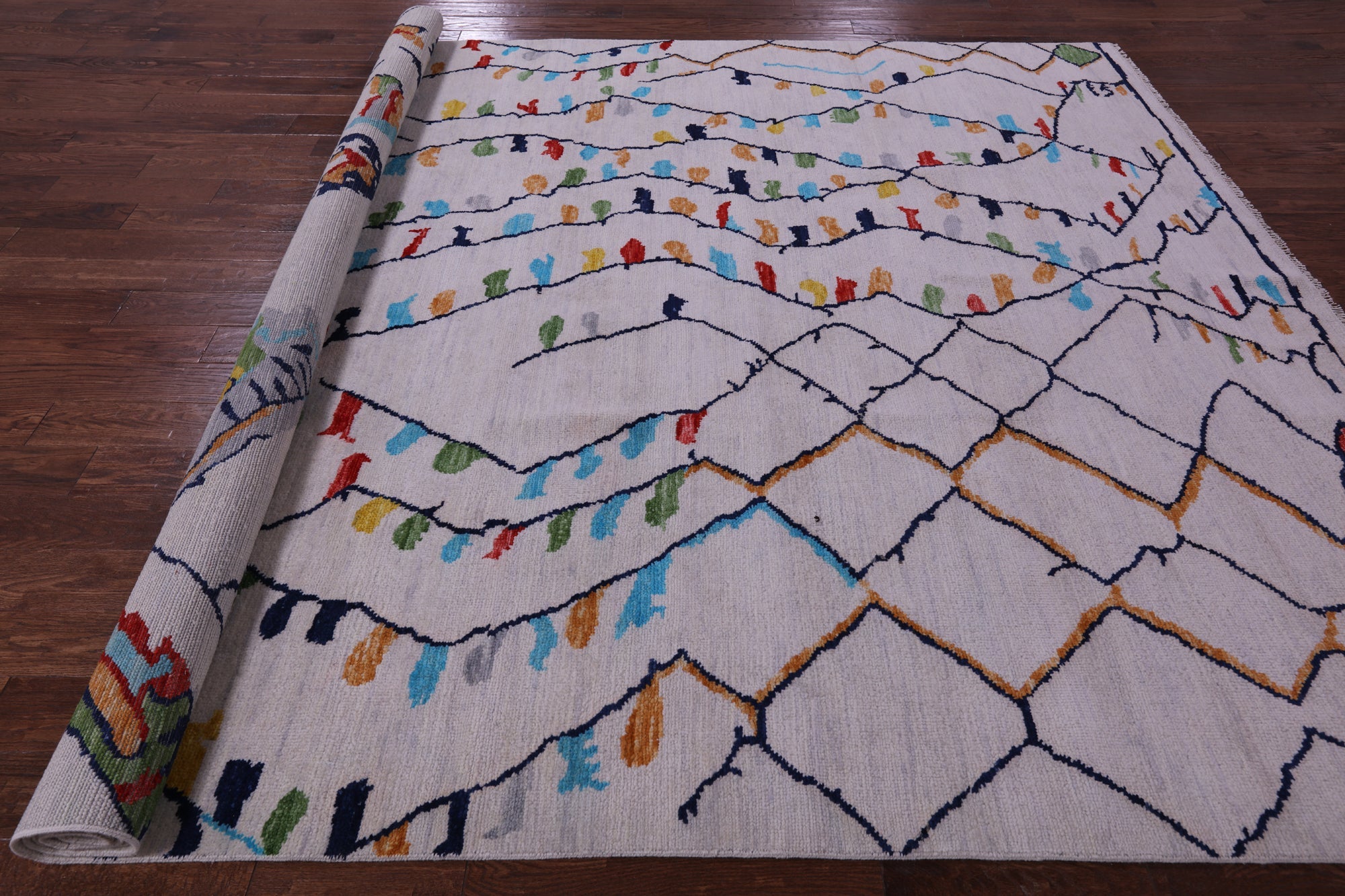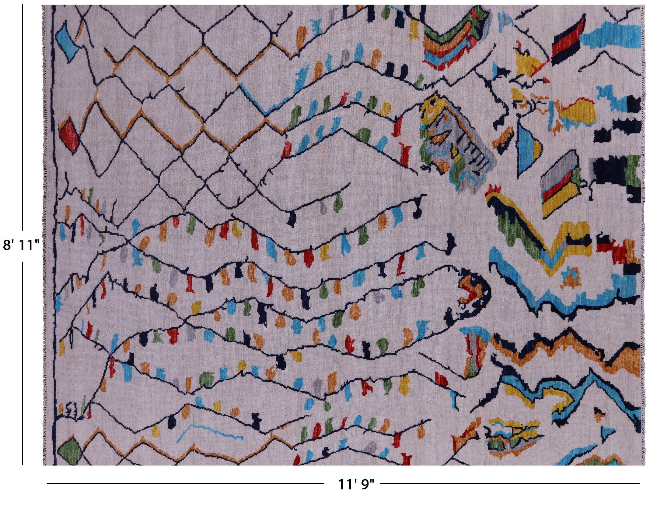 Ivory Moroccan Hand Knotted Wool Rug 8' 11" X 11' 9" - Q21437