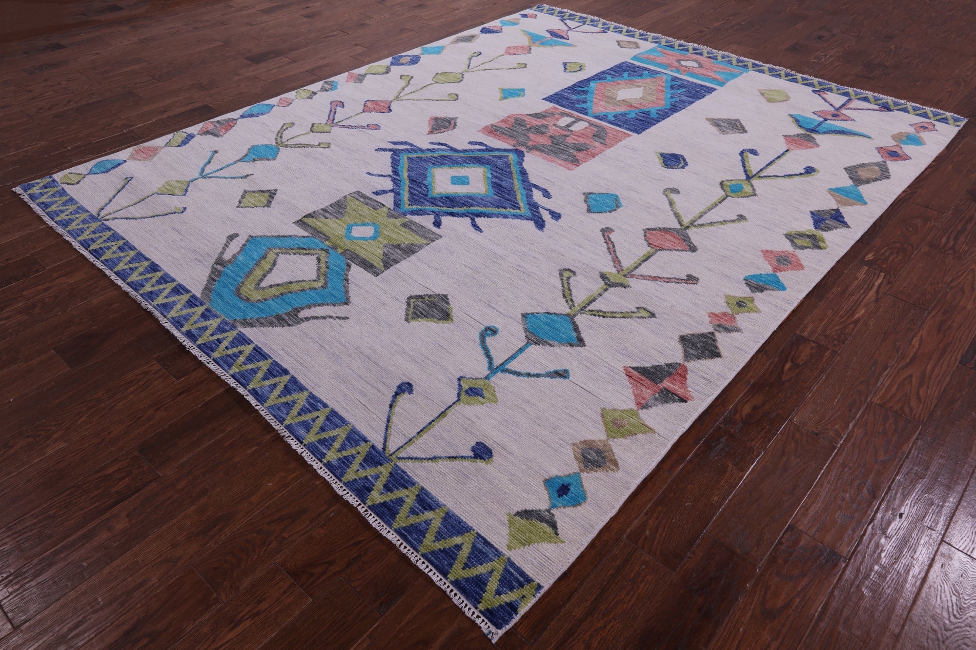 Ivory 8' 0" X 10' 2" Moroccan Hand Knotted Wool Rug - Q22382 is backordered and will ship as soon as it is back in stock.