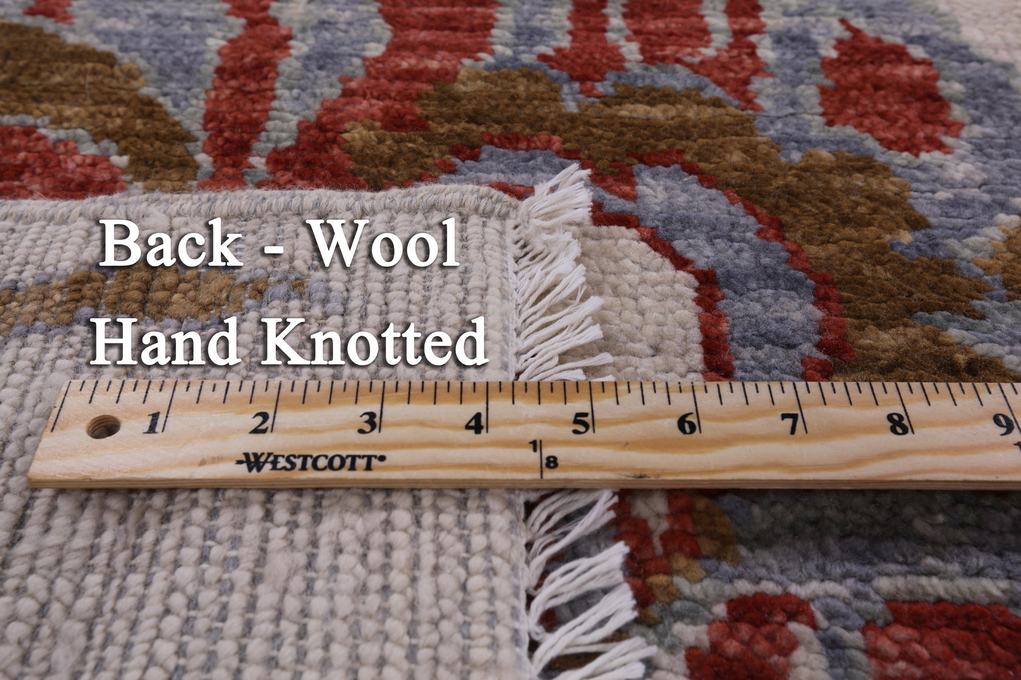 This is a genuine hand knotted cut pile rug, not tufted, hooked, or machine made. All we do is hand knotted.