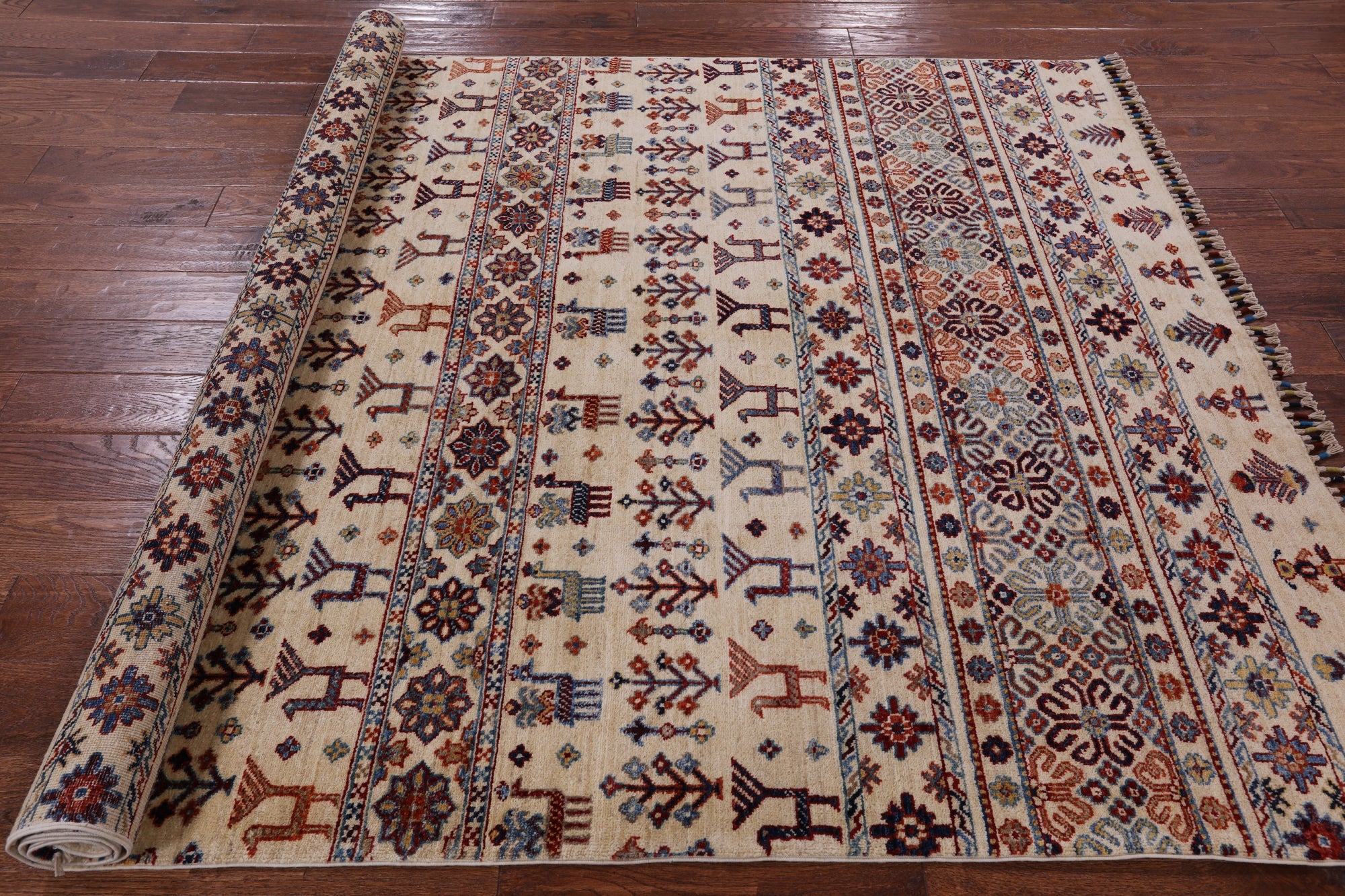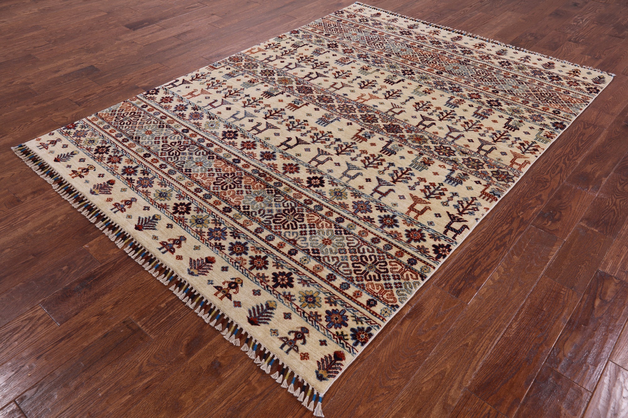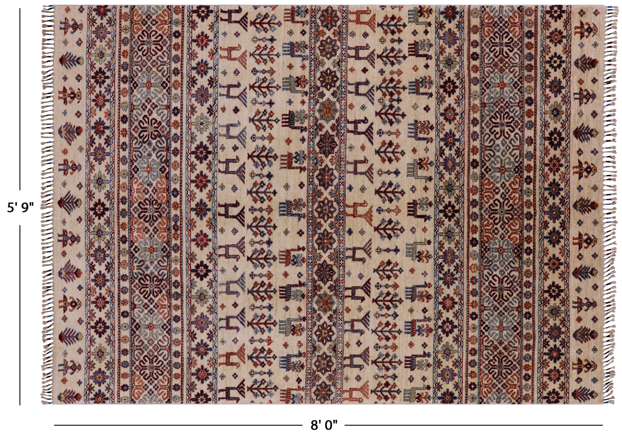 Ivory Persian Gabbeh Handmade Rug 5' 9" X 8' 0" - Q2932