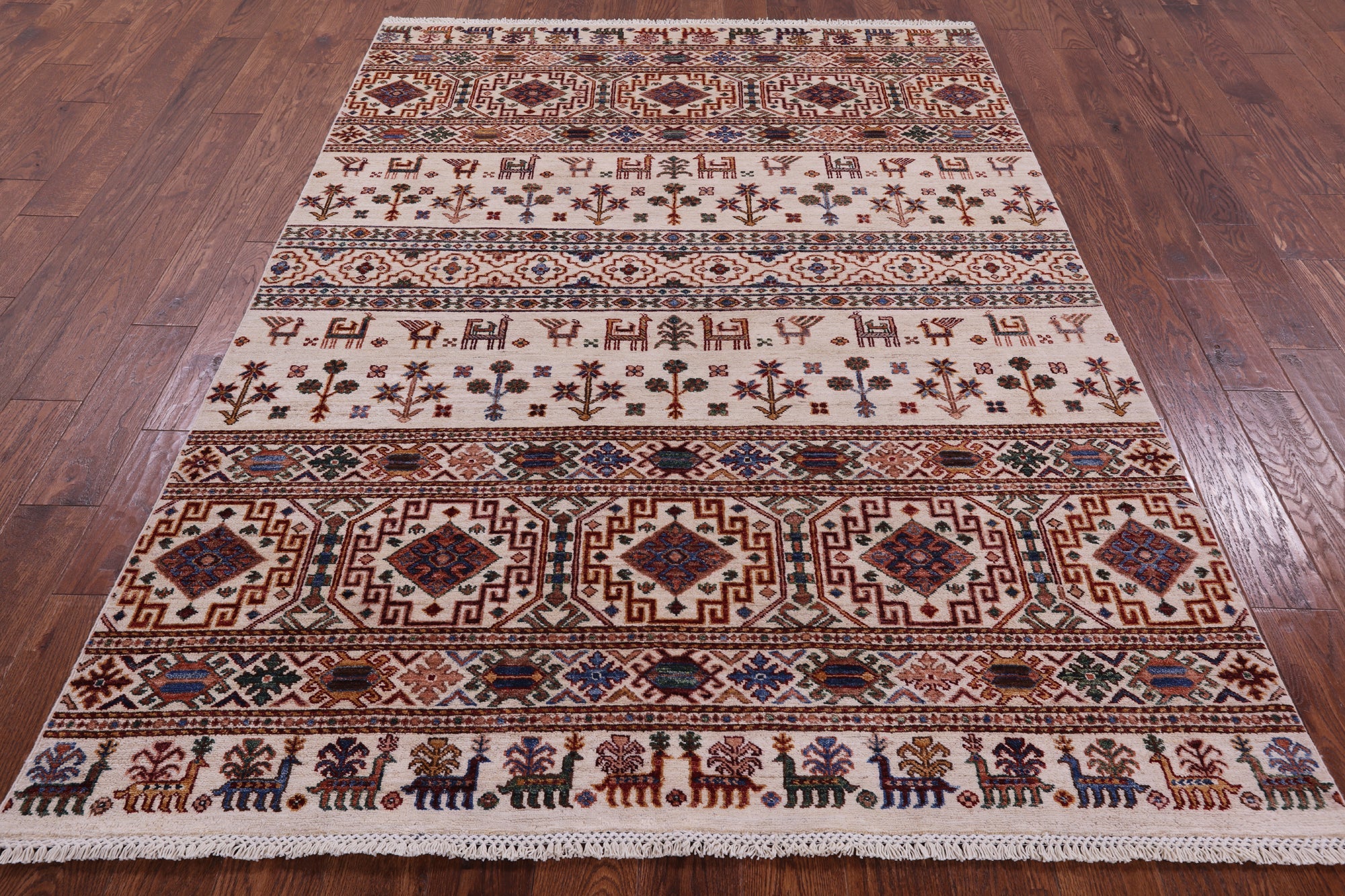 Ivory 5' 6" X 7' 9" Persian Gabbeh Tribal Handmade Wool Rug - Q11213 is backordered and will ship as soon as it is back in stock.