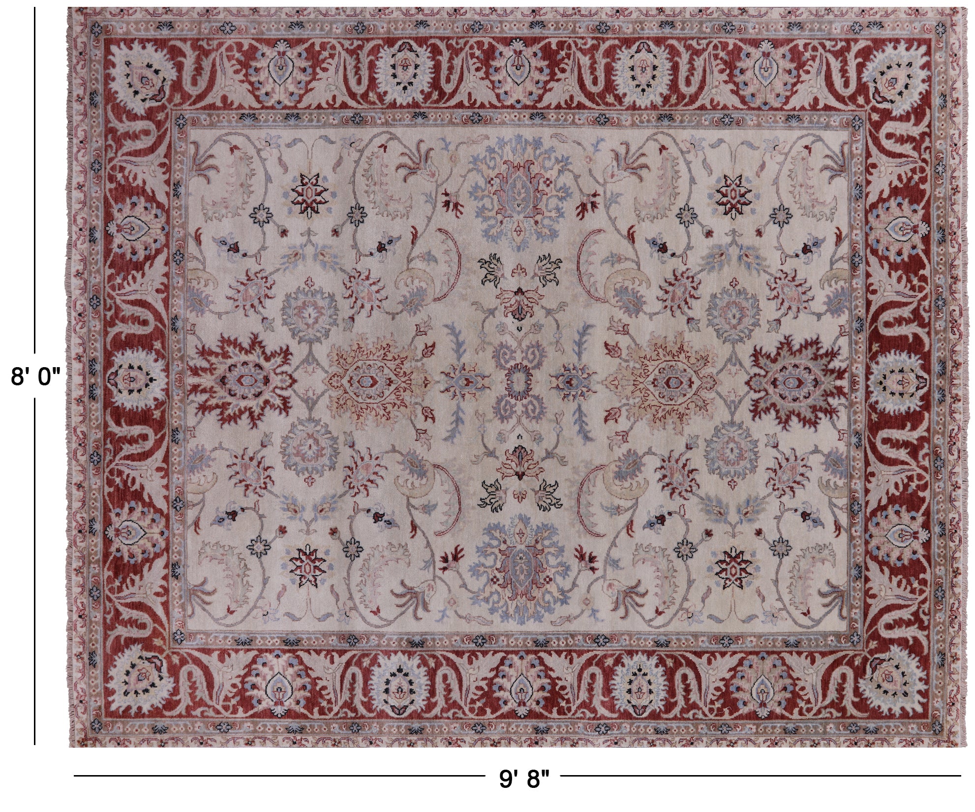 Ivory Persian Tabriz Hand Knotted Wool Rug 8' 0" X 9' 8" - Q16031