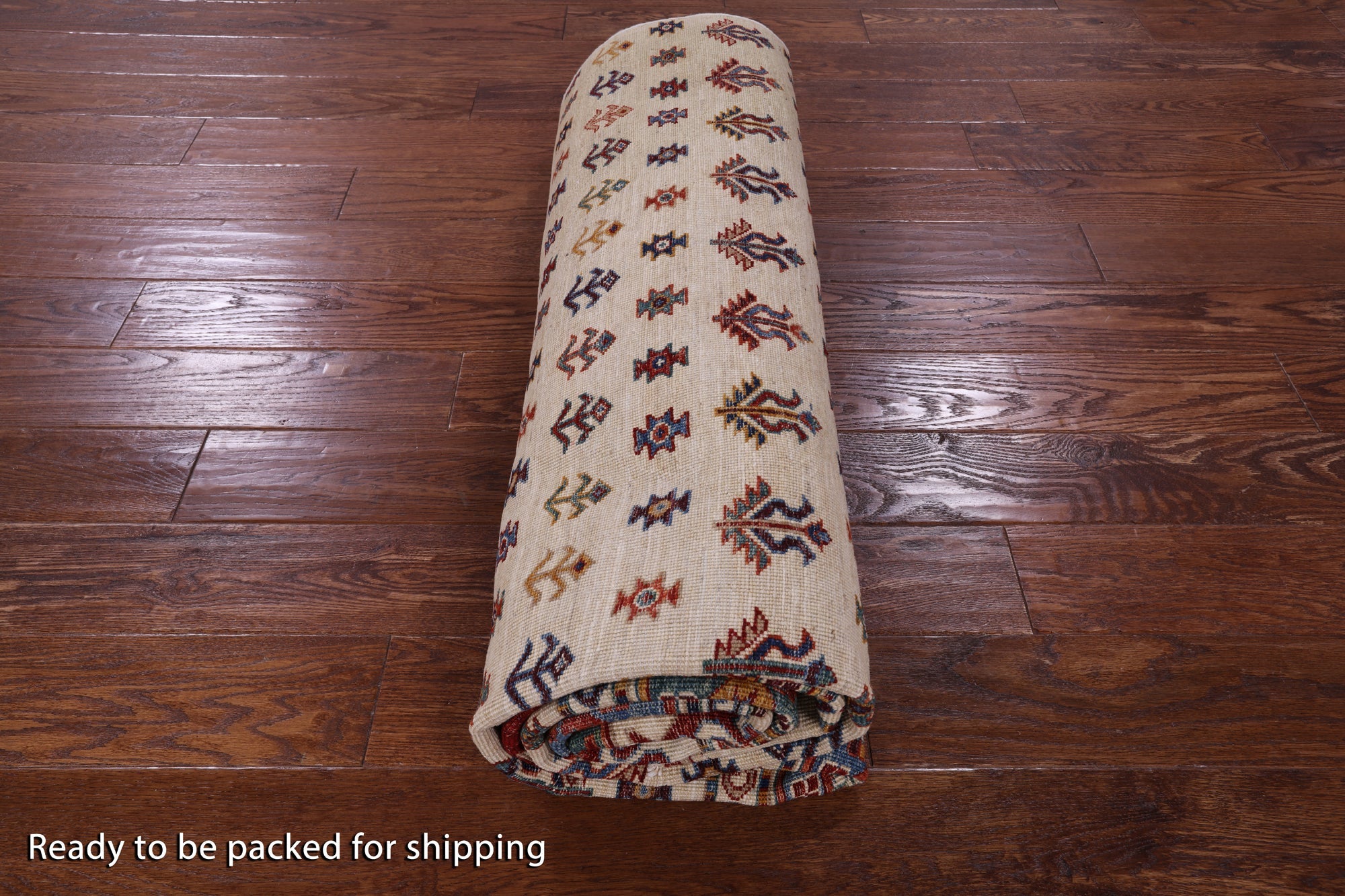 Ivory 6' 5" X 10' 0" Persian Tribal Gabbeh Hand Knotted Wool Rug - Q10737 is backordered and will ship as soon as it is back in stock.