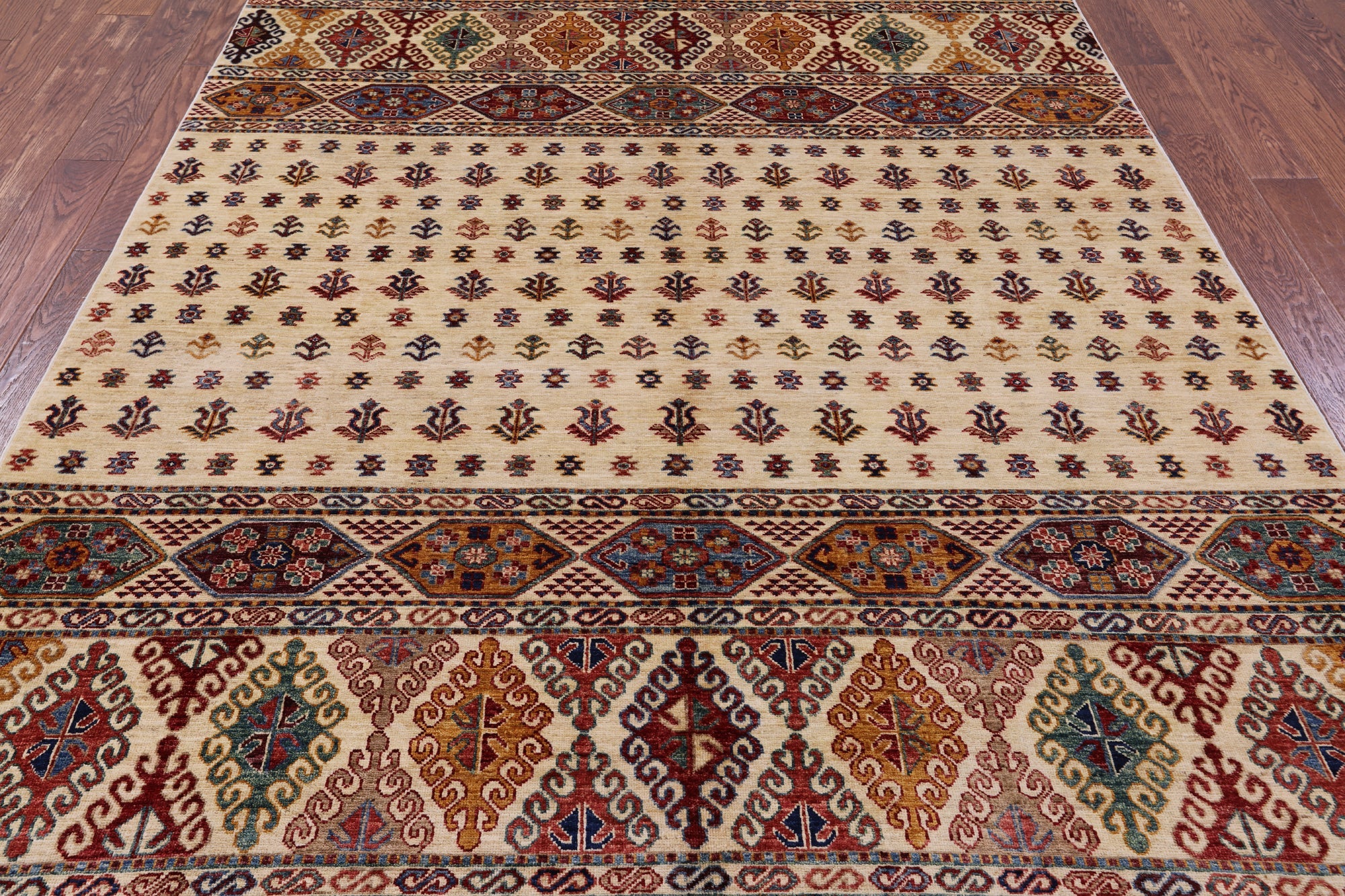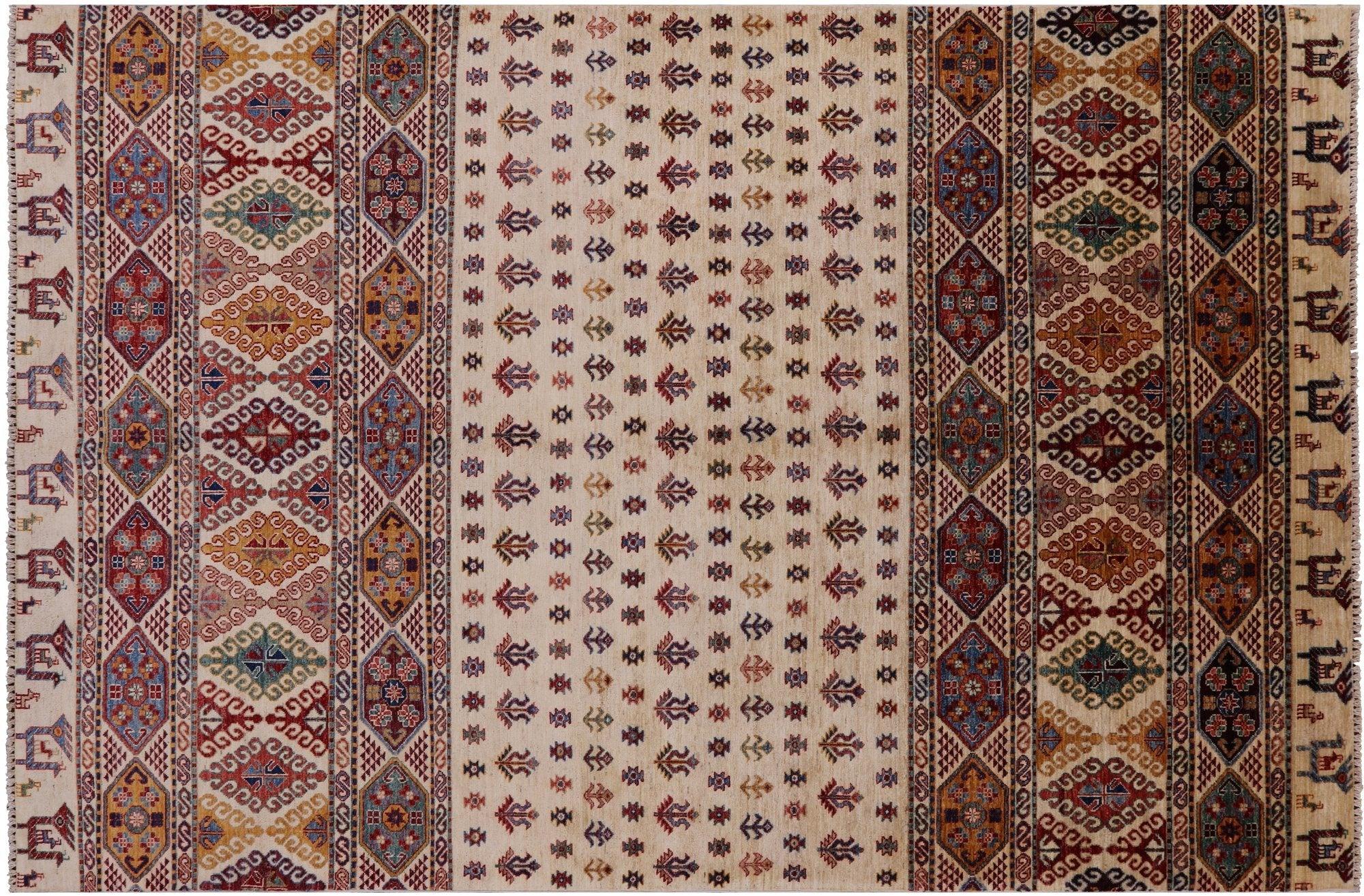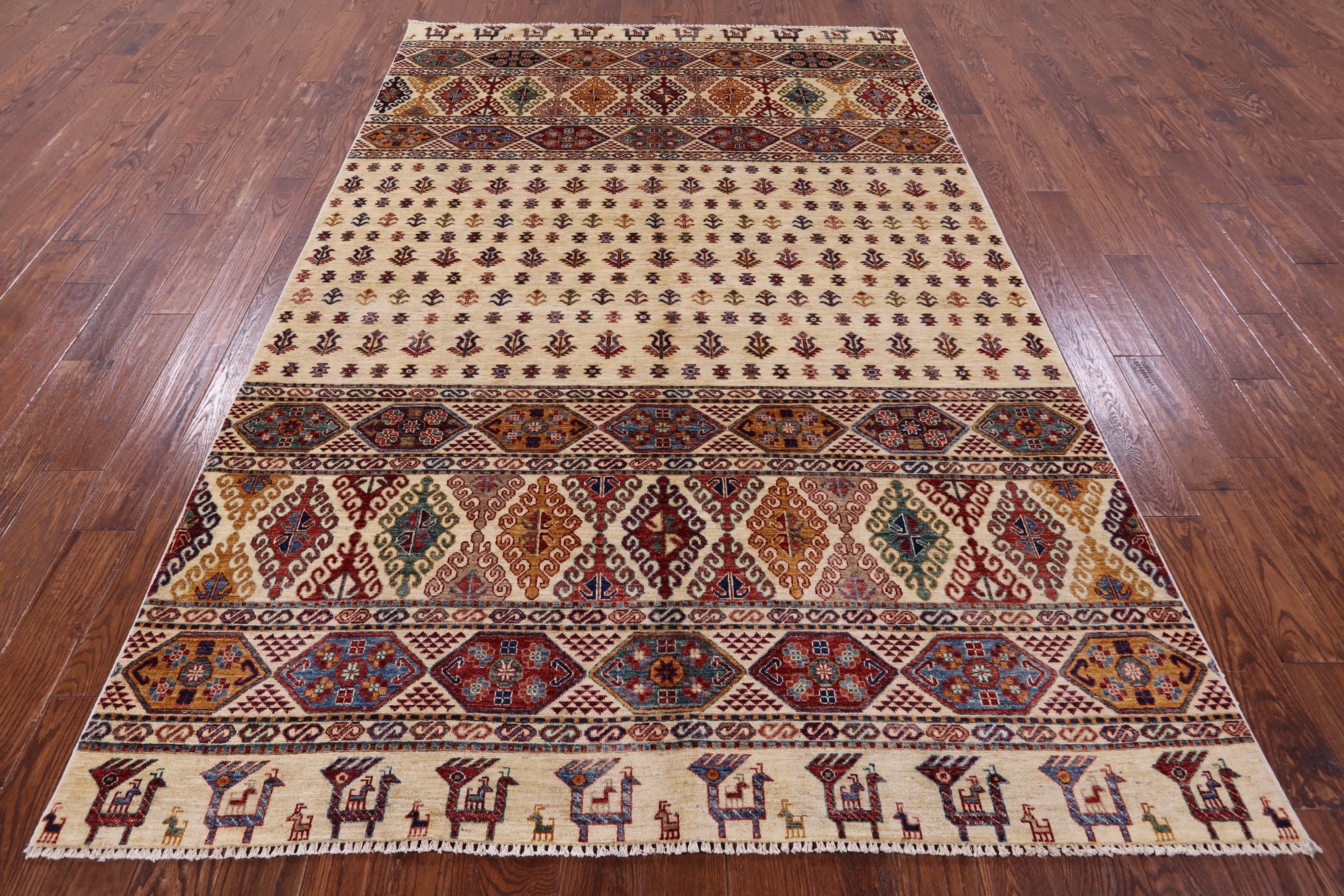 Ivory 6' 5" X 10' 0" Persian Tribal Gabbeh Hand Knotted Wool Rug - Q10737