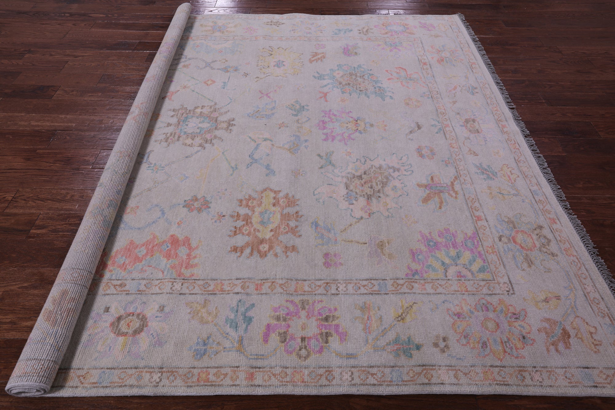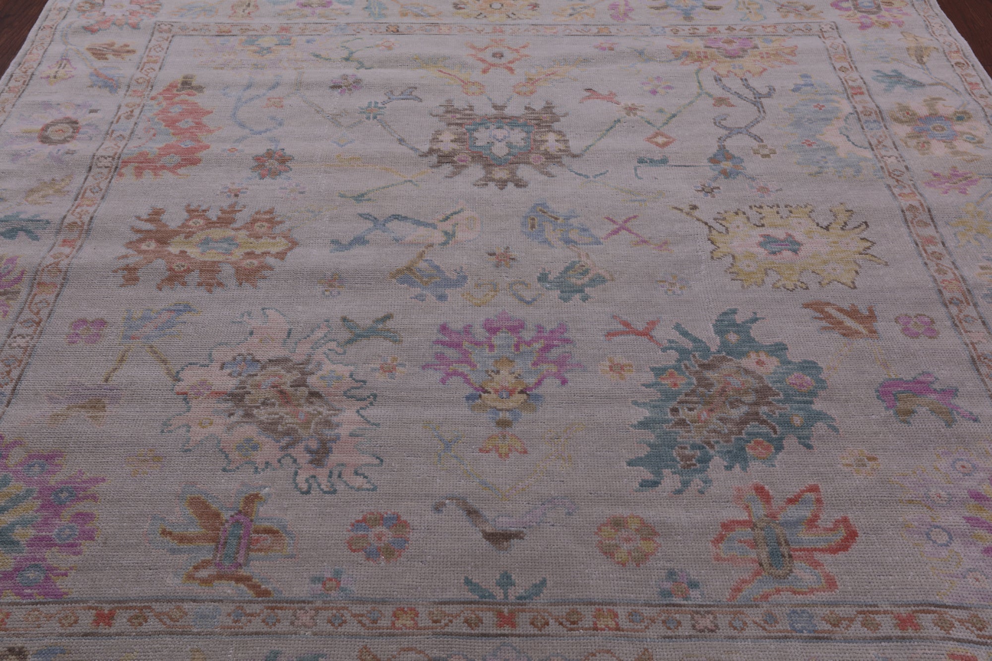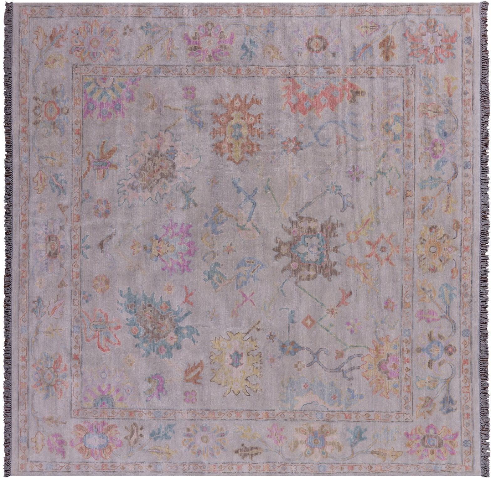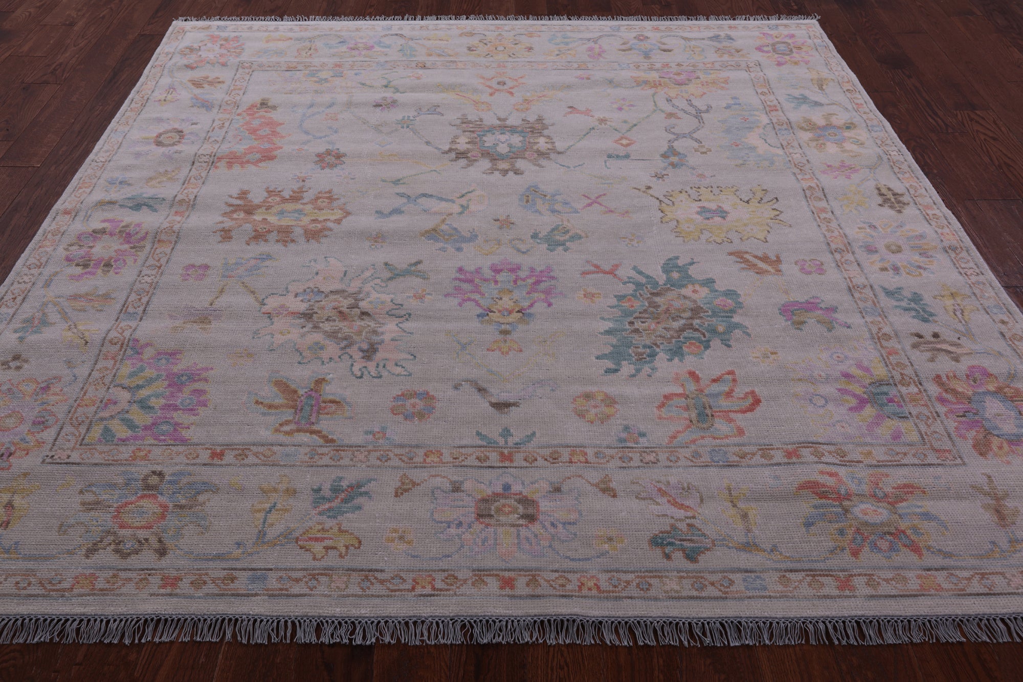 Ivory 8' Square Turkish Angora Oushak Hand Knotted Wool Rug - Q21337