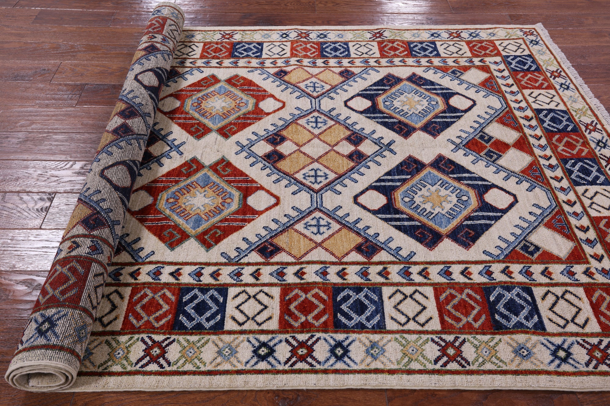 Ivory 4' 10" X 7' 6" Super Kazak Handmade Rug - Q6744 is backordered and will ship as soon as it is back in stock.