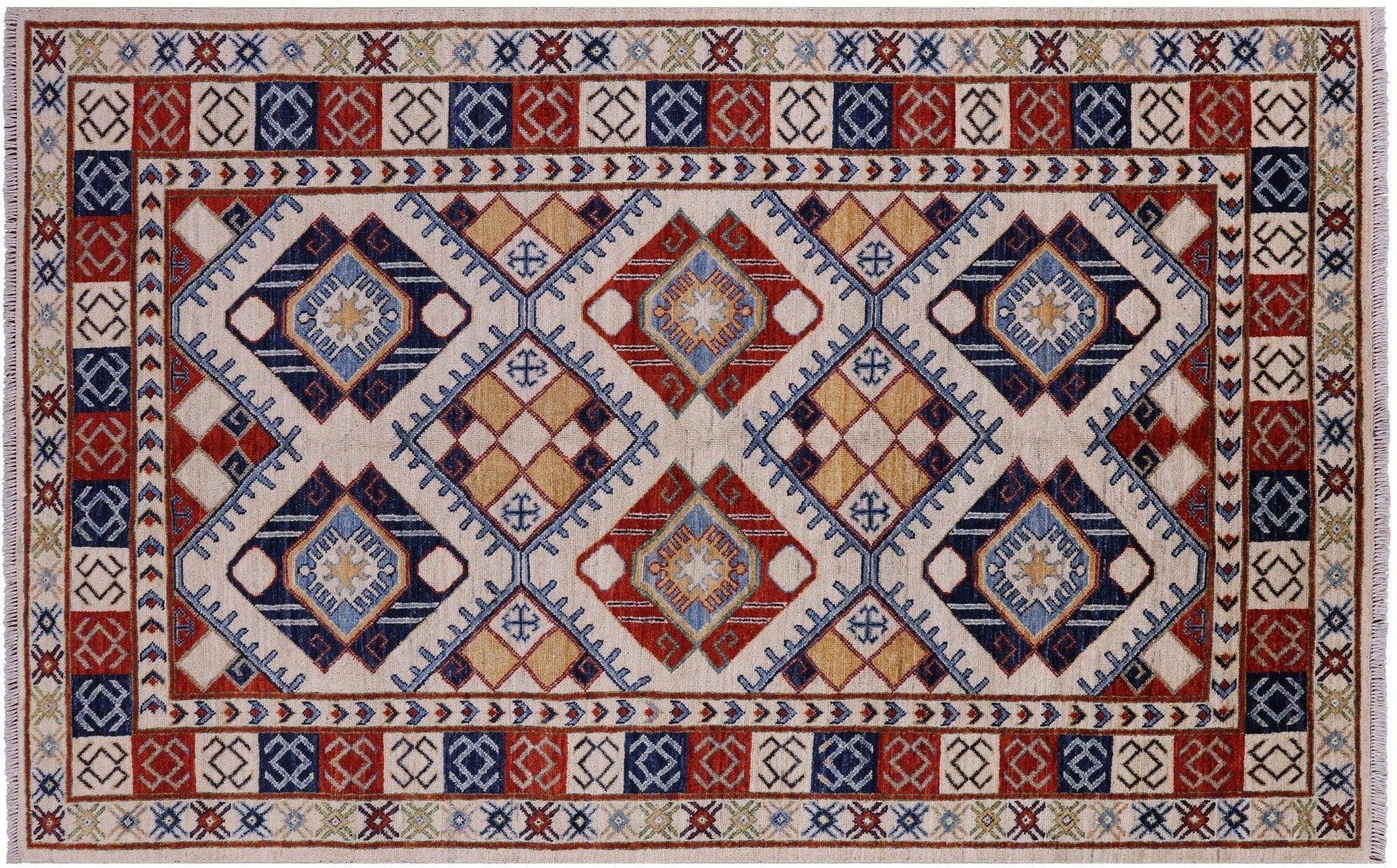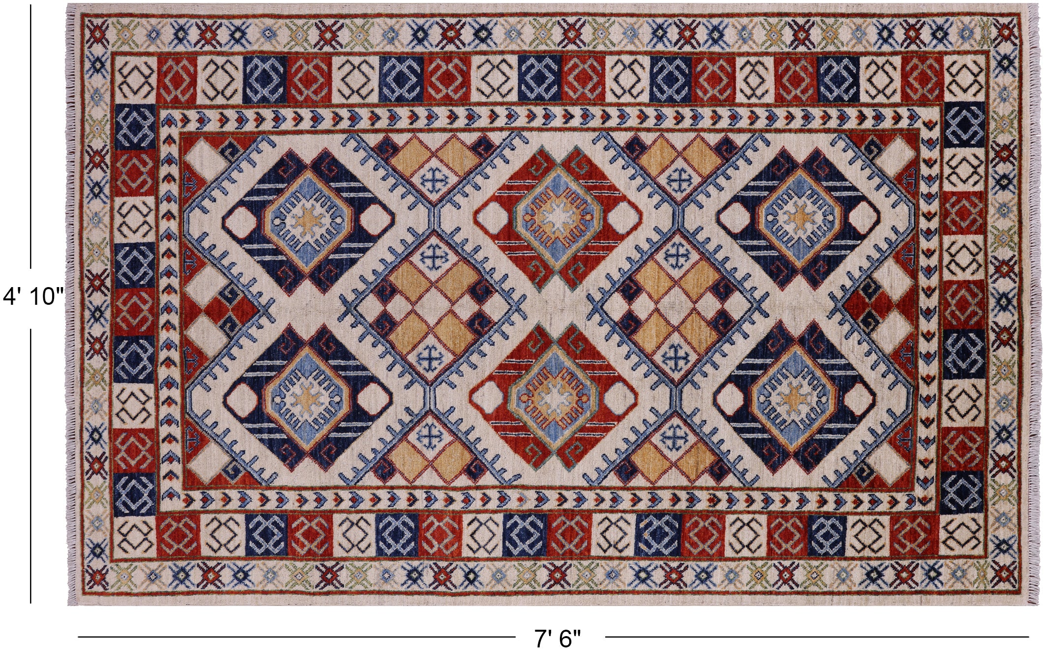 Ivory 4' 10" X 7' 6" Super Kazak Handmade Rug - Q6744