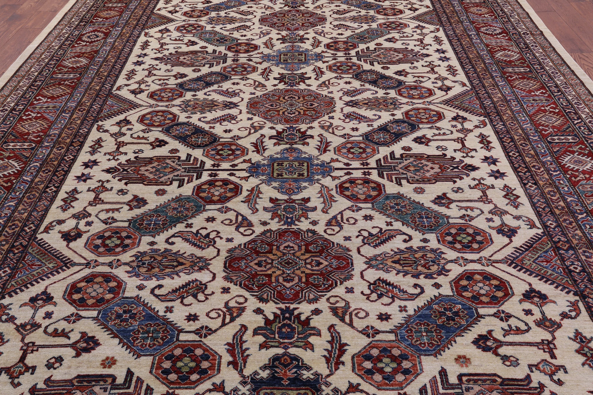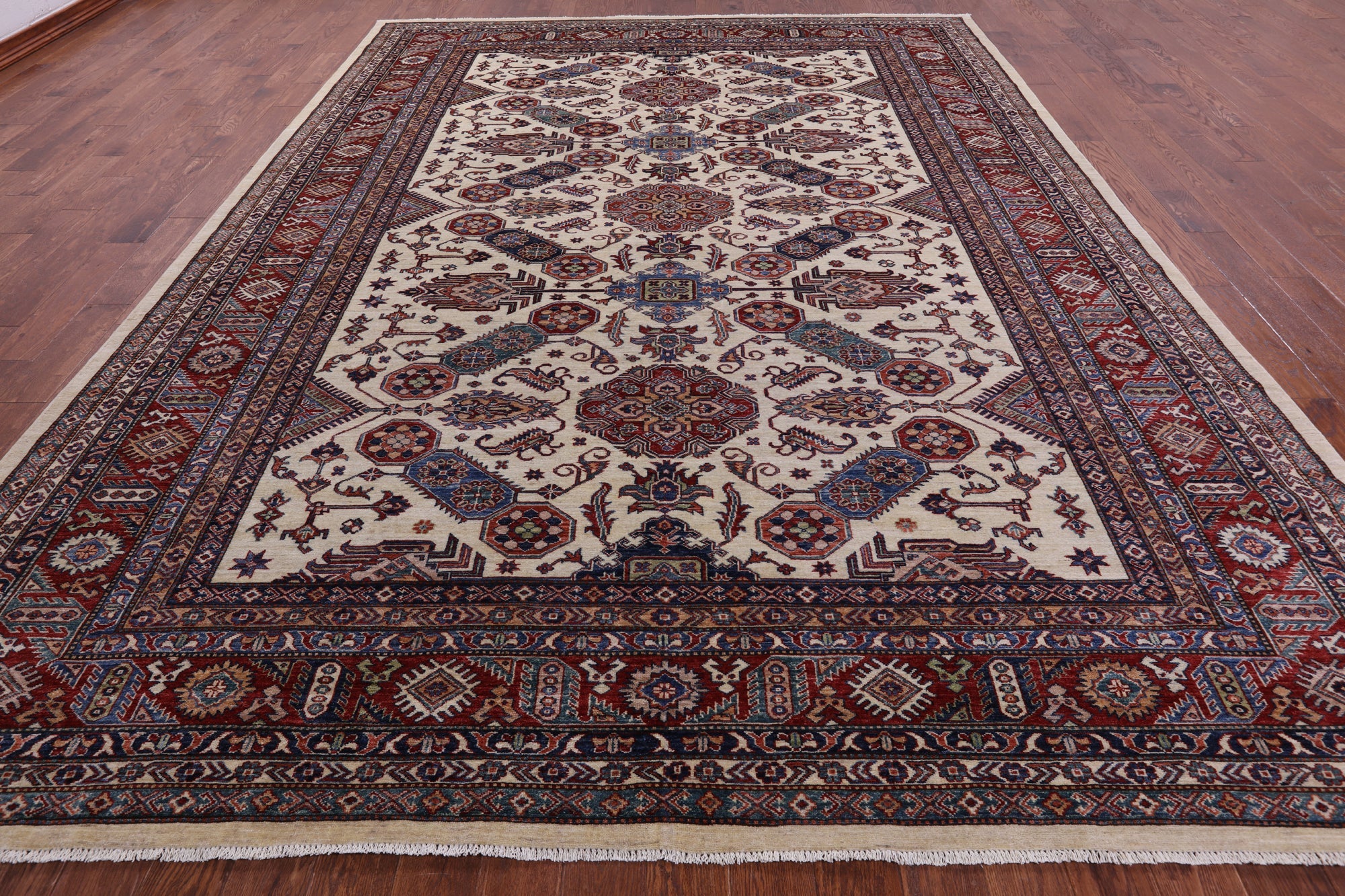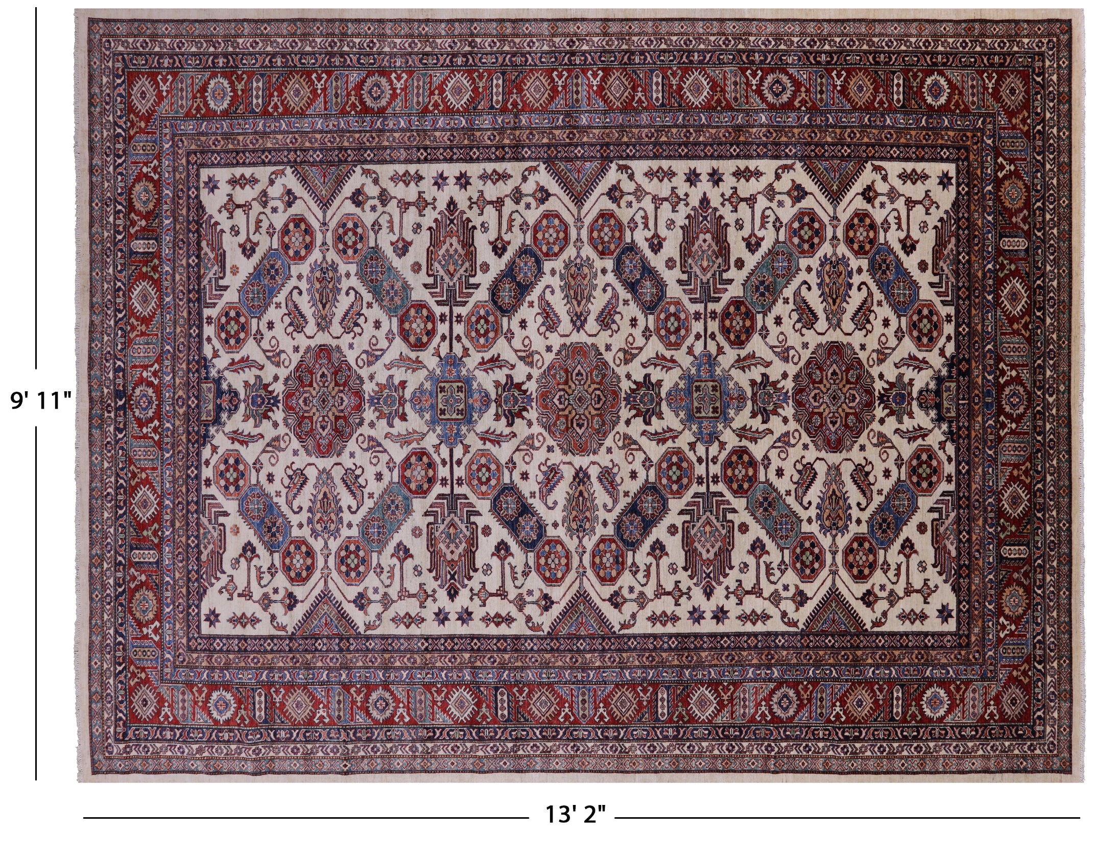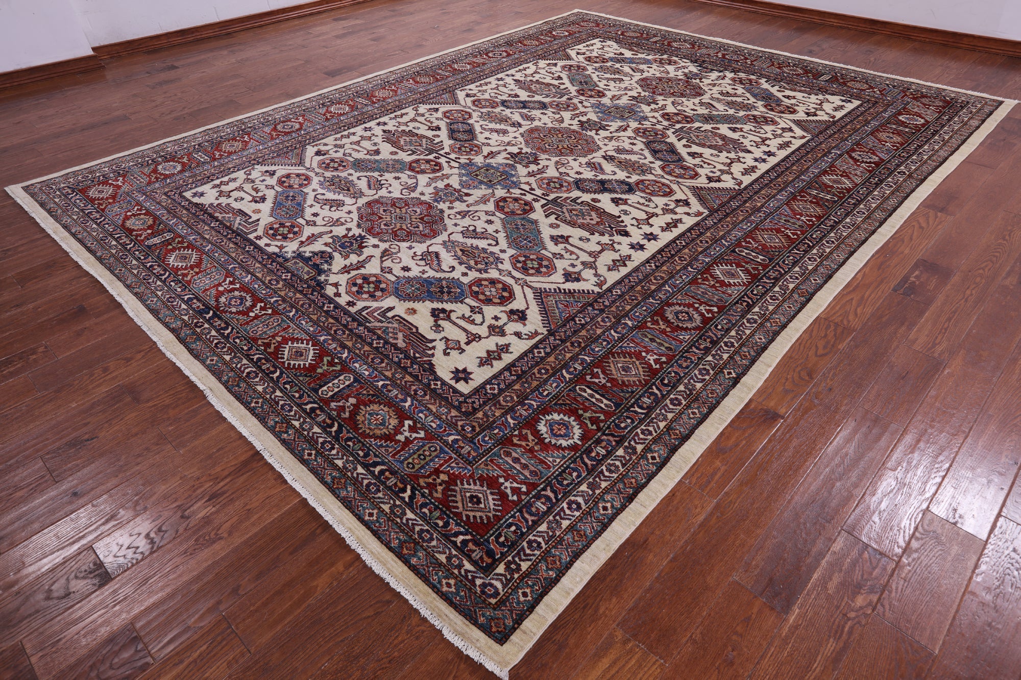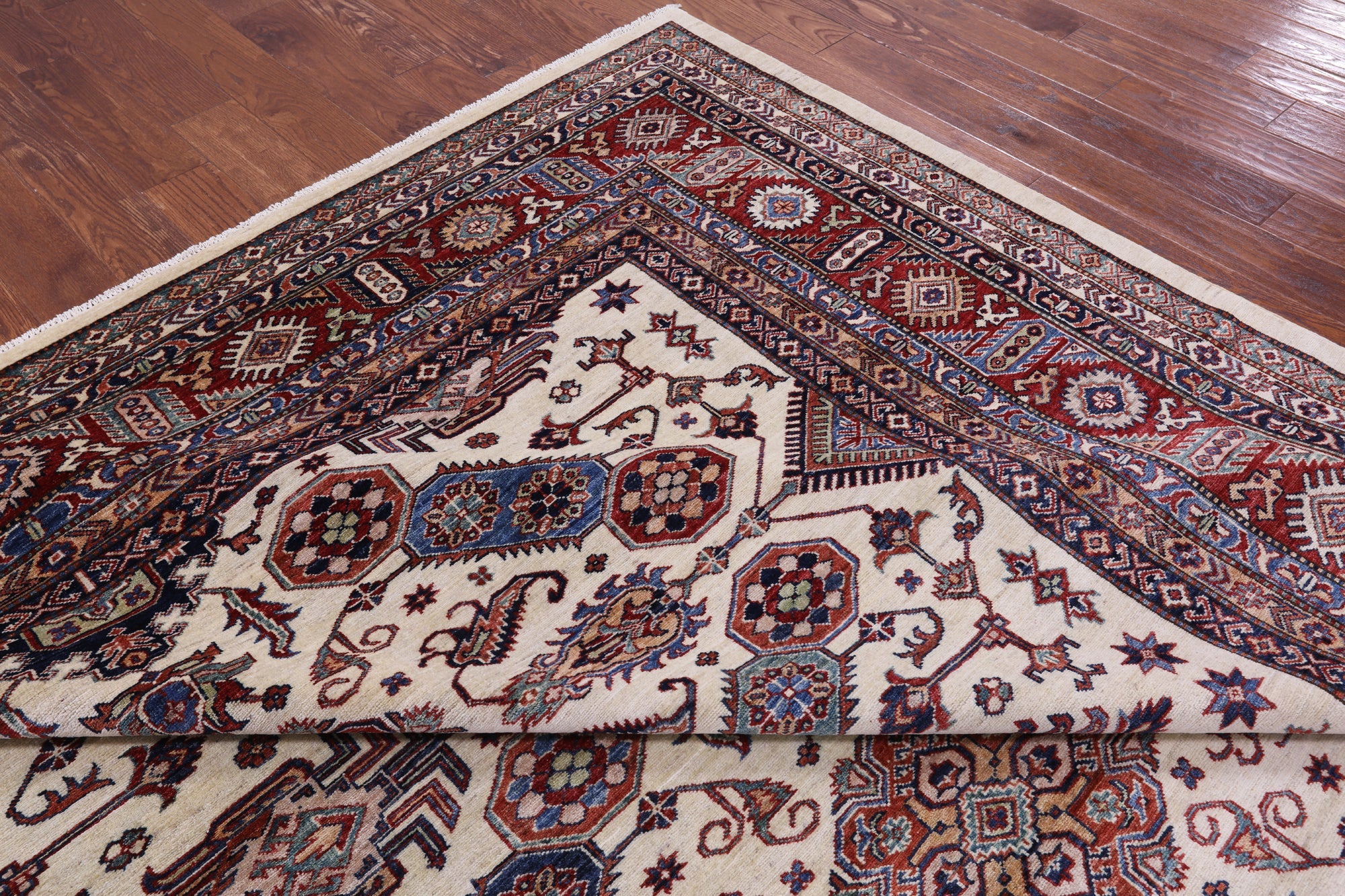 Ivory 9' 11" X 13' 2" Super Kazak Handmade Wool Rug - Q14523 is backordered and will ship as soon as it is back in stock.