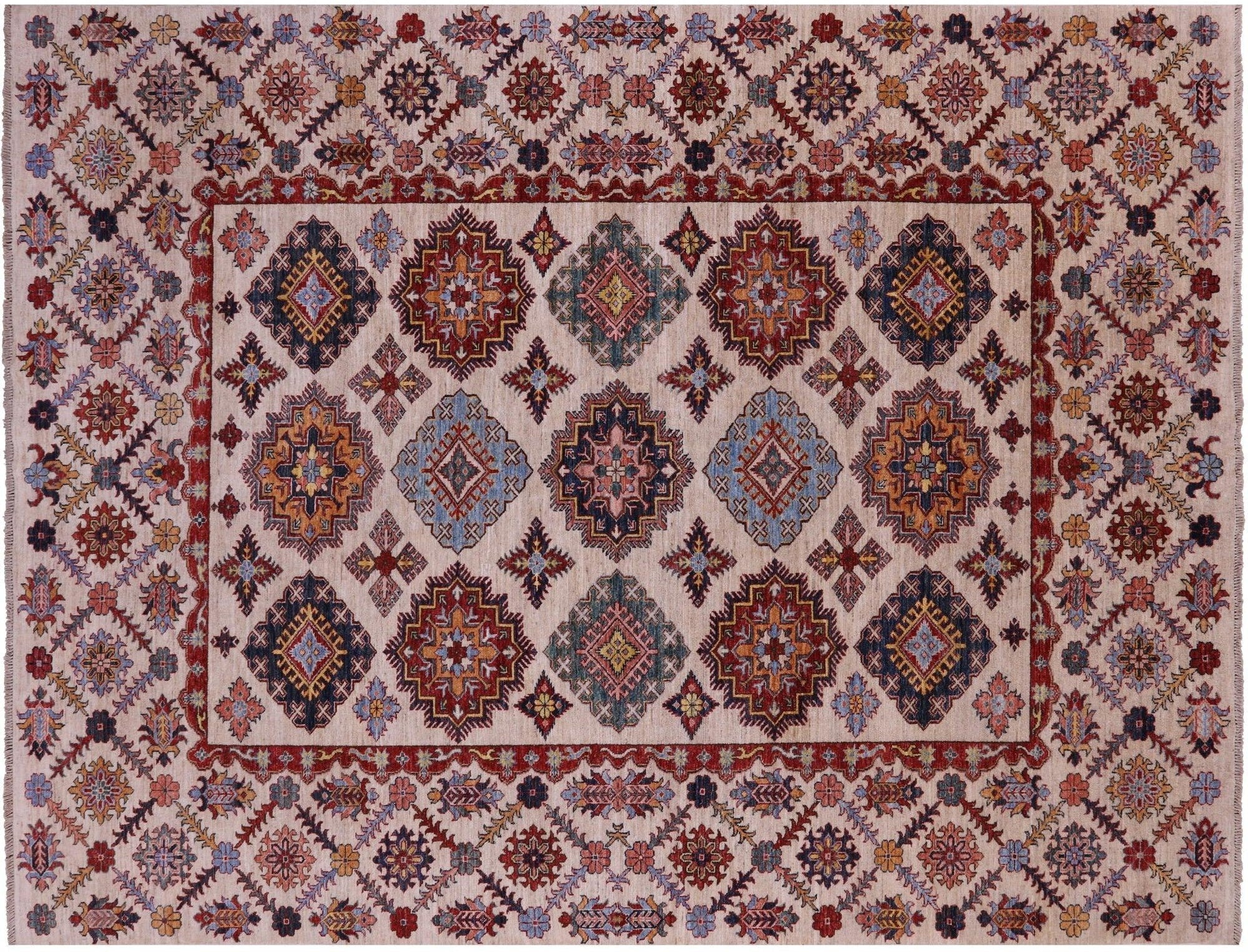 Ivory 7' 11" X 10' 4" Super Kazak Handmade Wool Rug - Q18263