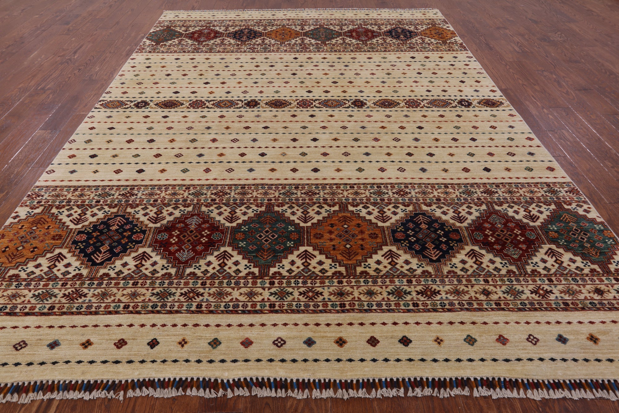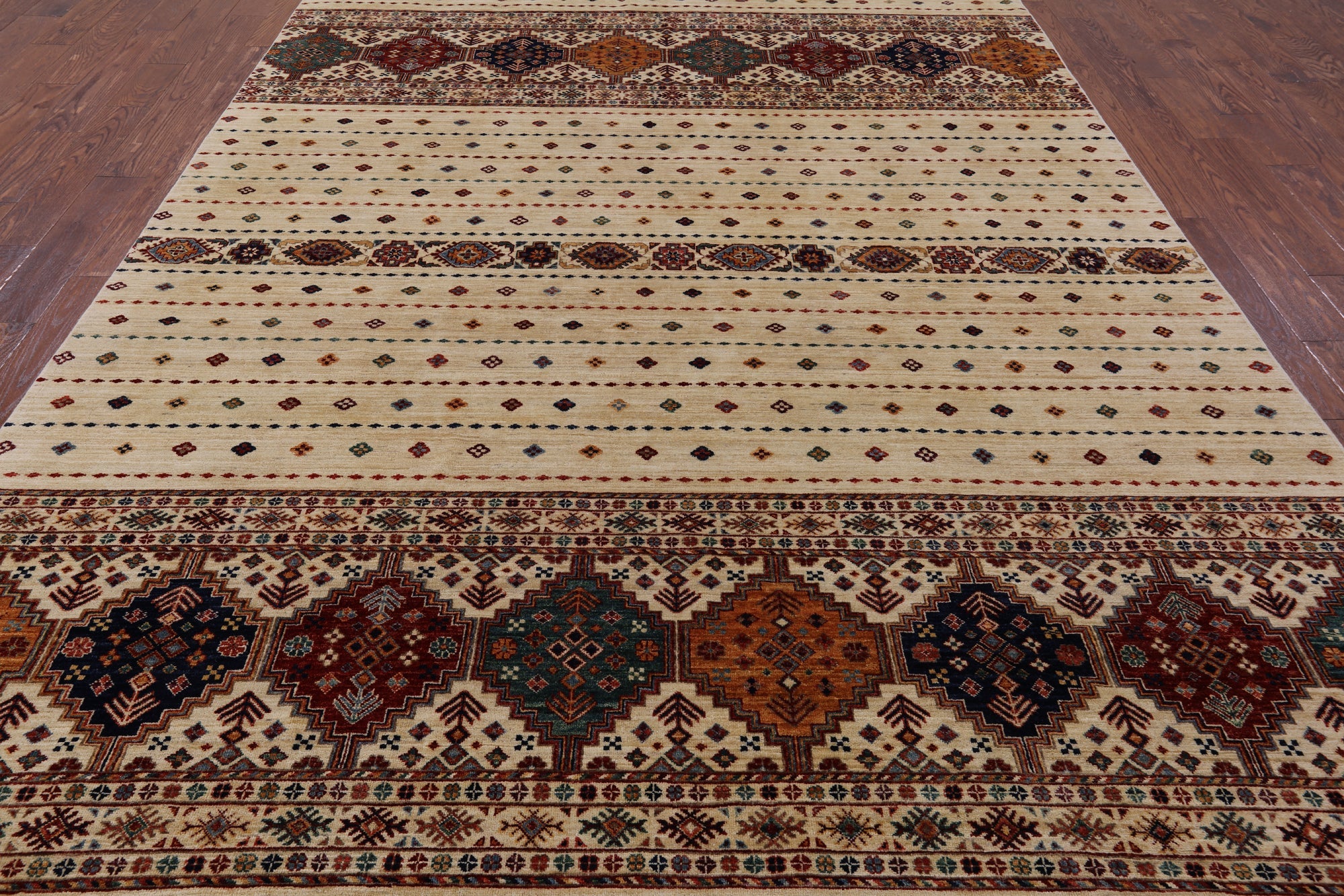 Ivory Super Kazak Khorjin Handmade Wool Rug 8' 2" X 11' 3" - Q2886 is backordered and will ship as soon as it is back in stock.
