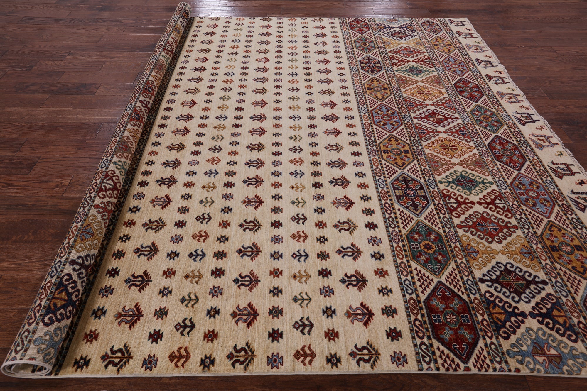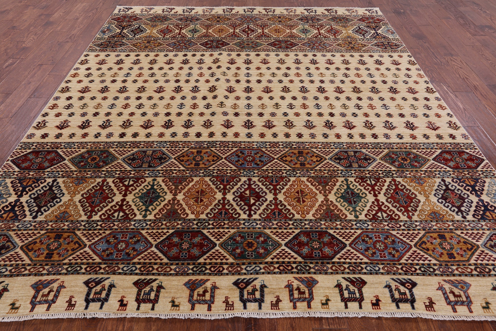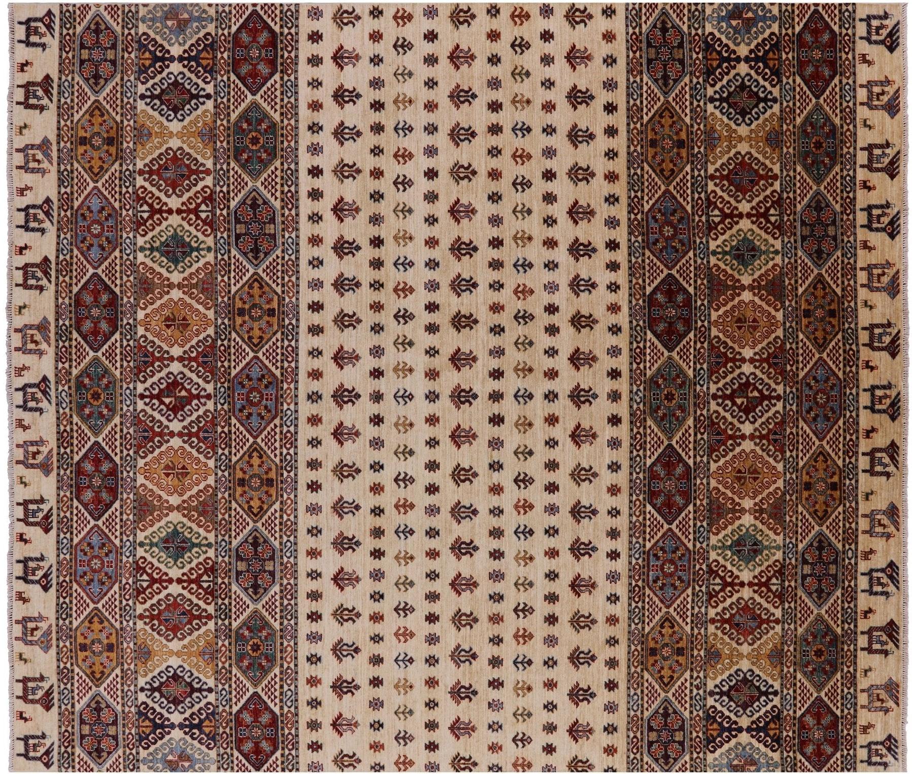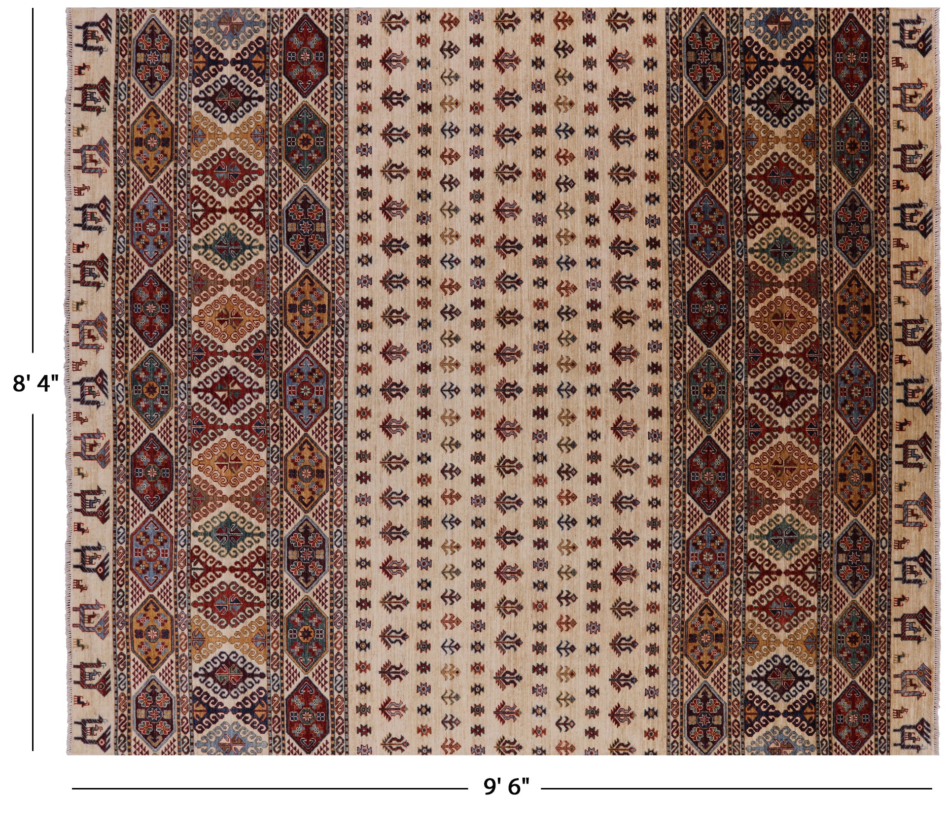 Ivory 8' 4" X 9' 6" Tribal Persian Gabbeh Hand-Knotted Wool Rug - Q3240 is backordered and will ship as soon as it is back in stock.
