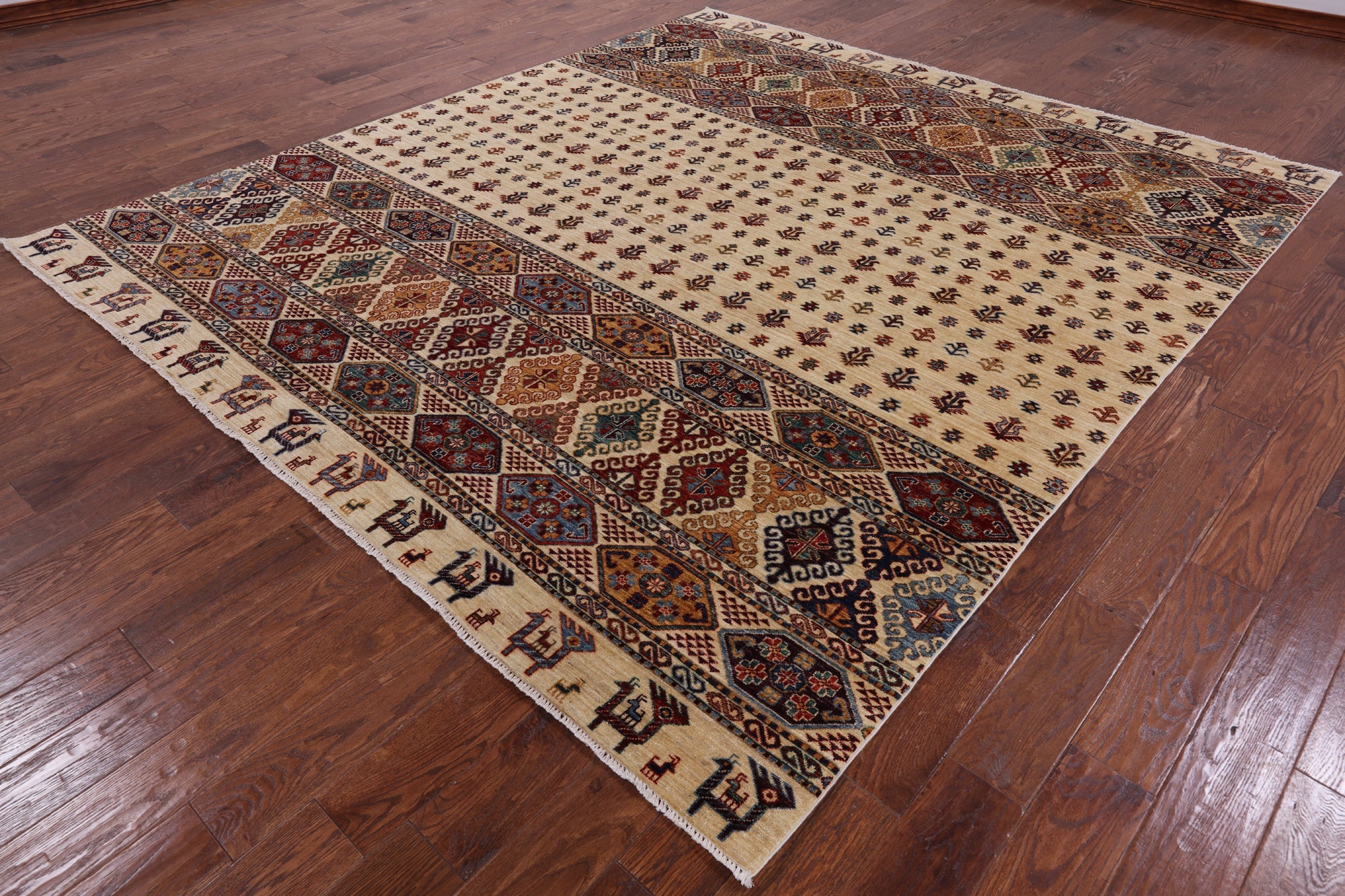 Ivory 8' 4" X 9' 6" Tribal Persian Gabbeh Hand-Knotted Wool Rug - Q3240