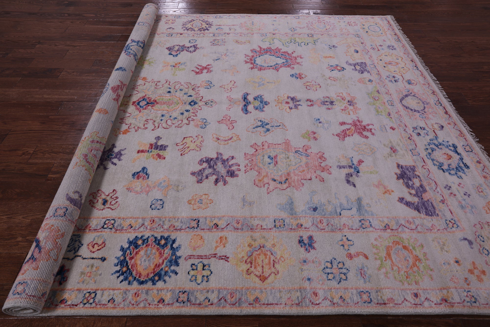 Ivory Turkish Angora Oushak Hand Knotted Rug 8' 4" X 9' 11" - Q14831