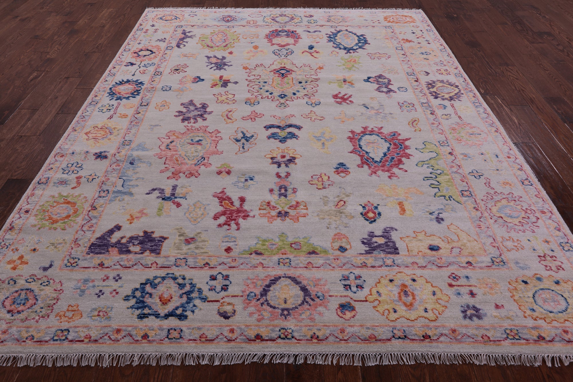 Originating in the small town of Oushak in west-central Anatolia, these rugs were highly favored by the Ottoman Empire. Oushak rugs are one of the most significant styles of Turkish rugs and are known for their beautiful antique look. They are usually designed with motifs consisting of flowers, tendrils, or even geometric shape designs. Larger medallions complement the more intricate designs, creating perfect harmony. Colors are stunningly balanced with warm and cool tones, completing the rug.