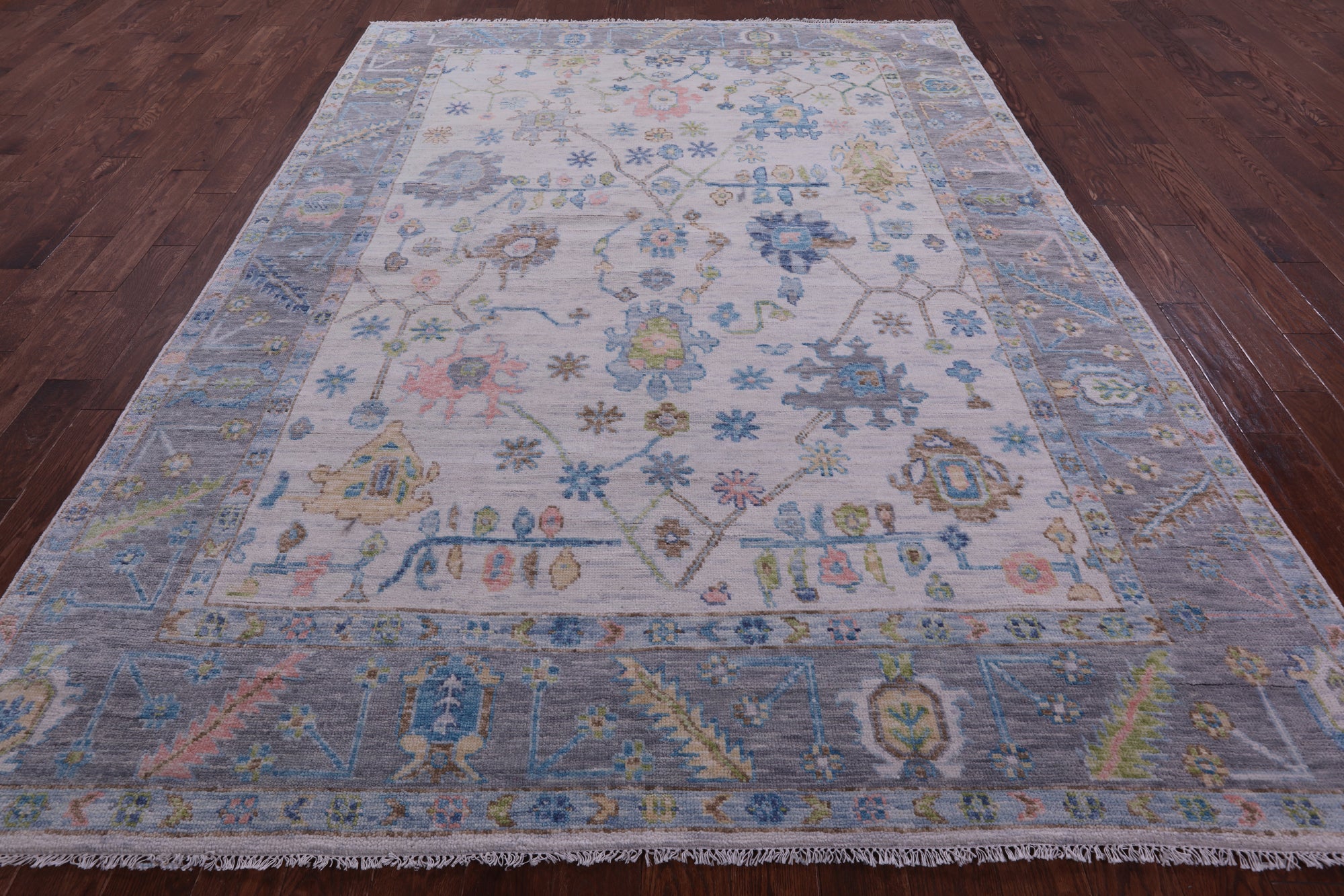 Ivory 7' 10" X 10' 8" Turkish Angora Oushak Hand-Knotted Wool Rug - Q19095