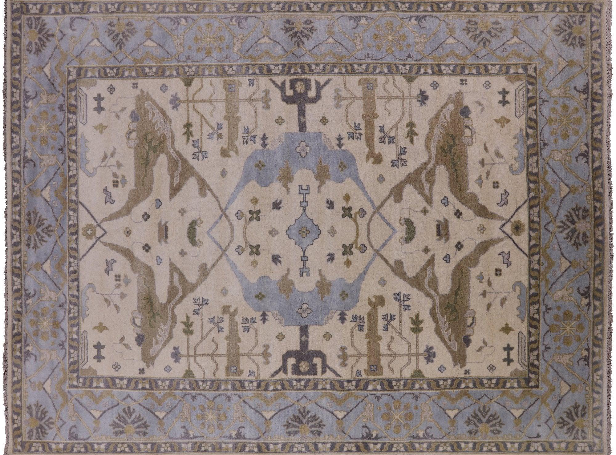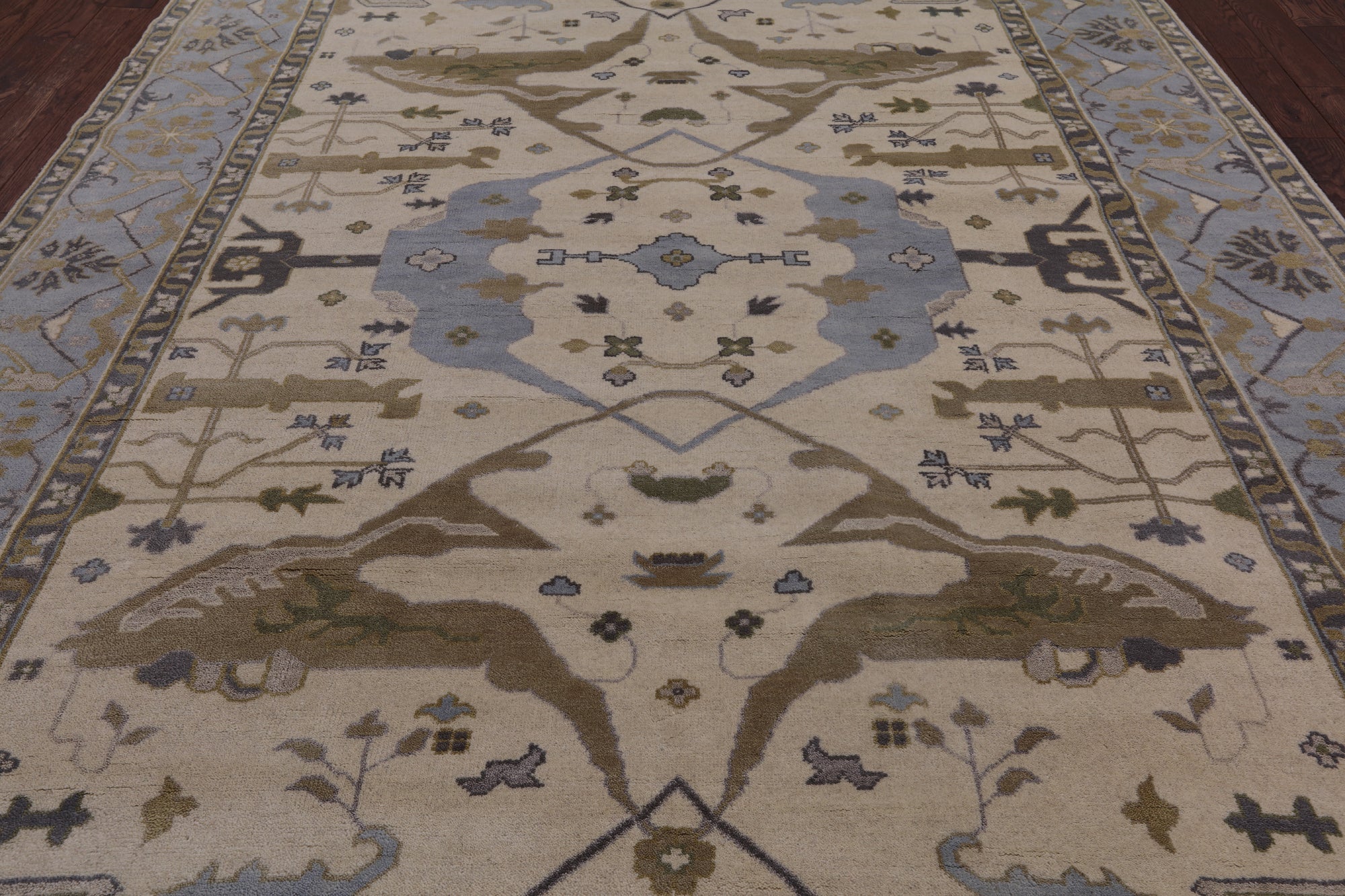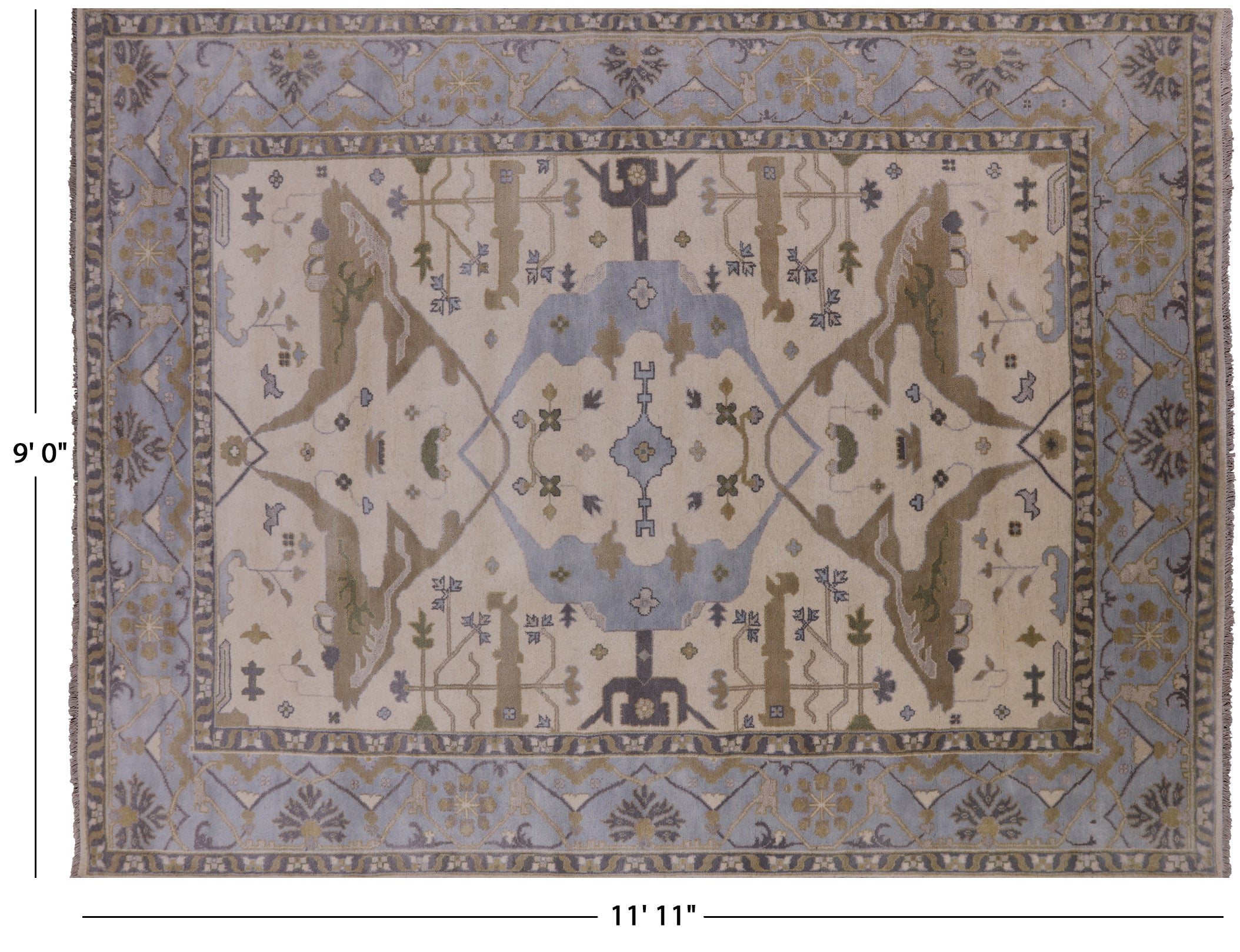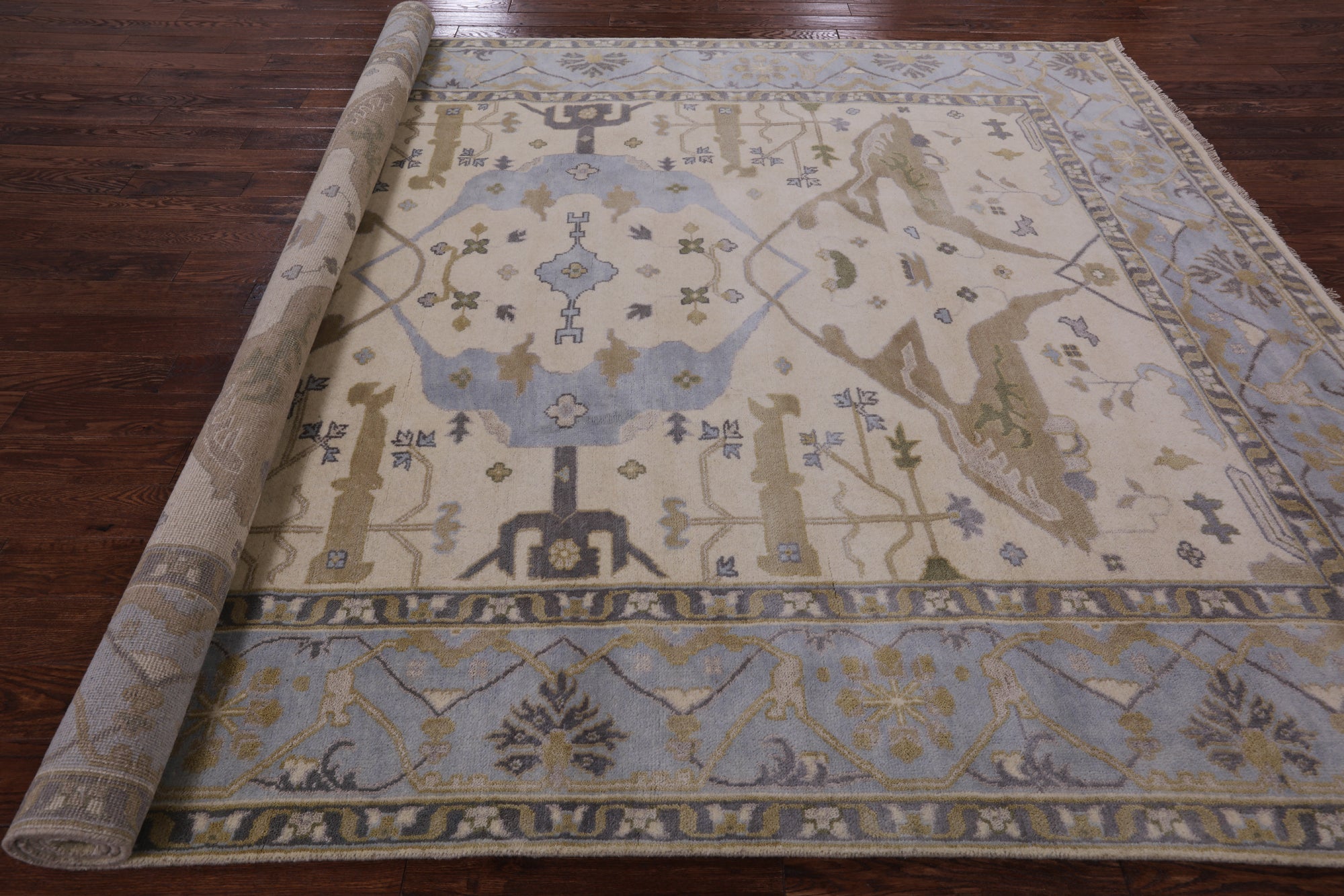 Ivory Turkish Oushak Hand Knotted Rug 9' 0" X 11' 11" - Q1434
