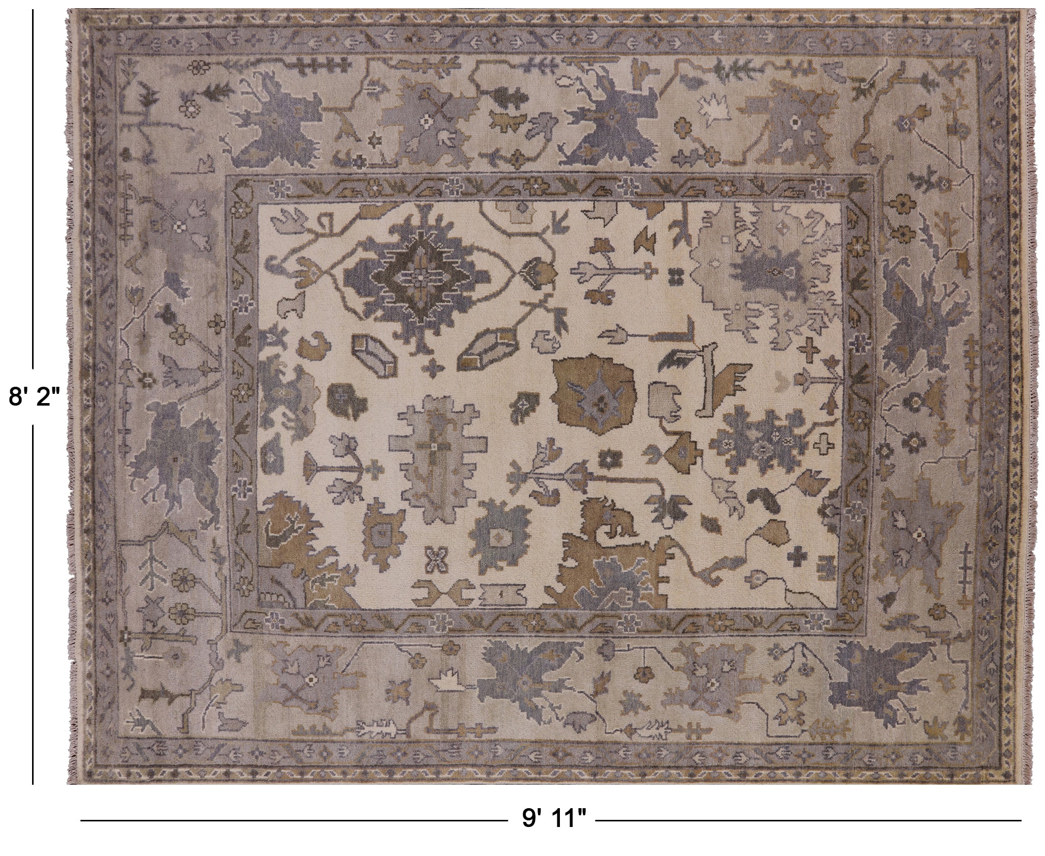 Ivory 8' 2" X 9' 11" Turkish Oushak Hand Knotted Wool Rug - Q1502