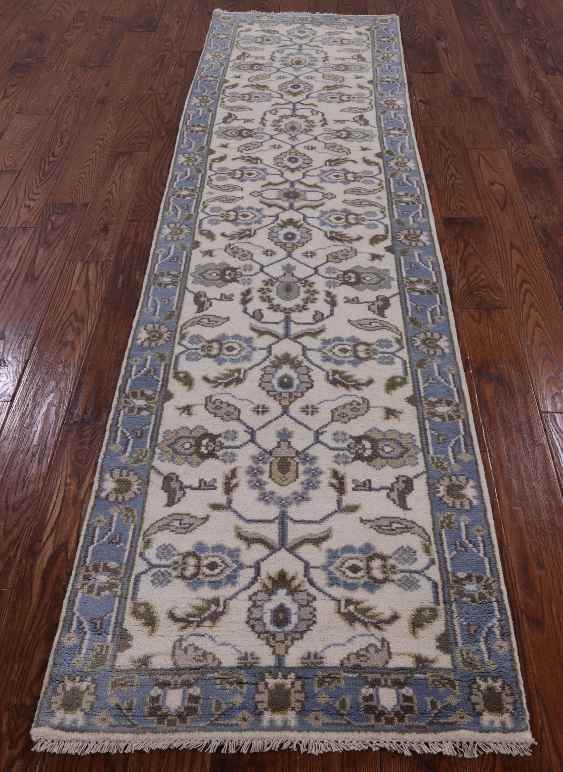 Ivory Turkish Oushak Hand Knotted Wool Runner Rug 2' 7" X 9' 10" - Q1229 is backordered and will ship as soon as it is back in stock.