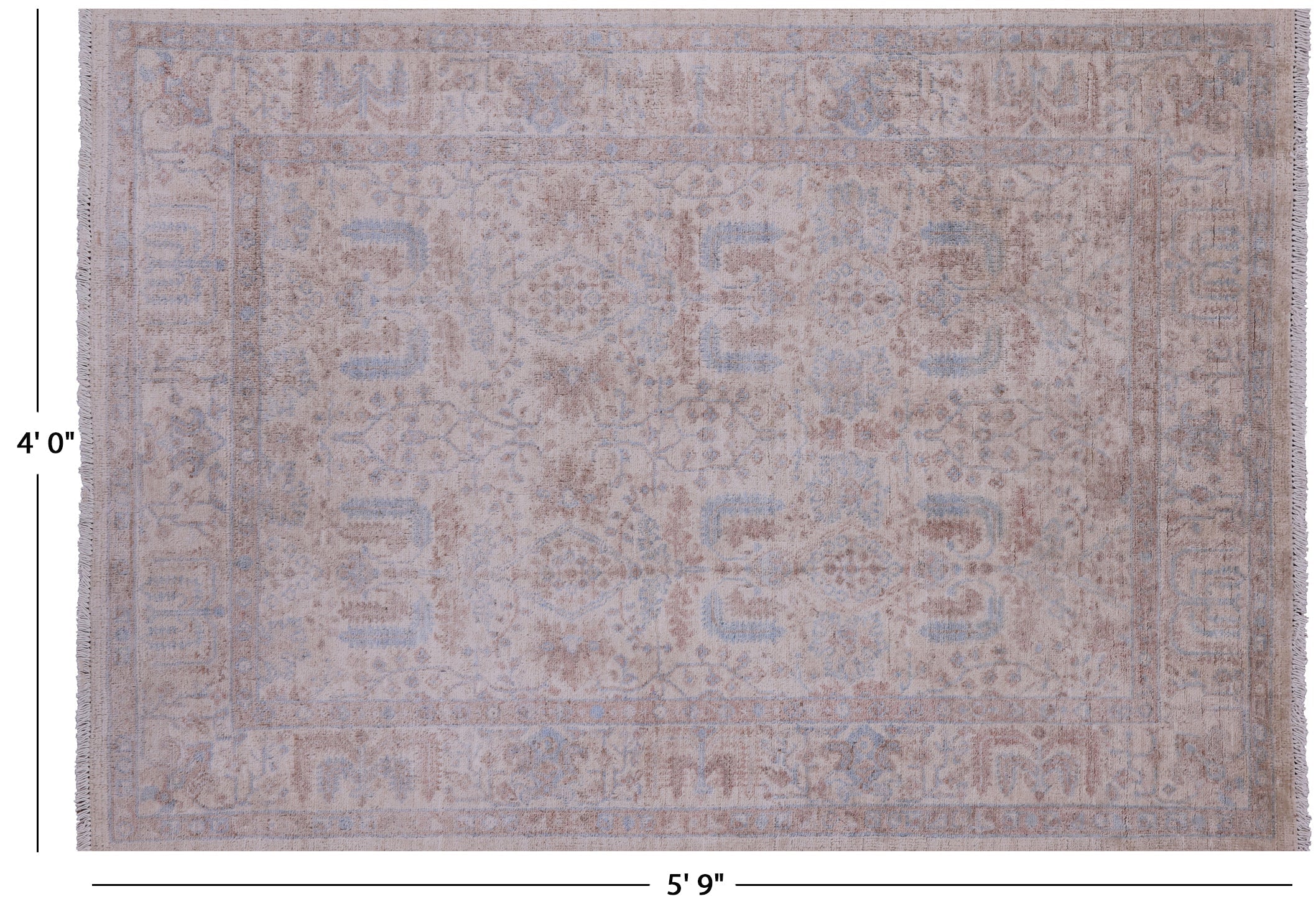 Ivory 4' 0" X 5' 9" Turkish Oushak Handmade Wool Rug - Q14619