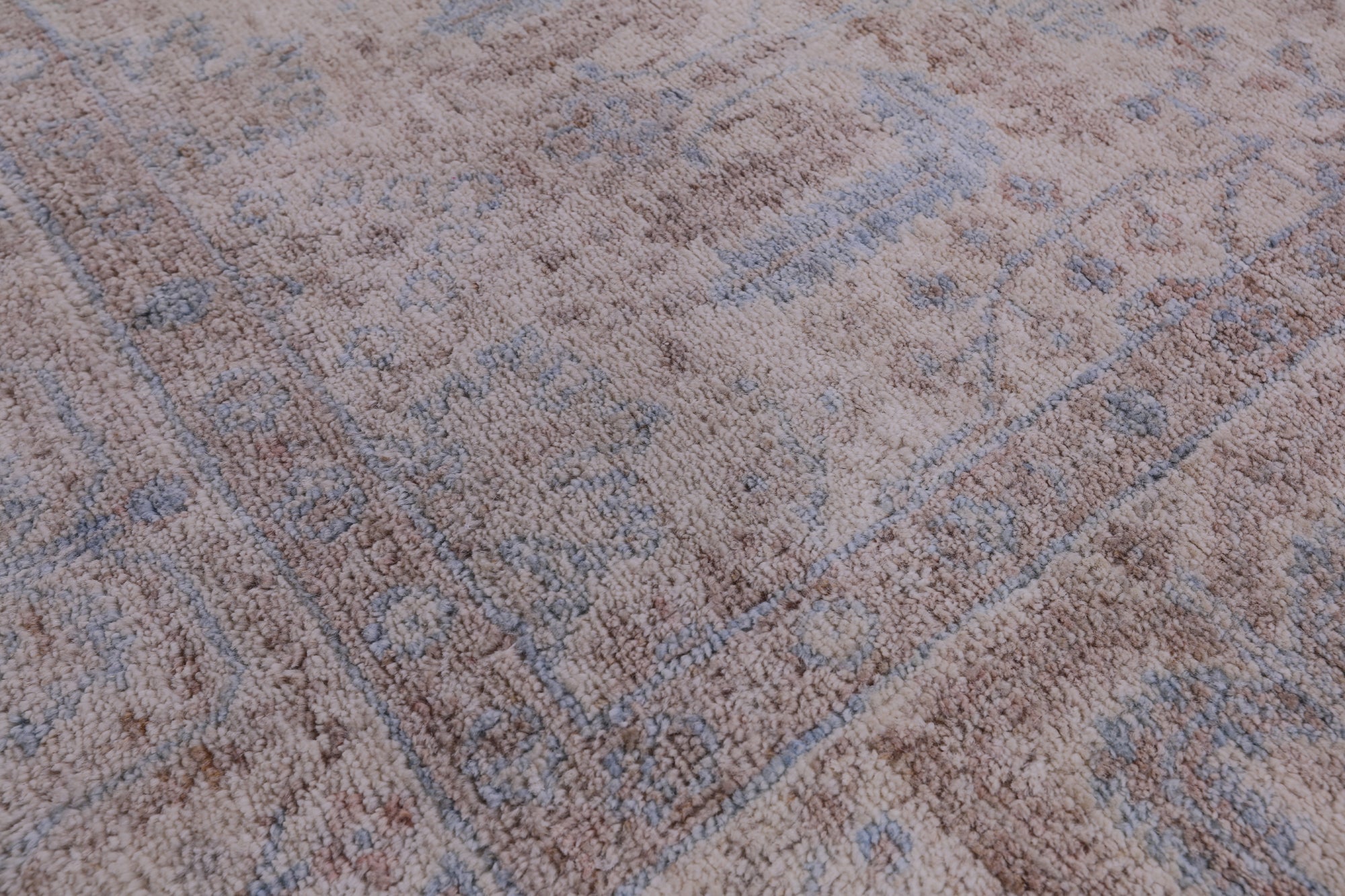 Originating in the small town of Oushak in west-central Anatolia, these rugs were highly favored by the Ottoman Empire. Oushak rugs are one of the most significant styles of Turkish rugs and are known for their beautiful antique look. They are usually designed with motifs consisting of flowers, tendrils, or even geometric shape designs. Larger medallions complement the more intricate designs, creating perfect harmony. Colors are stunningly balanced with warm and cool tones, completing the rug.