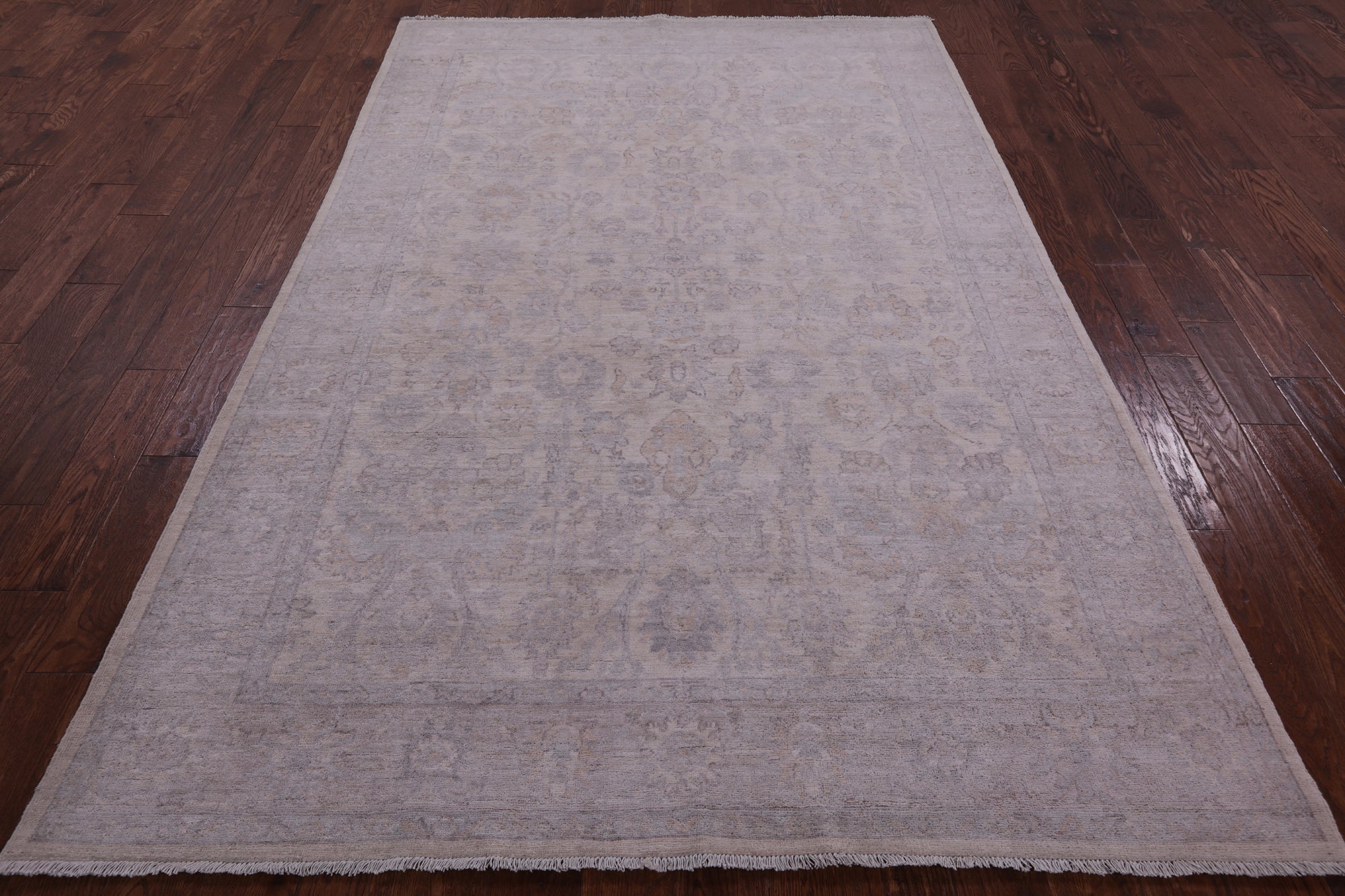 Ivory Turkish Oushak Washed Out Hand-Knotted Wool Rug 6' 0" X 9' 2" - Q9529