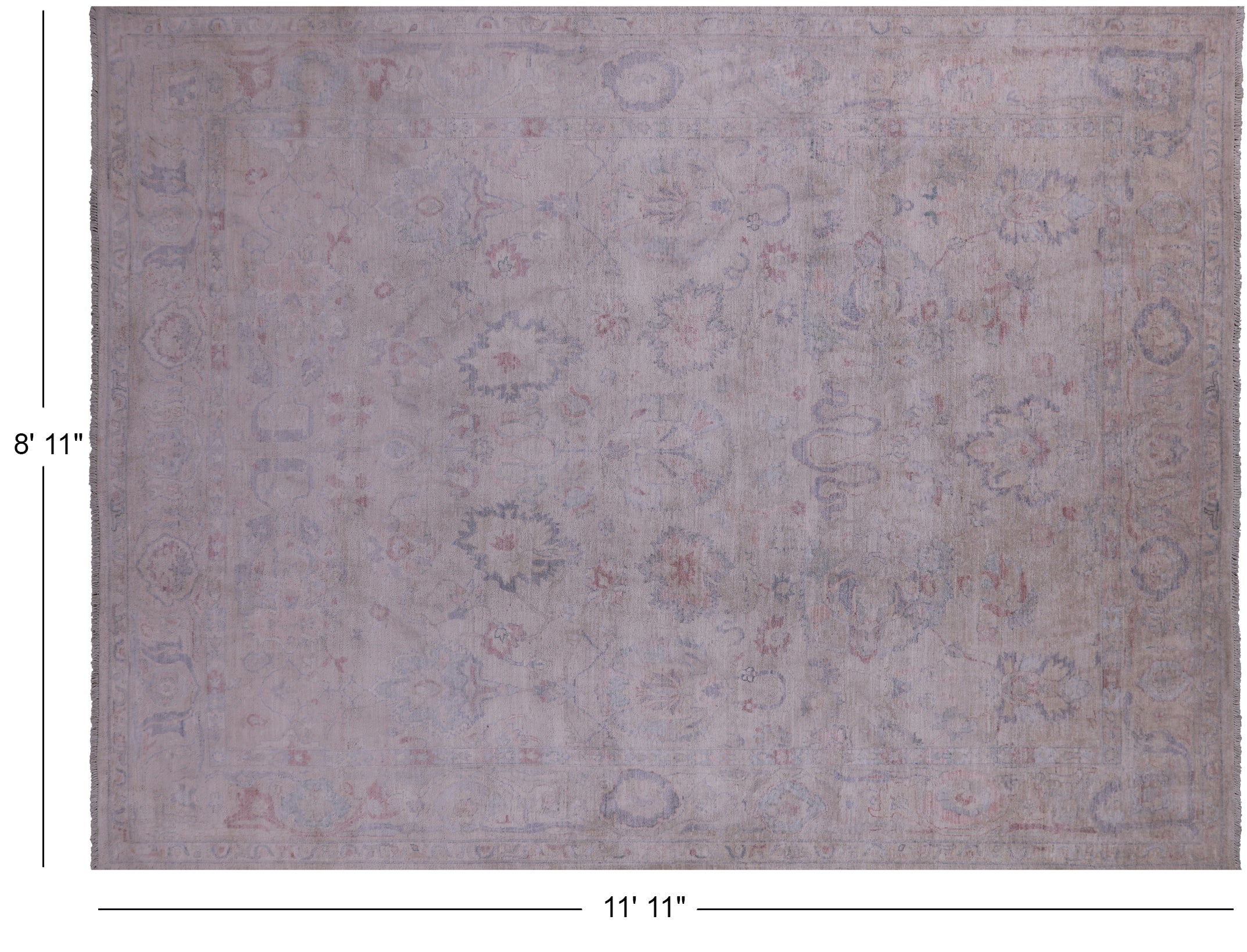 Ivory 8' 11" X 11' 11" Turkish Oushak Washed Out Handmade Wool Rug - Q21995