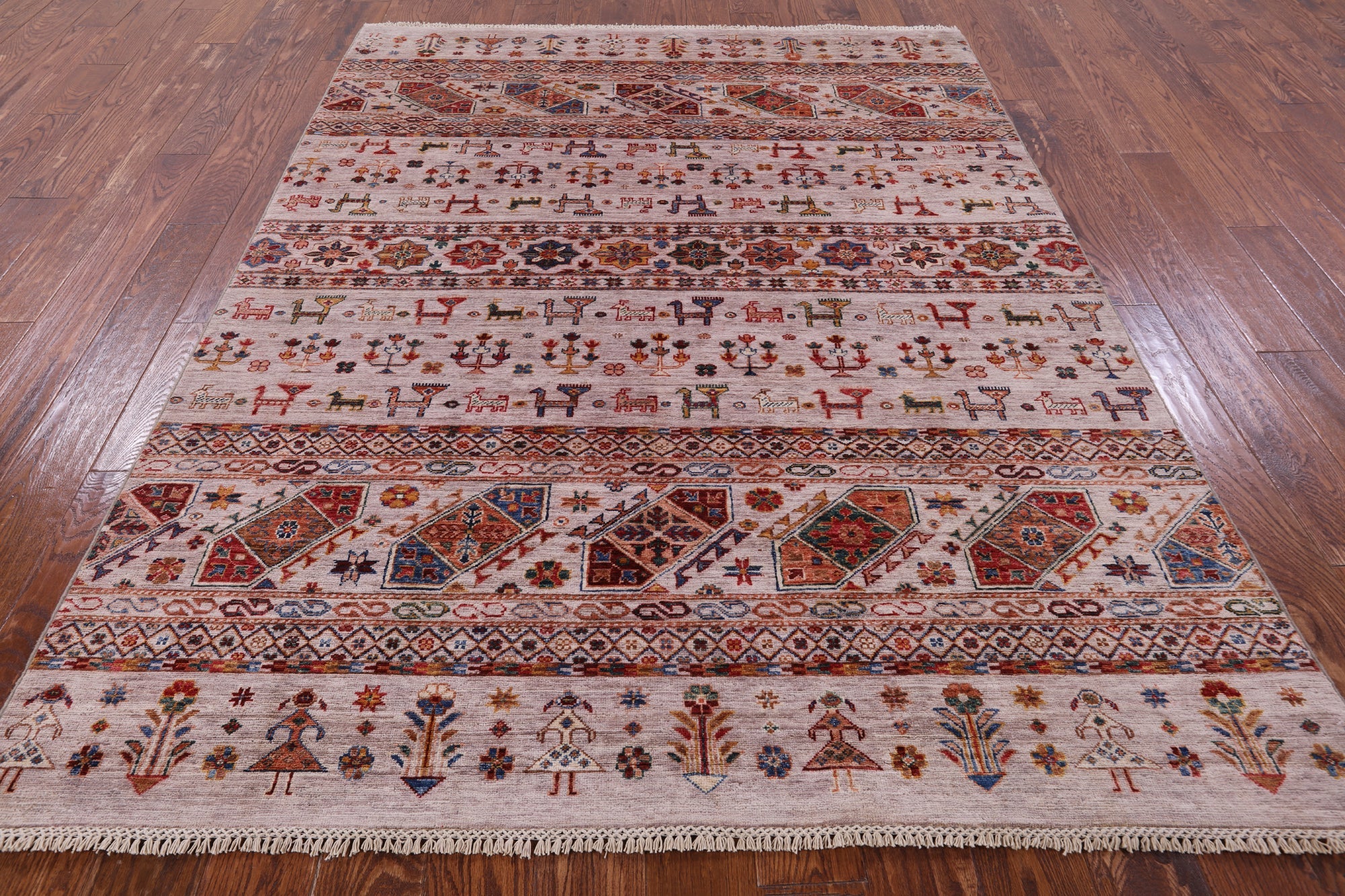 5' 8" X 7' 8" Persian Gabbeh Tribal Hand Knotted Rug - Q7543 is backordered and will ship as soon as it is back in stock.