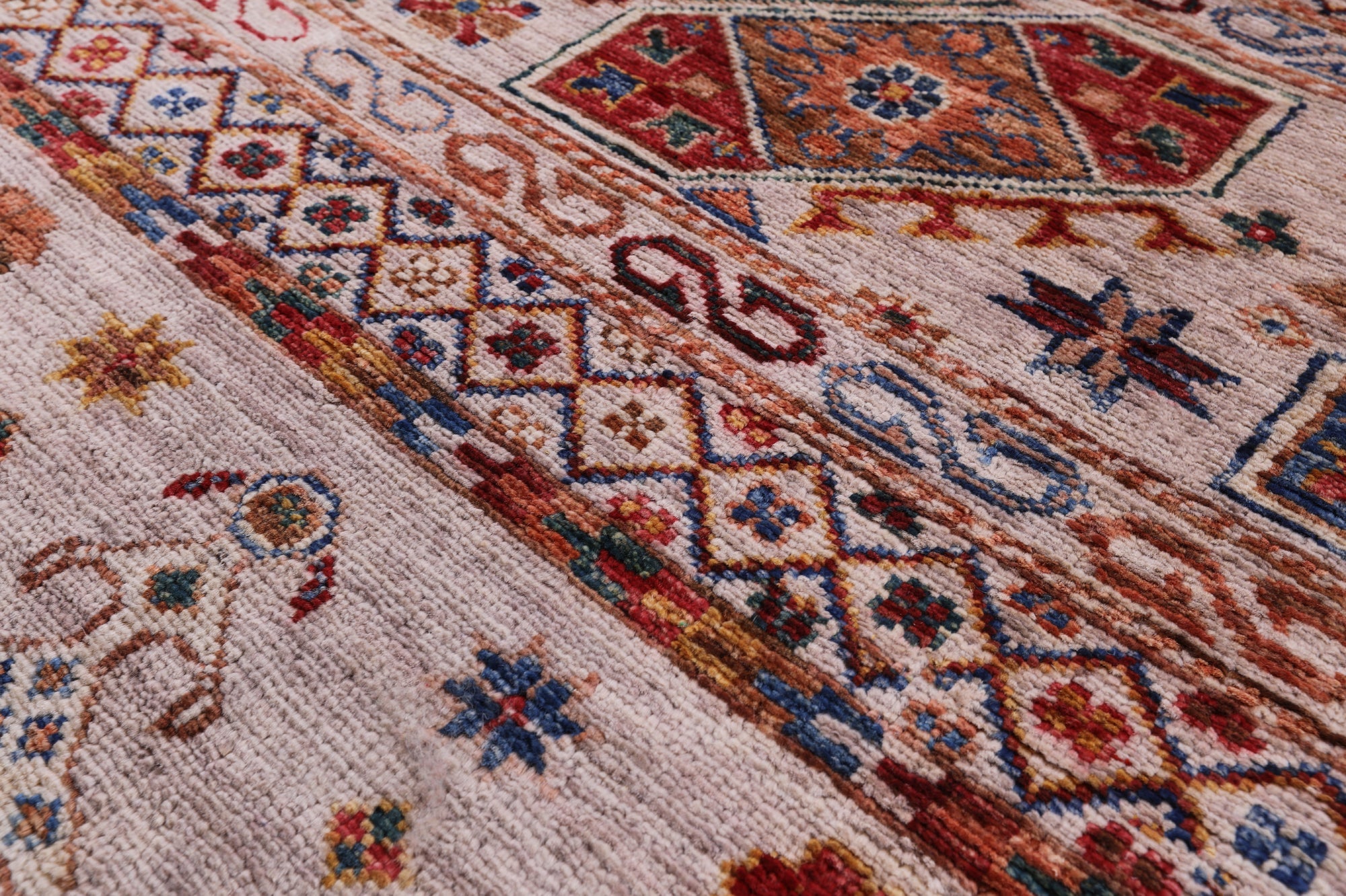 This is a genuine hand knotted cut pile rug, not tufted, hooked, or machine made. All we do is hand knotted.