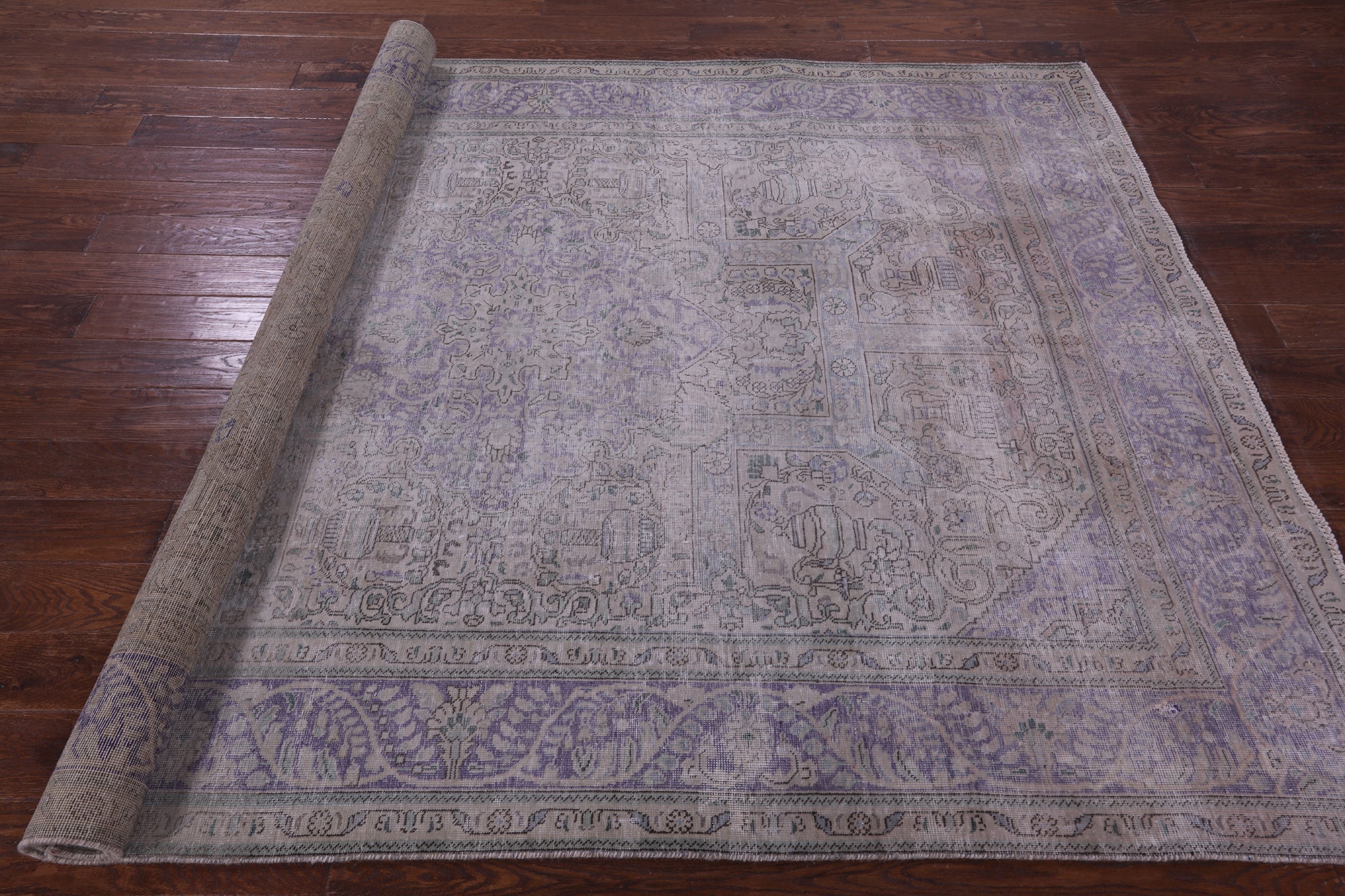 This Vintage looking rug is a Persian Rug that has been washed out. These kind of rugs demonstrate a process best described as 'The modern palette applied to classics'. It consists of an added step to the finishing process in which the rug is washed out, and sheared.