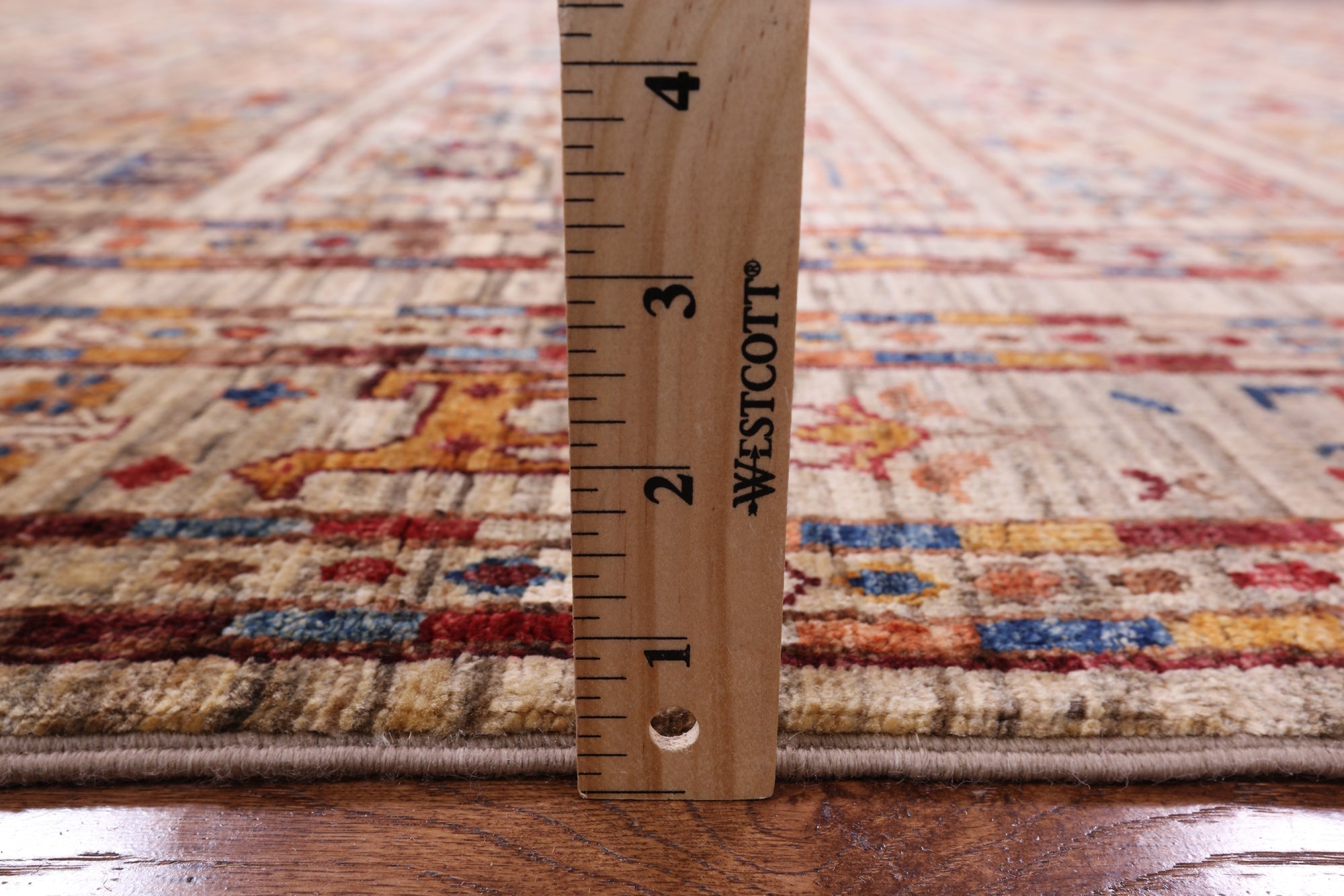 The hand-knotted Gabbeh rug epitomizes artisanal craftsmanship. Meticulously woven with naturally dyed wool, it boasts geometric patterns and tribal motifs, telling a unique cultural story. With a dense pile for comfort and a versatile aesthetic, the handmade Gabbeh rug is both a functional and artistic addition to any space.