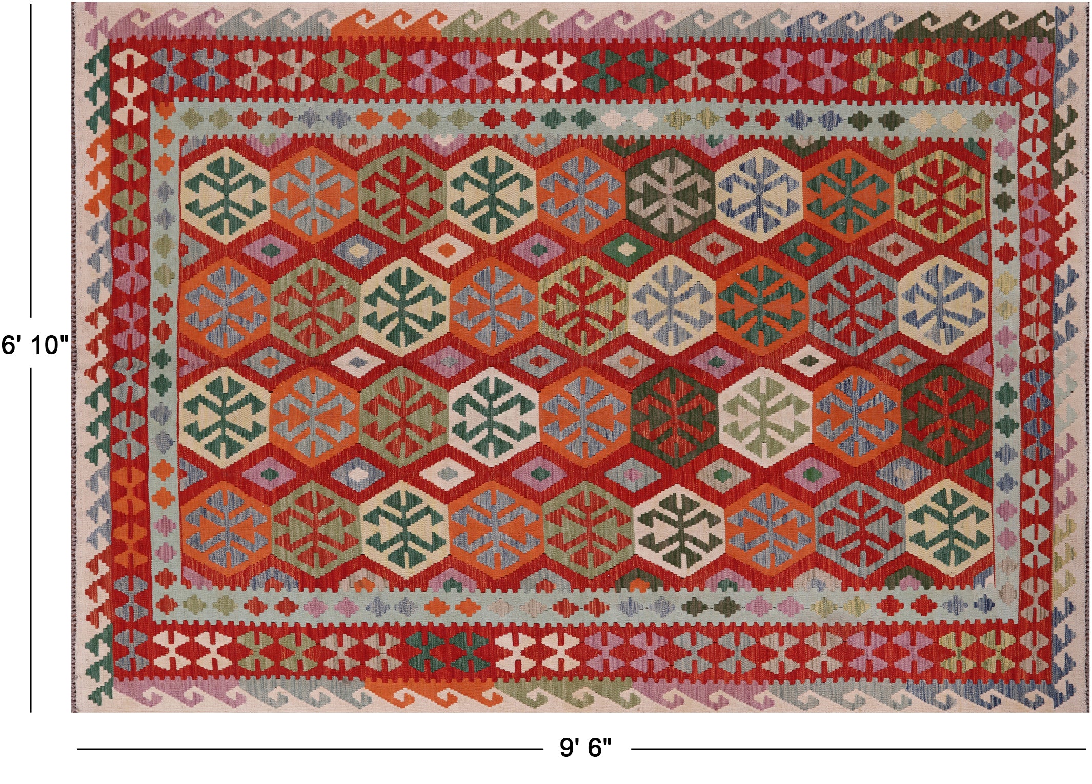6' 10" X 9' 6" Flat Weave Kilim Reversible Wool On Wool Rug - Q16202