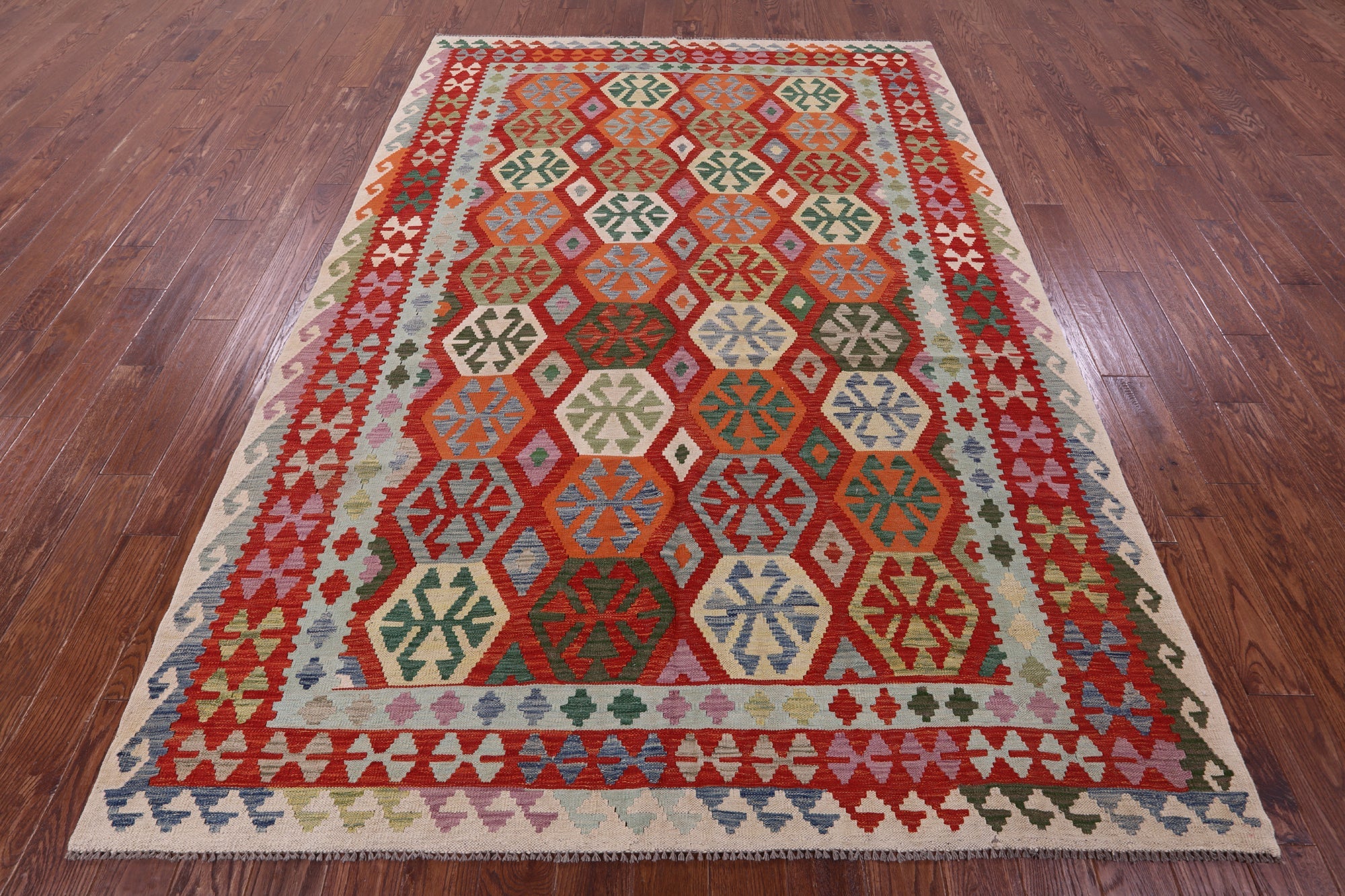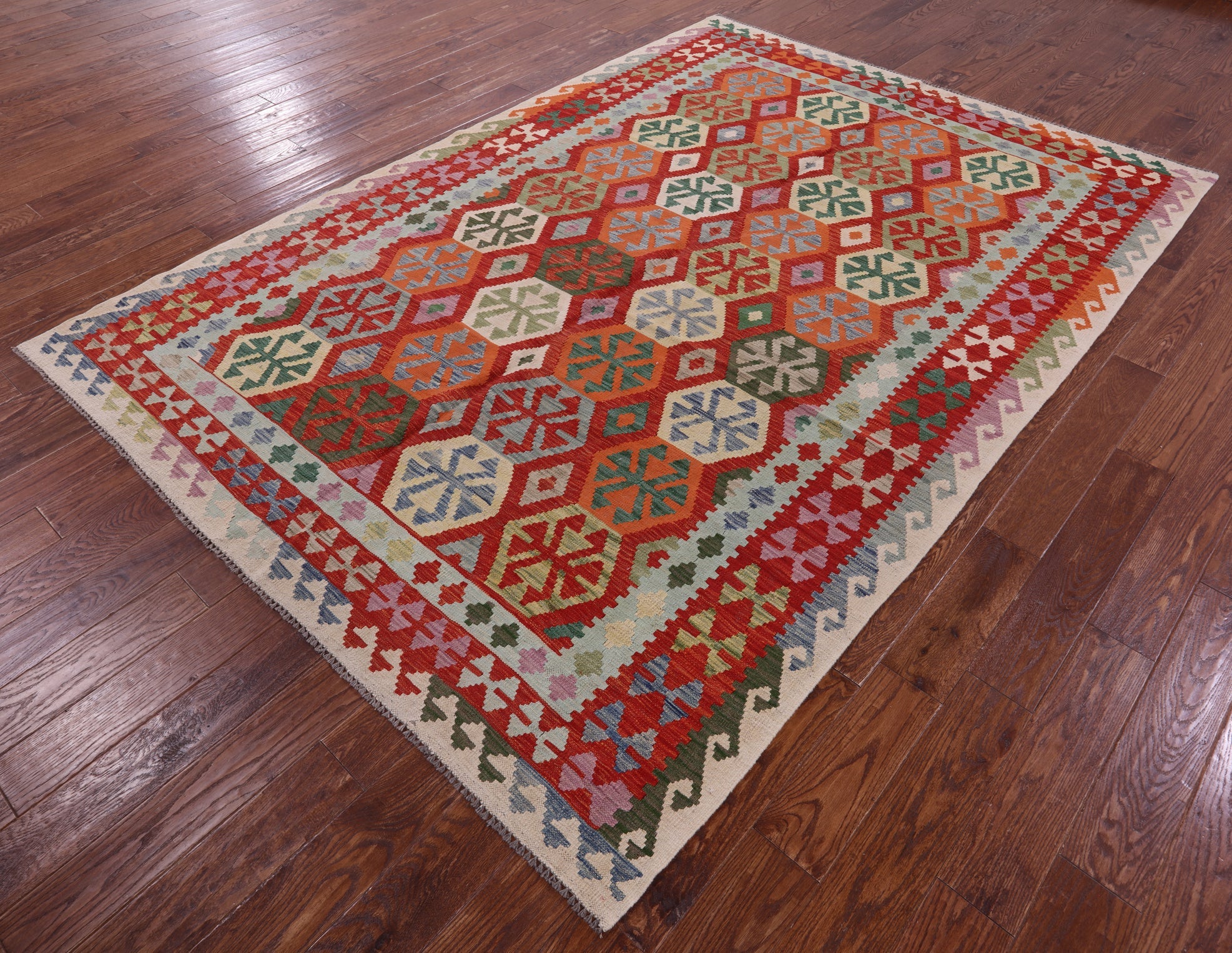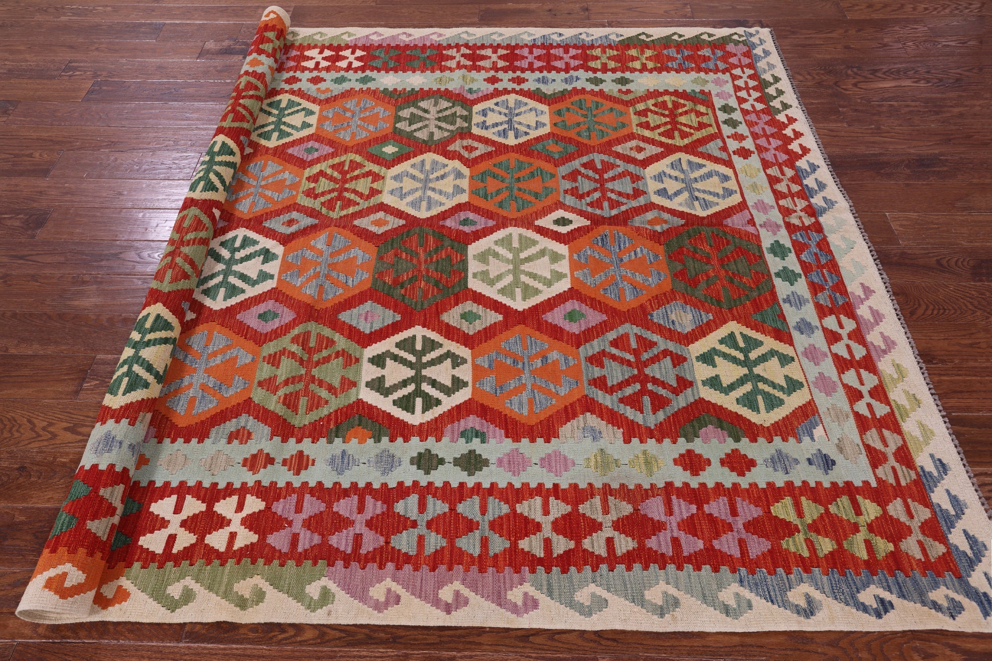 6' 10" X 9' 6" Flat Weave Kilim Reversible Wool On Wool Rug - Q16202 is backordered and will ship as soon as it is back in stock.