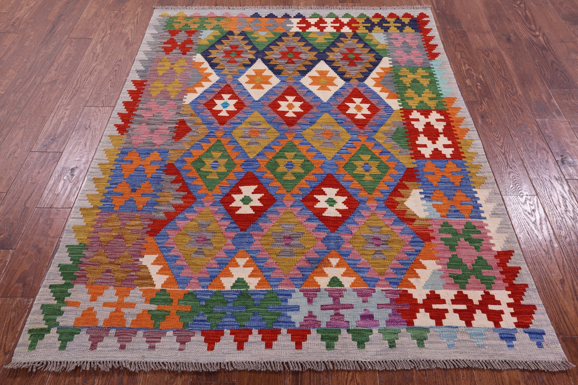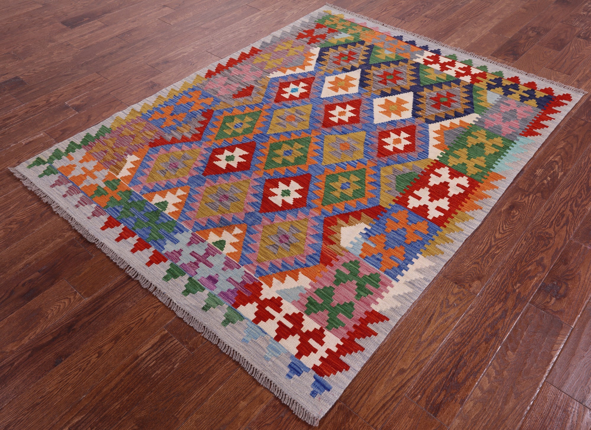 4' 11" X 6' 5" Flat Weave Kilim Wool On Wool Reversible Rug - Q17685 is backordered and will ship as soon as it is back in stock.