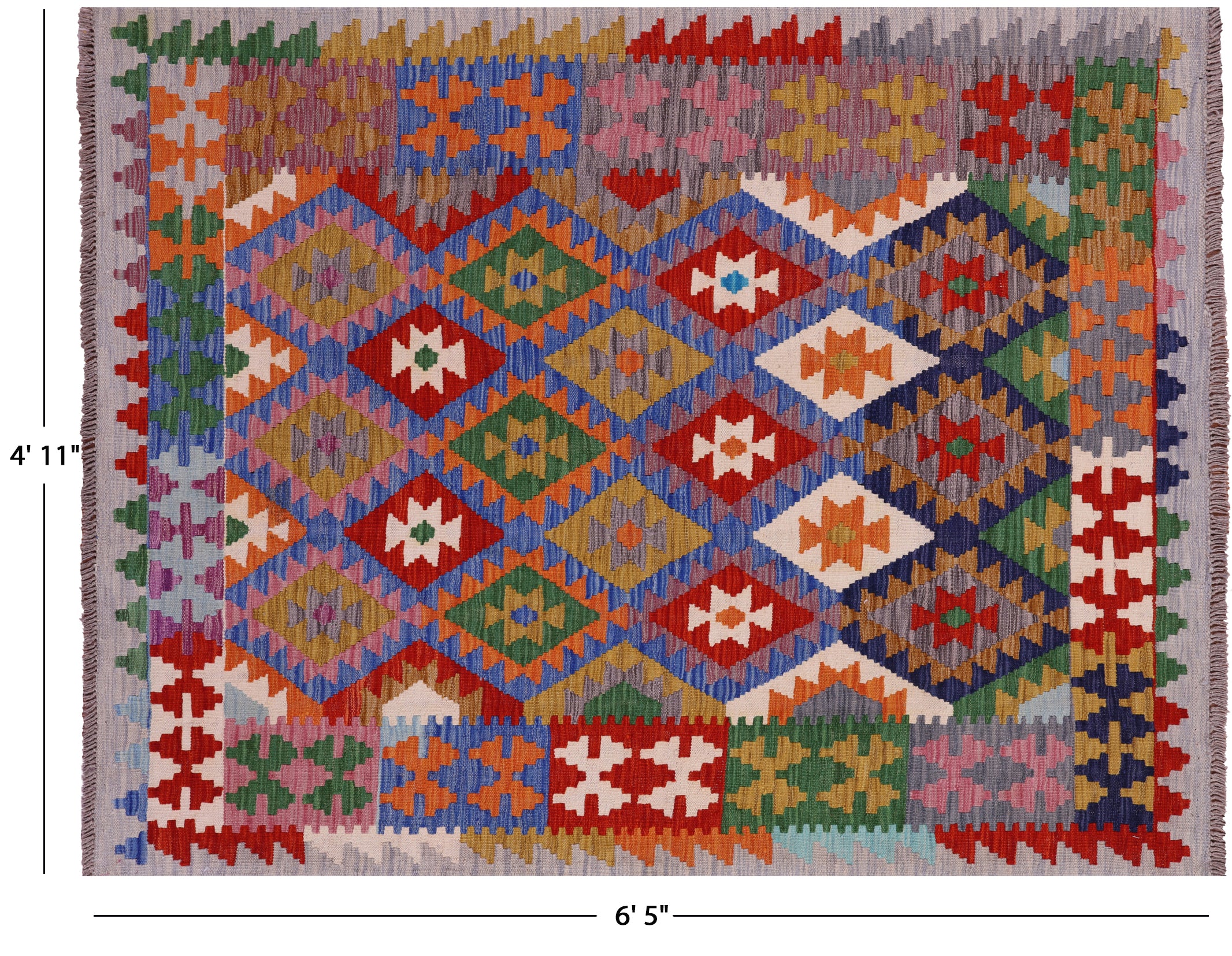 4' 11" X 6' 5" Flat Weave Kilim Wool On Wool Reversible Rug - Q17685