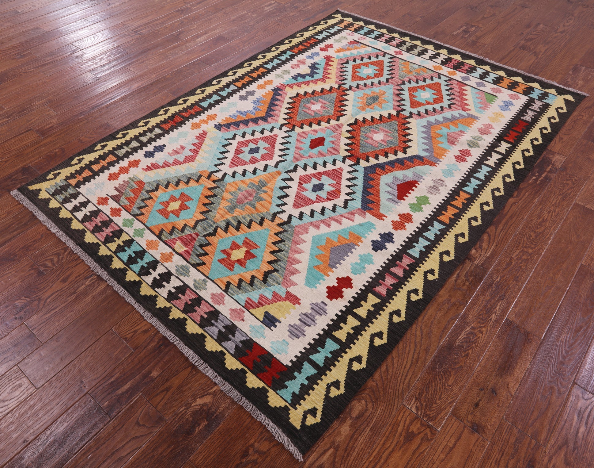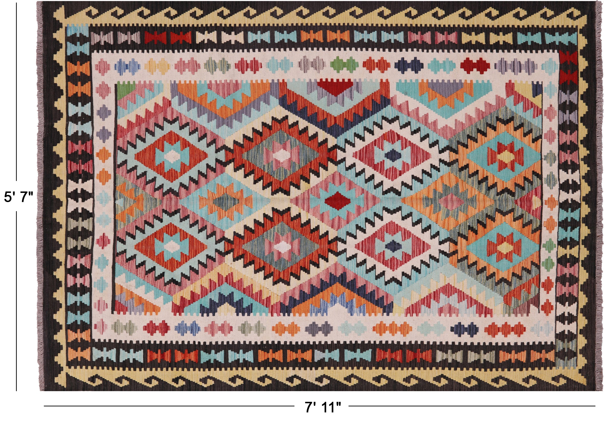 5' 7" X 7' 11" Kilim Flat Weave Reversible Wool On Wool Rug - Q17464 is backordered and will ship as soon as it is back in stock.