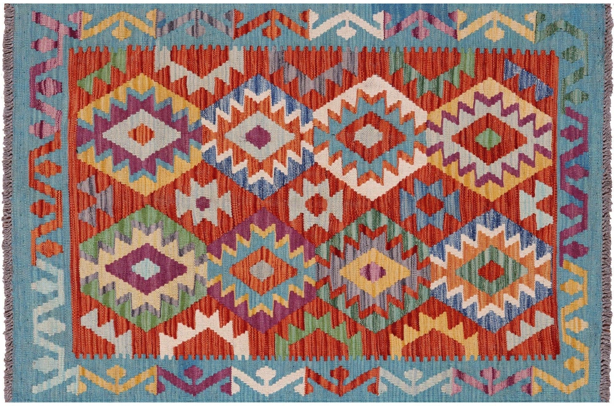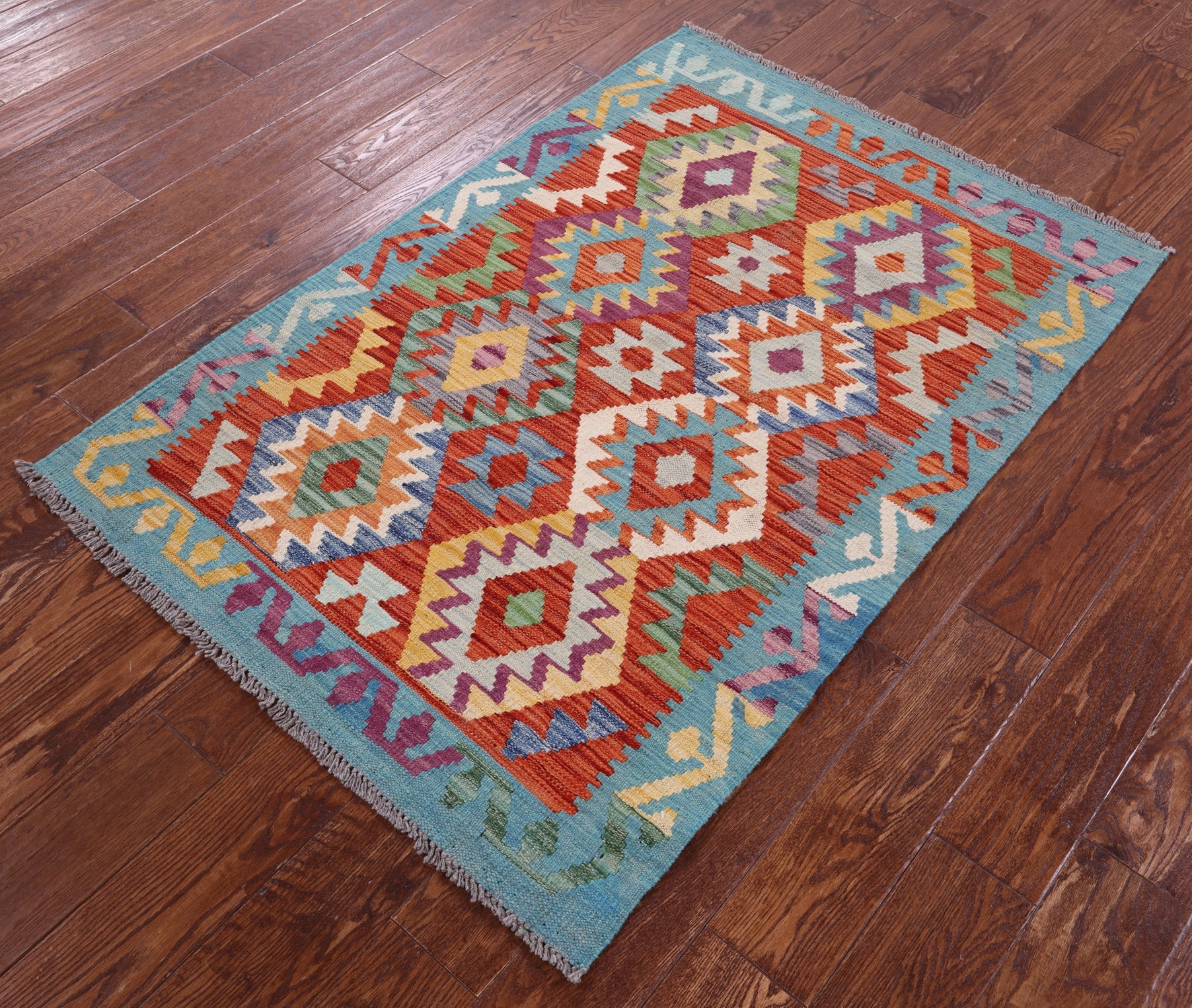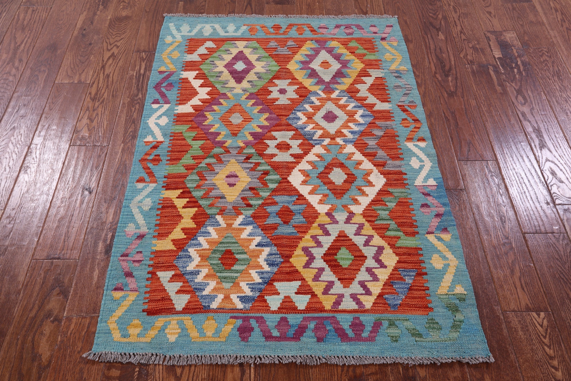 3' 3" X 4' 9" Kilim Flat Weave Reversible Wool On Wool Rug - Q17496