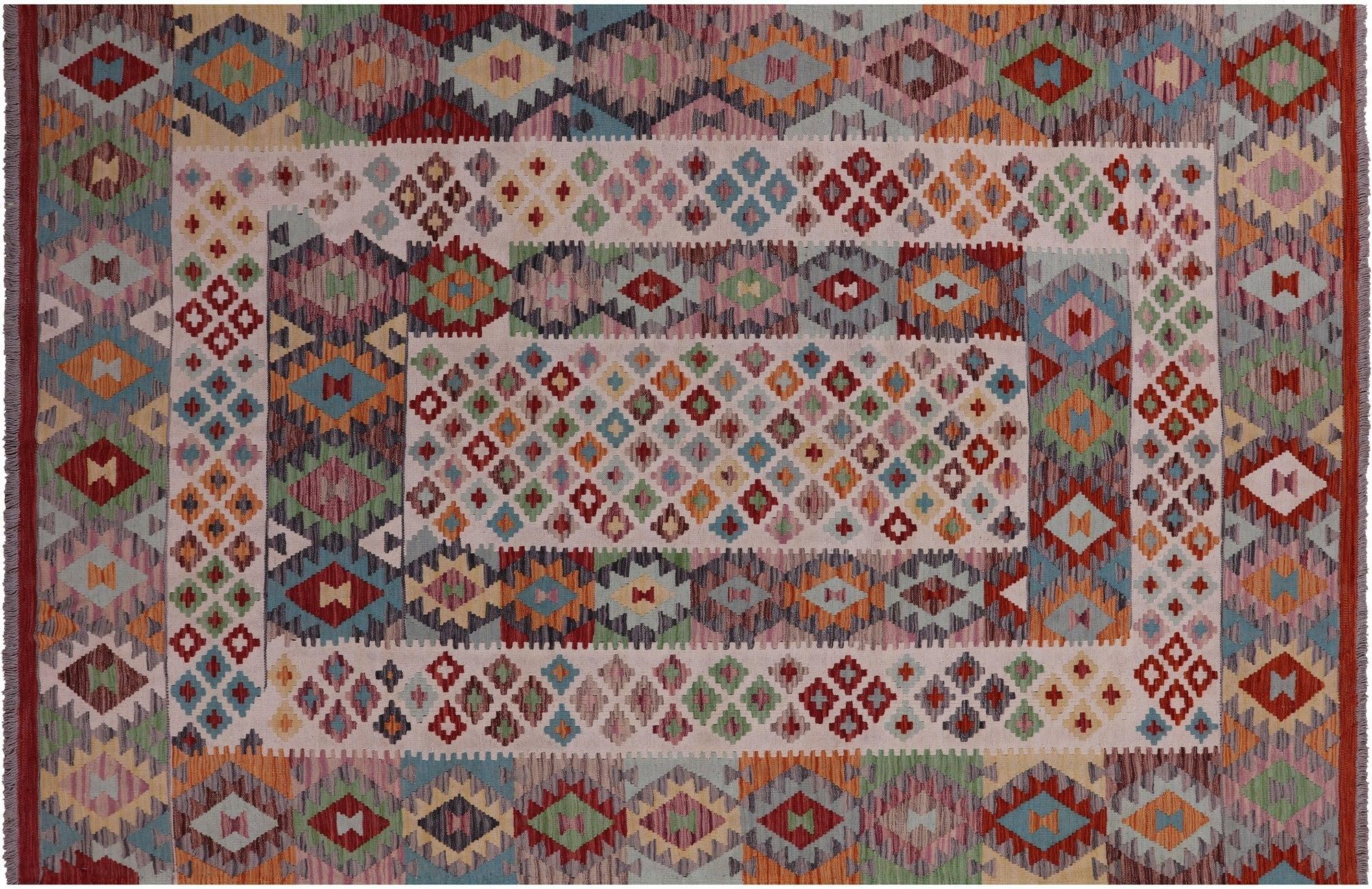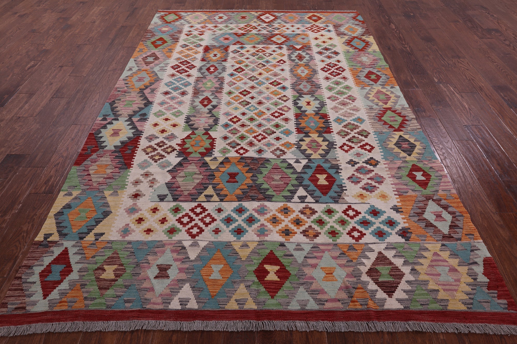 6' 6" X 9' 10" Kilim Flat Weave Reversible Wool On Wool Rug - Q17543