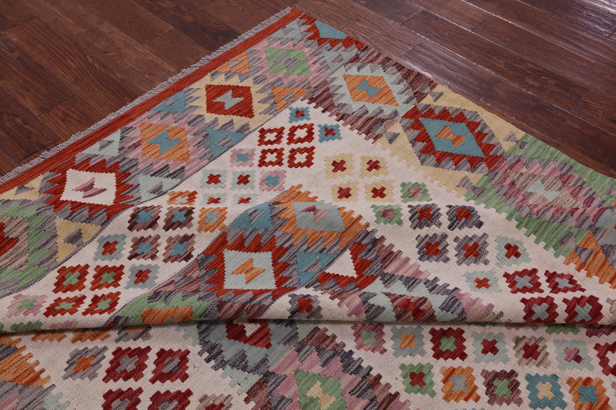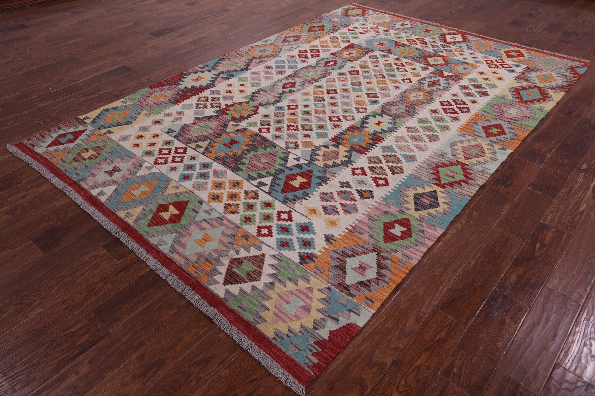 6' 6" X 9' 10" Kilim Flat Weave Reversible Wool On Wool Rug - Q17543 is backordered and will ship as soon as it is back in stock.