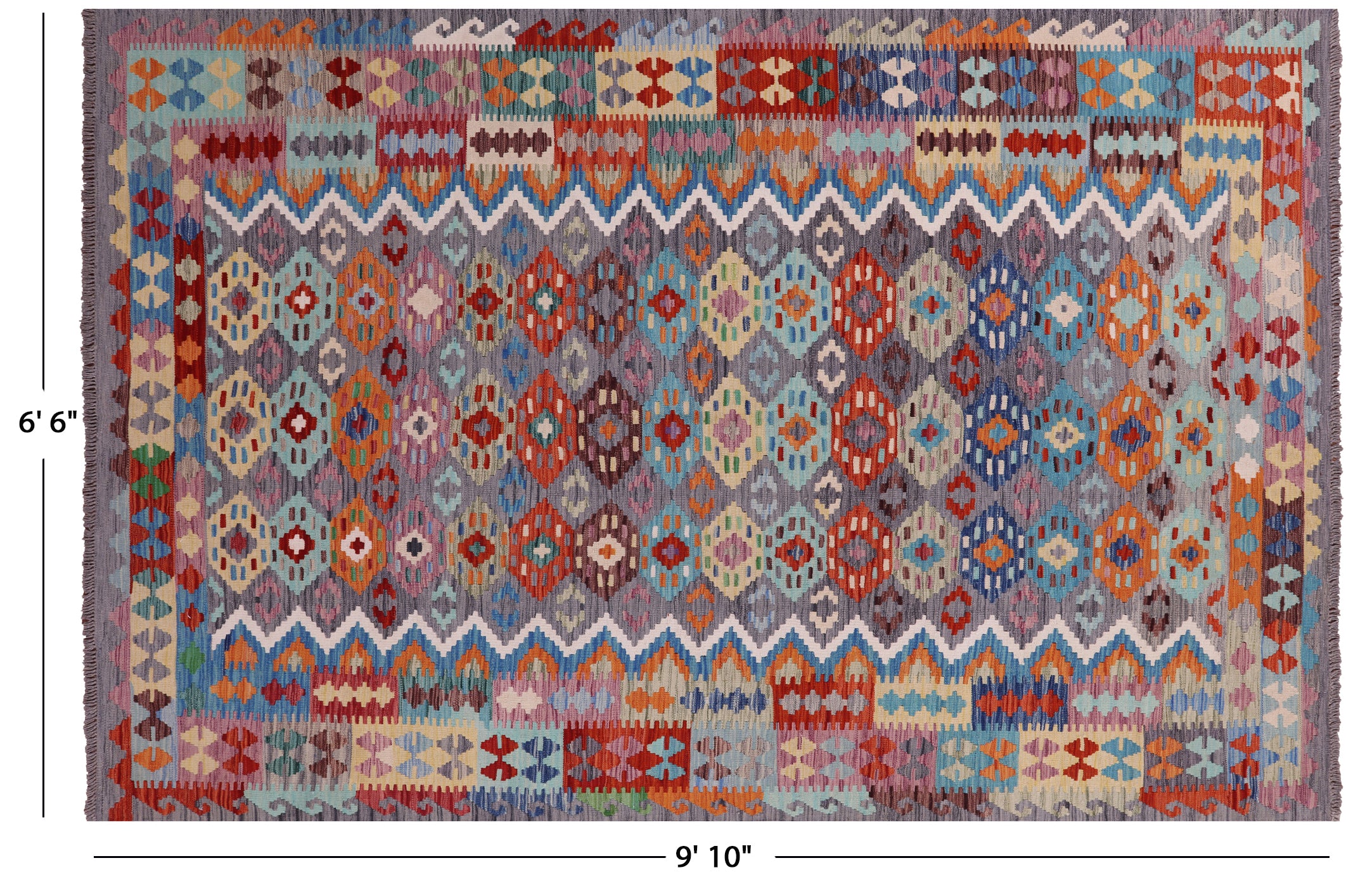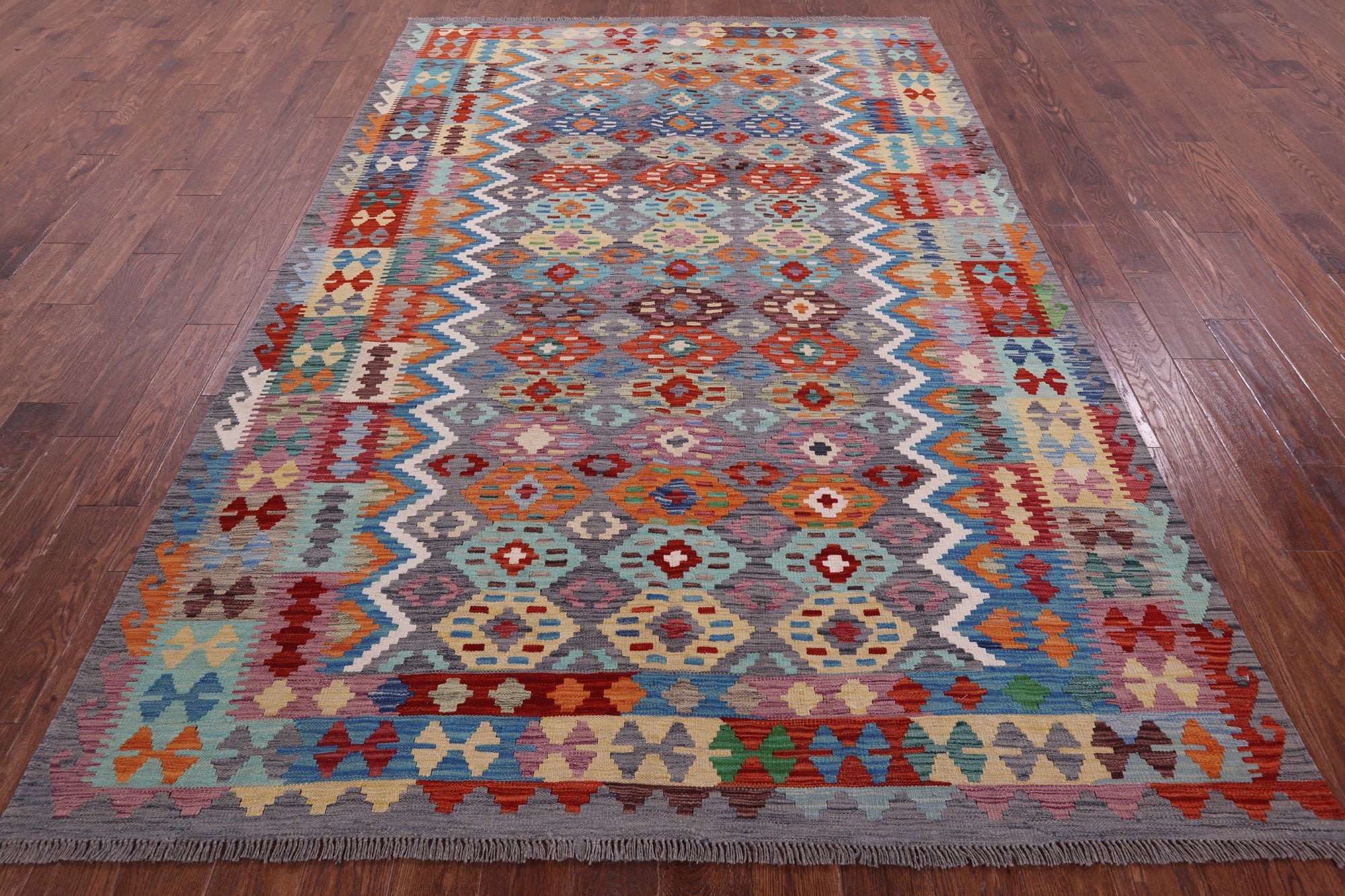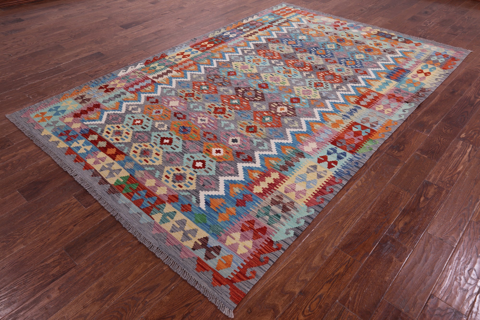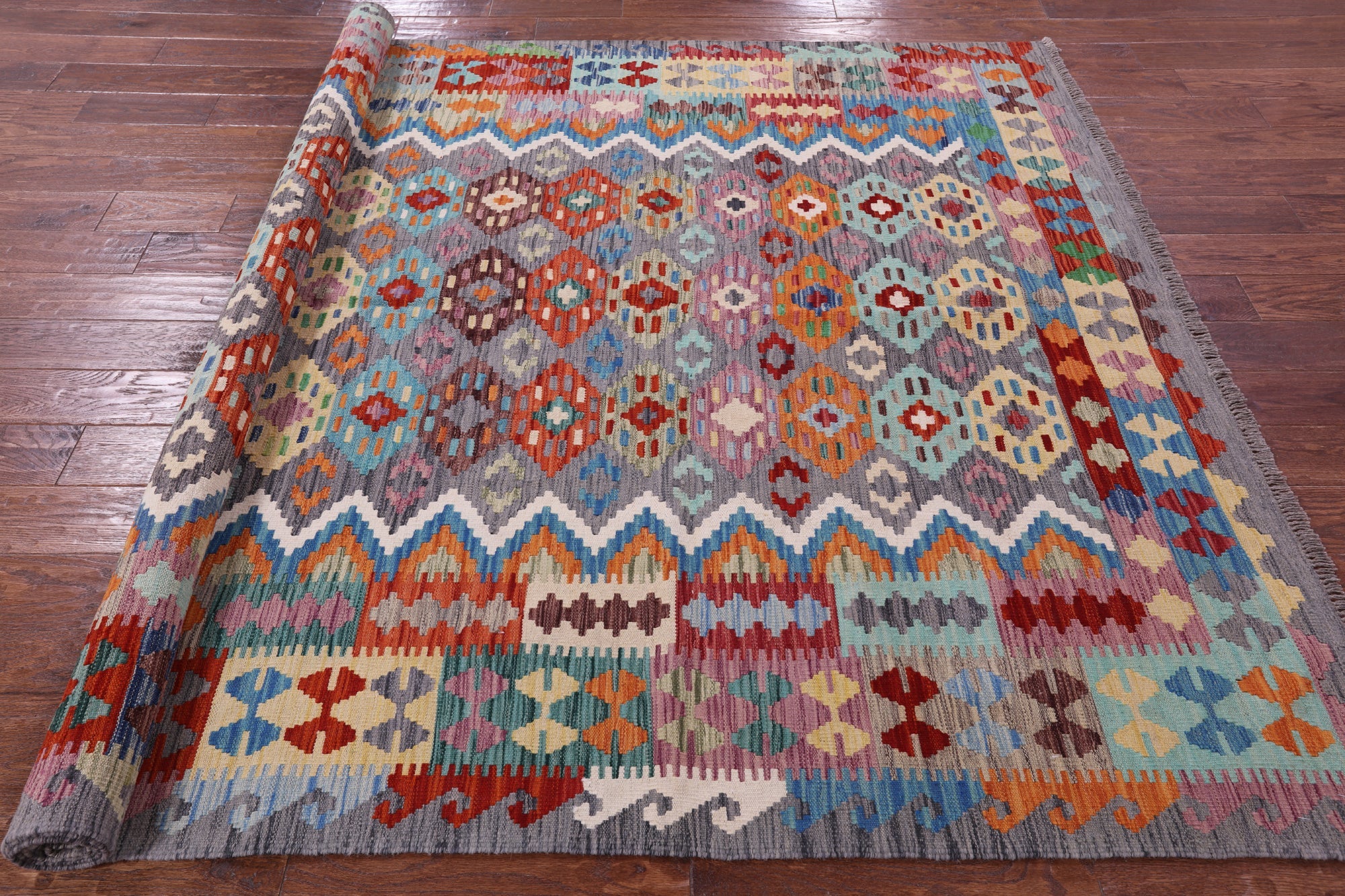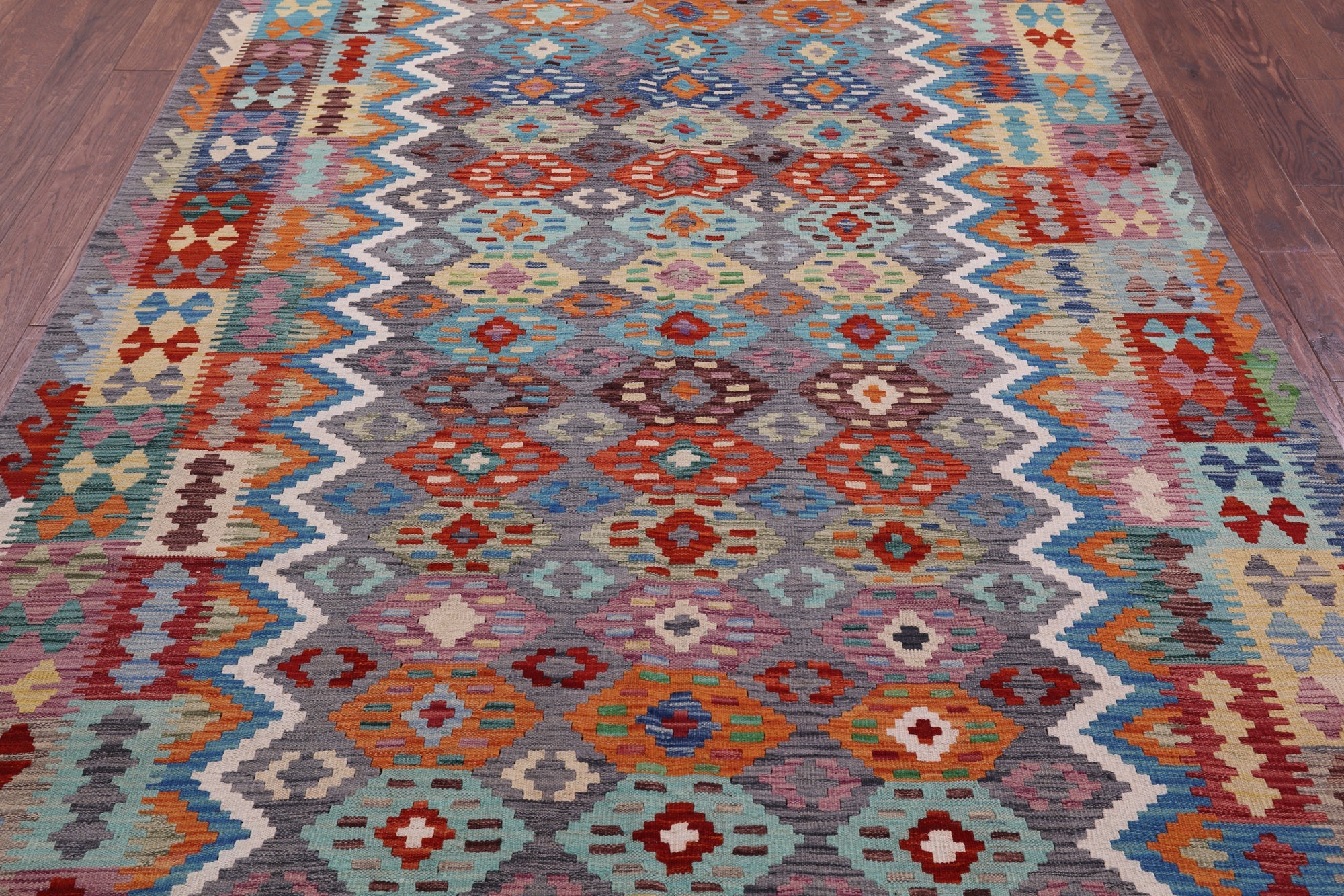 6' 6" X 9' 10" Kilim Flat Weave Reversible Wool On Wool Rug - Q17577 is backordered and will ship as soon as it is back in stock.