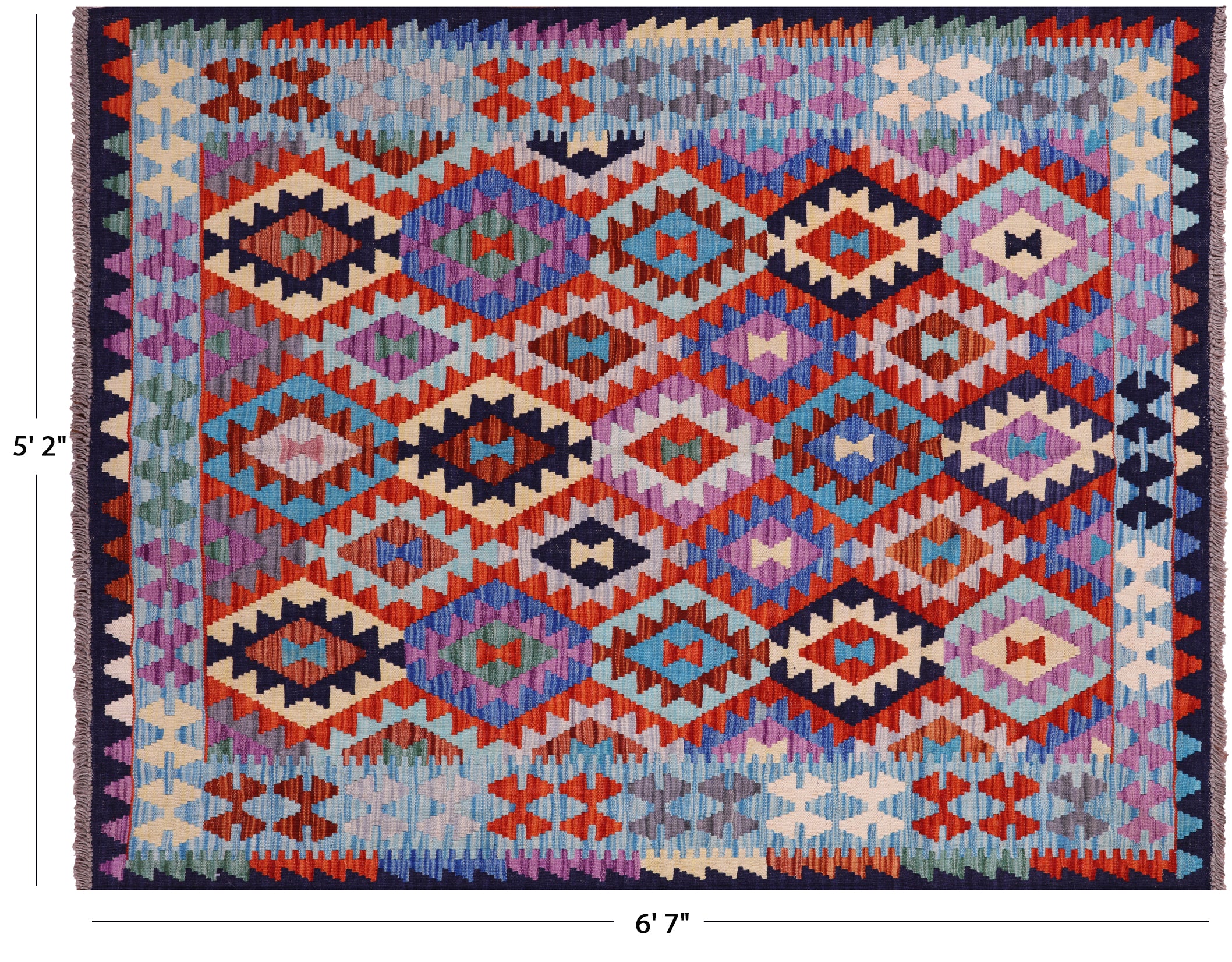 Kilim Flat Weave Reversible Wool On Wool Rug 5' 2" X 6' 7" - Q17623