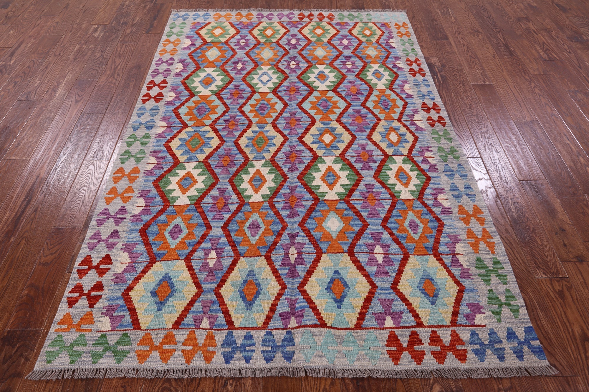 5' 6" X 7' 10" Kilim Flat Weave Reversible Wool On Wool Rug - Q17674