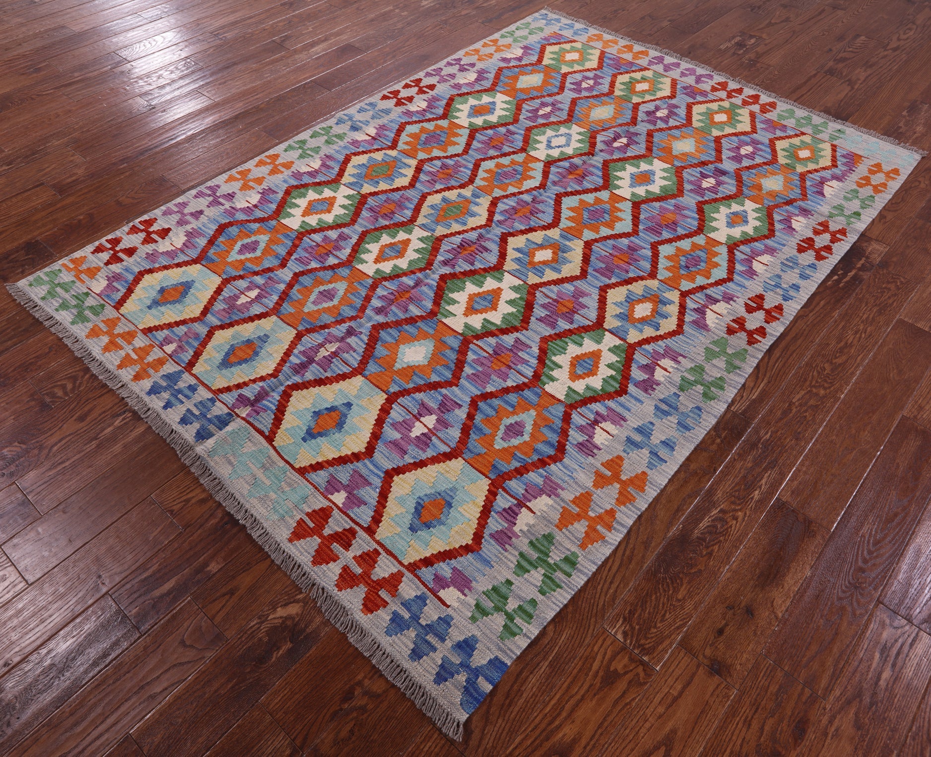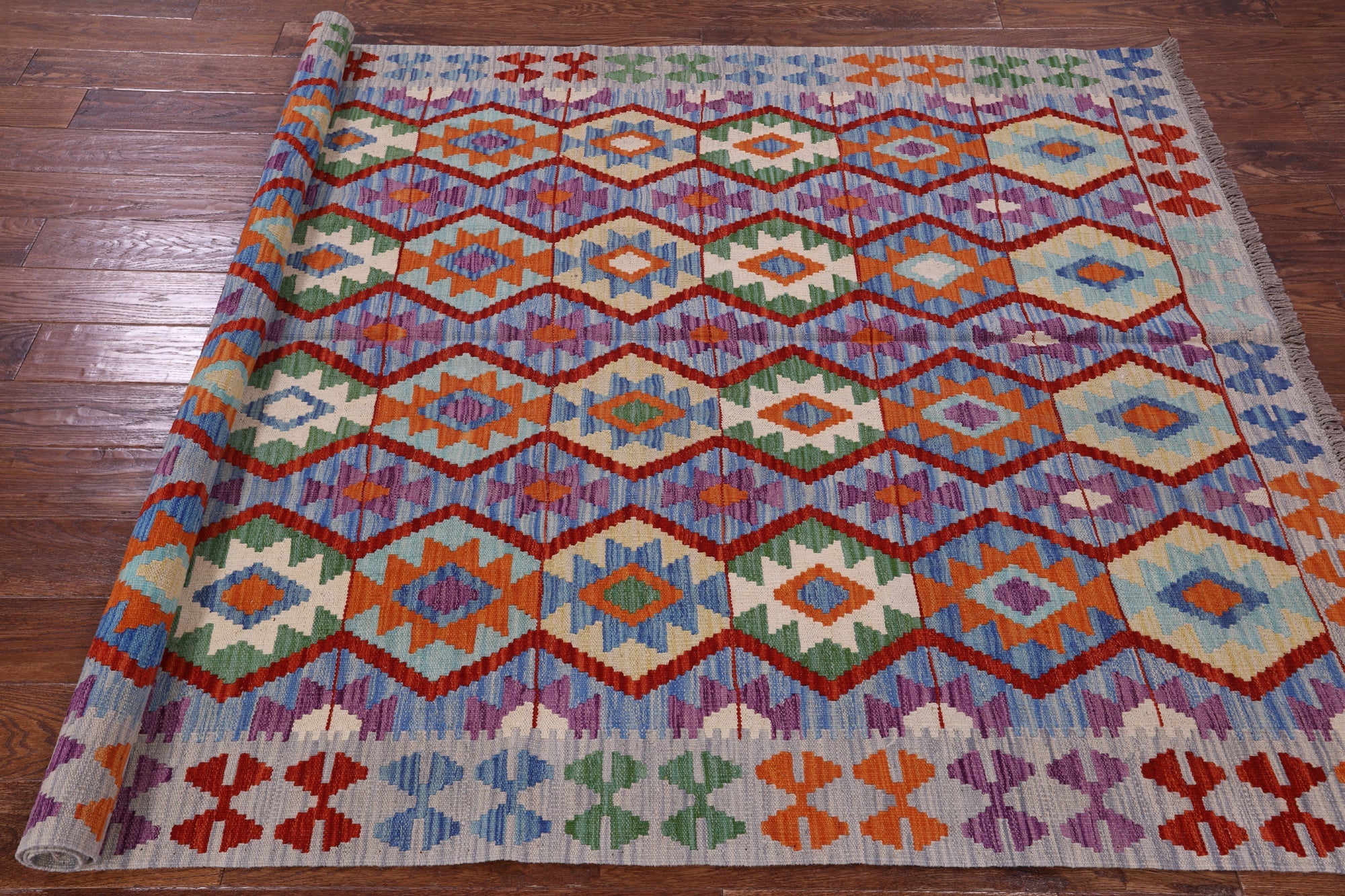 5' 6" X 7' 10" Kilim Flat Weave Reversible Wool On Wool Rug - Q17674 is backordered and will ship as soon as it is back in stock.