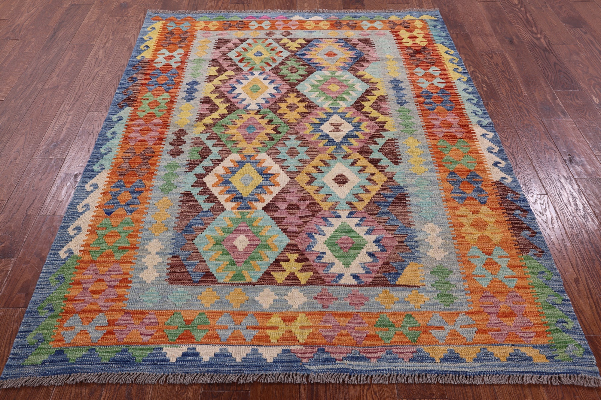 5' 4" X 6' 6" Kilim Flat Weave Reversible Wool On Wool Rug - Q17688 is backordered and will ship as soon as it is back in stock.