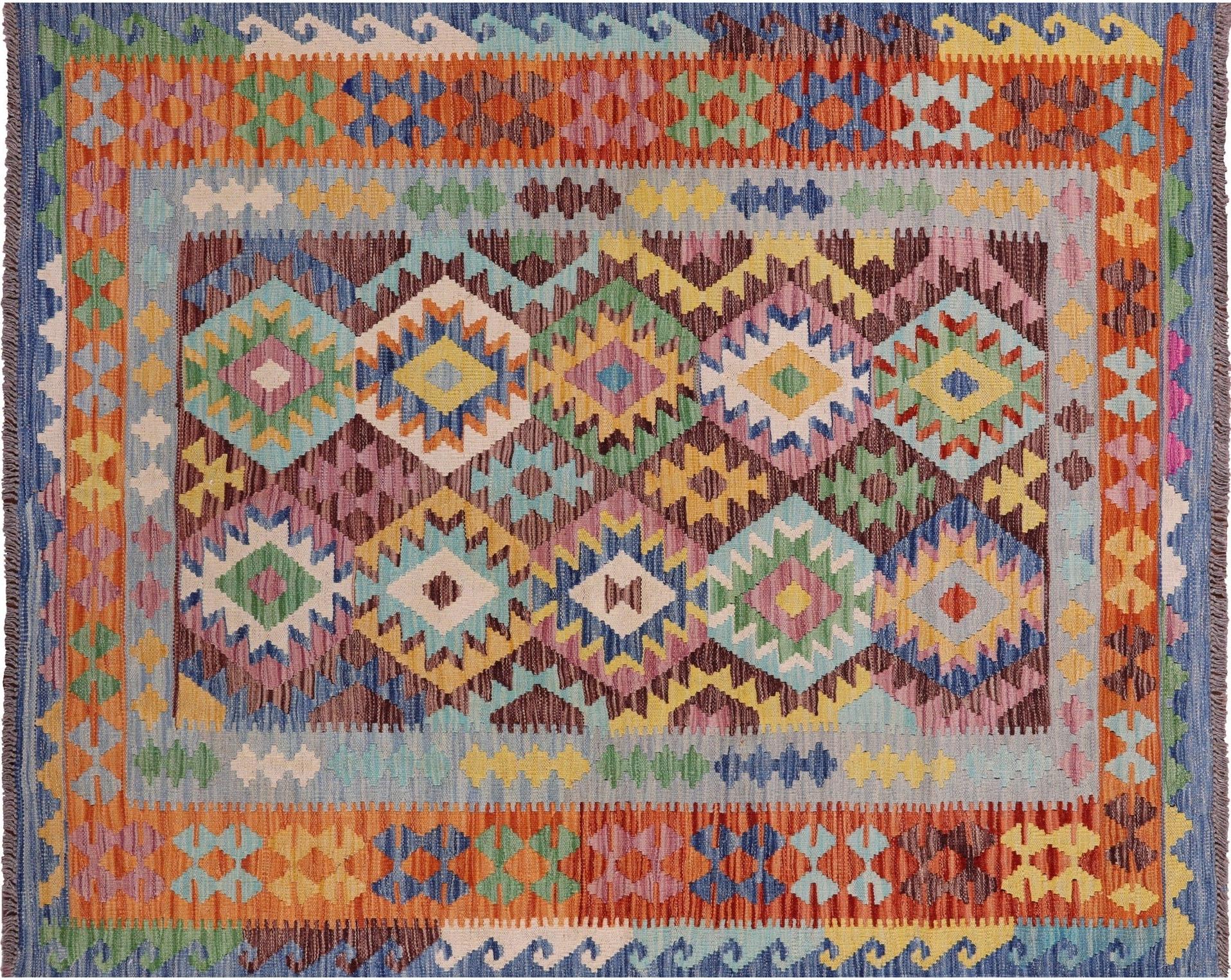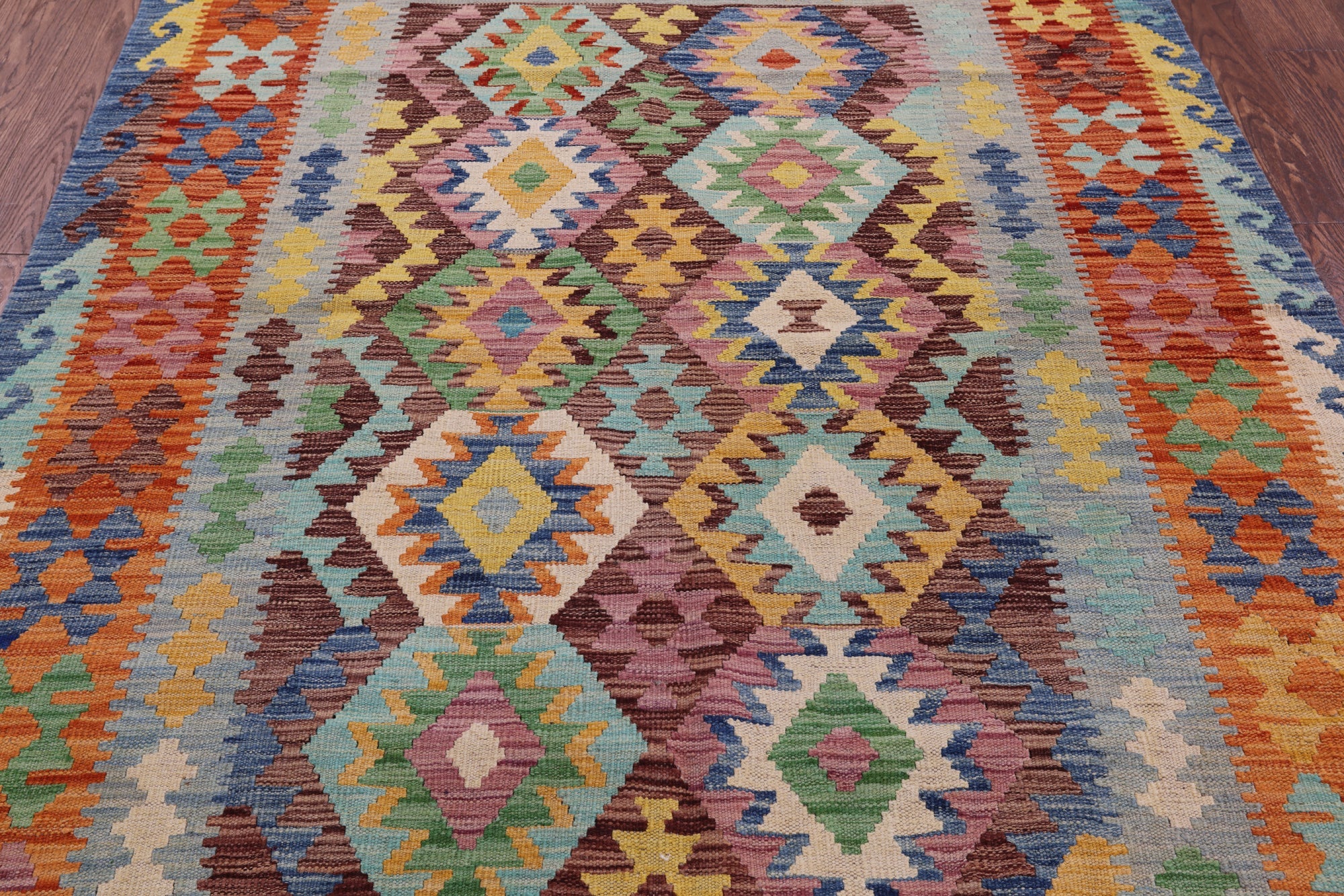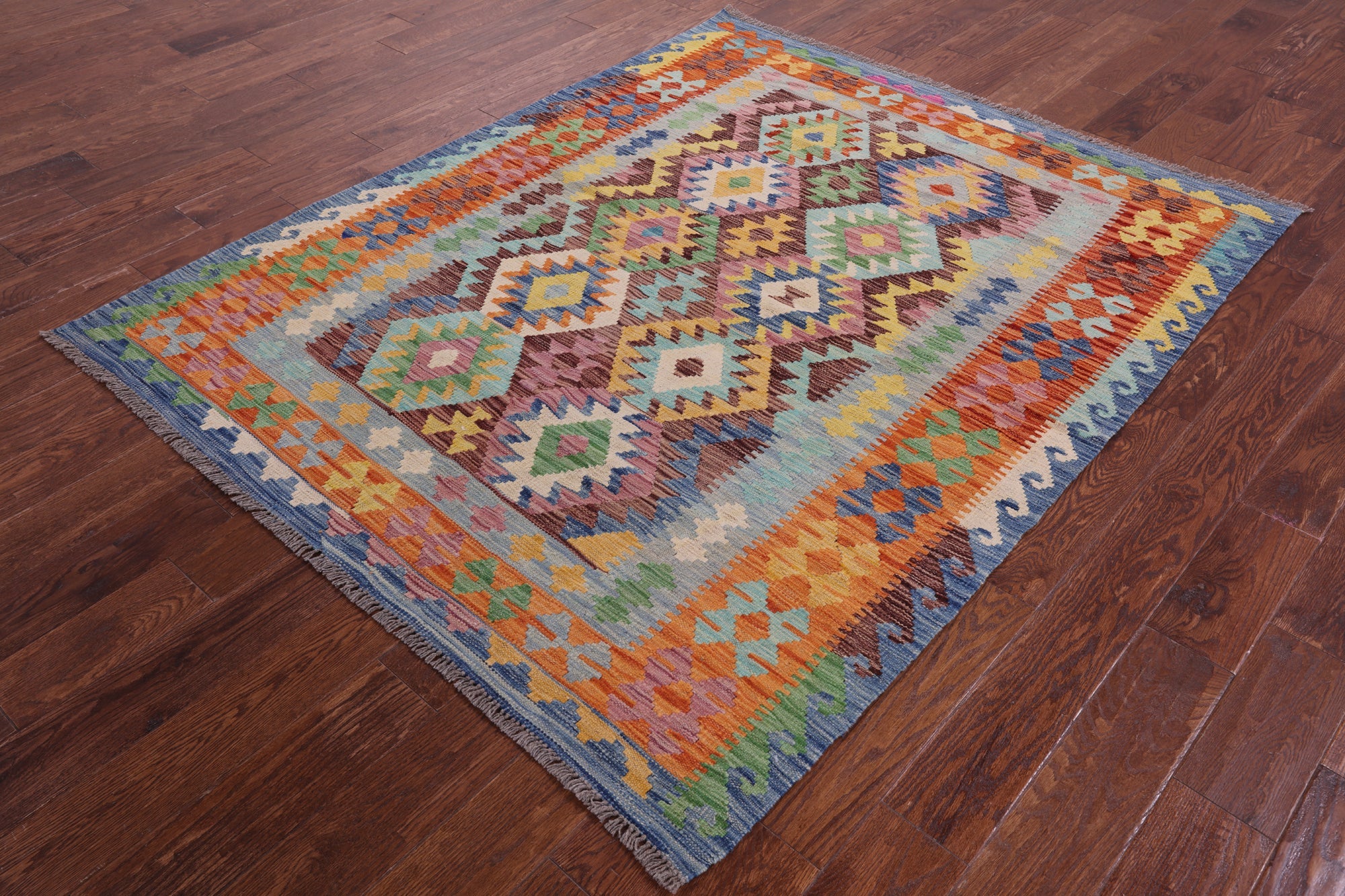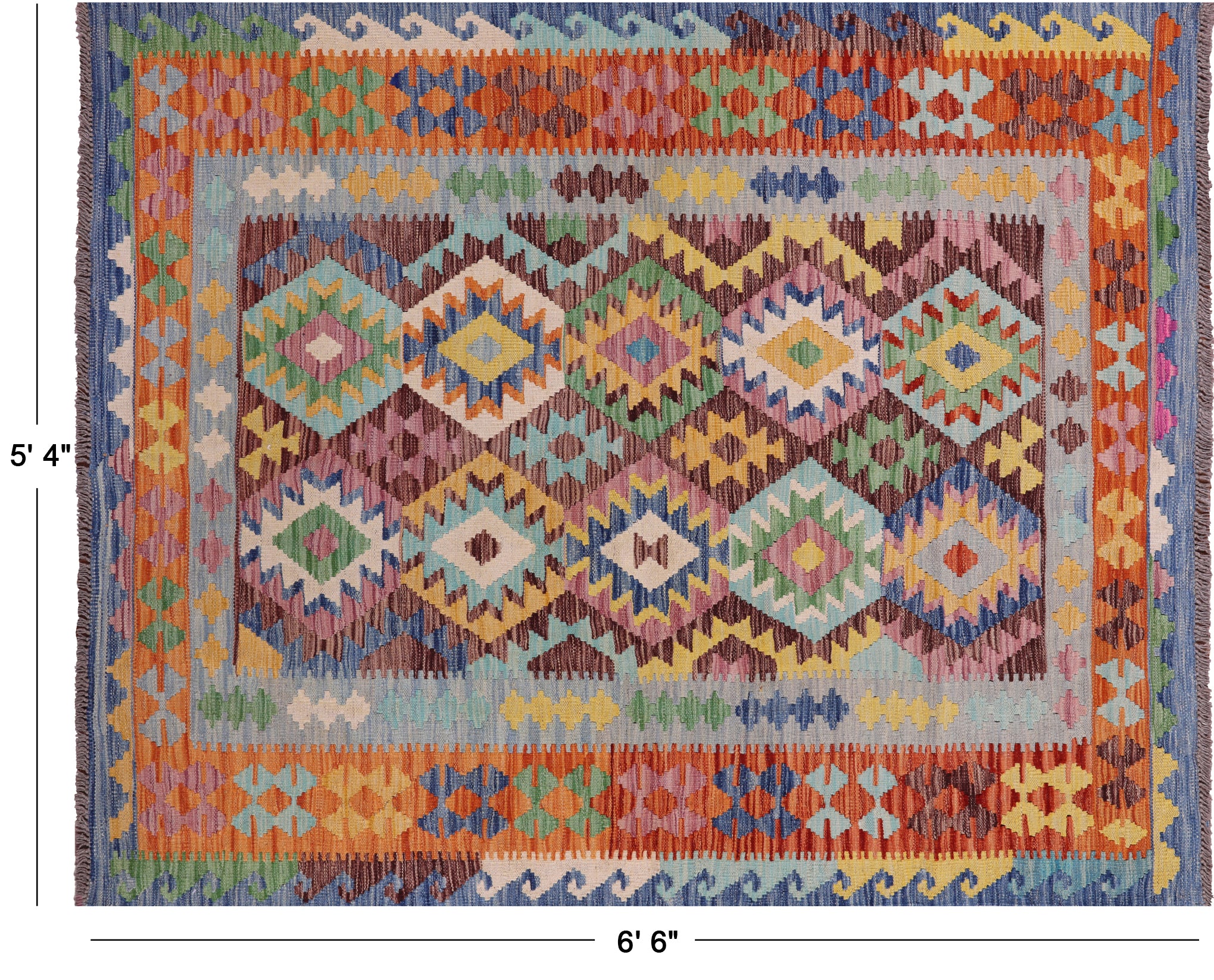 5' 4" X 6' 6" Kilim Flat Weave Reversible Wool On Wool Rug - Q17688