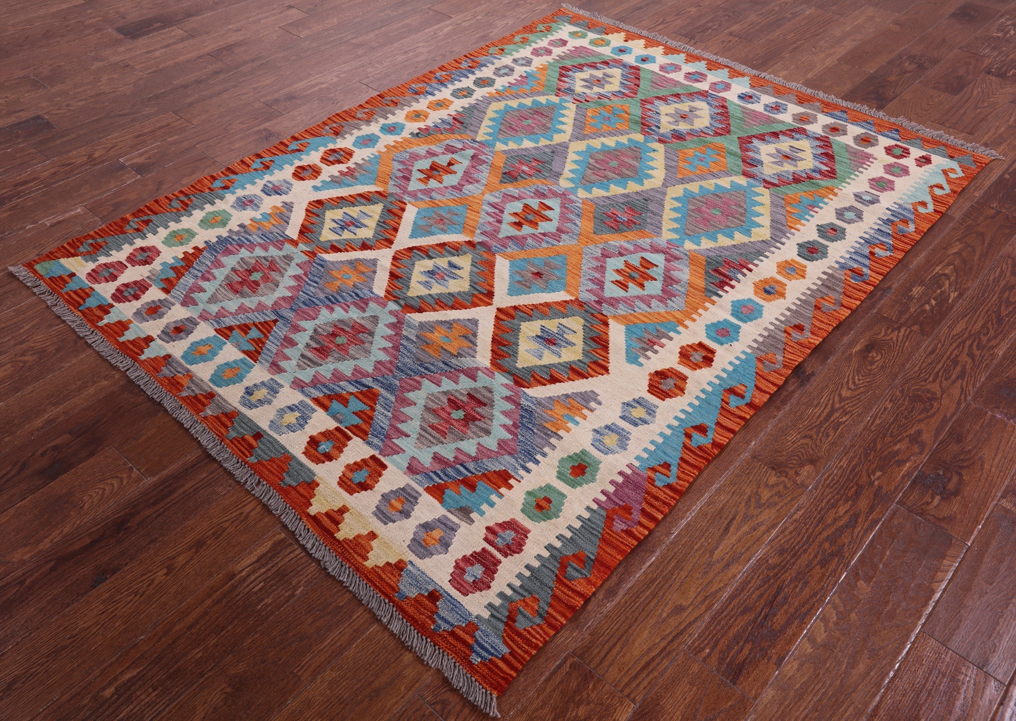 Kilim Flat Weave Reversible Wool On Wool Rug 4' 11" X 6' 7" - Q17700