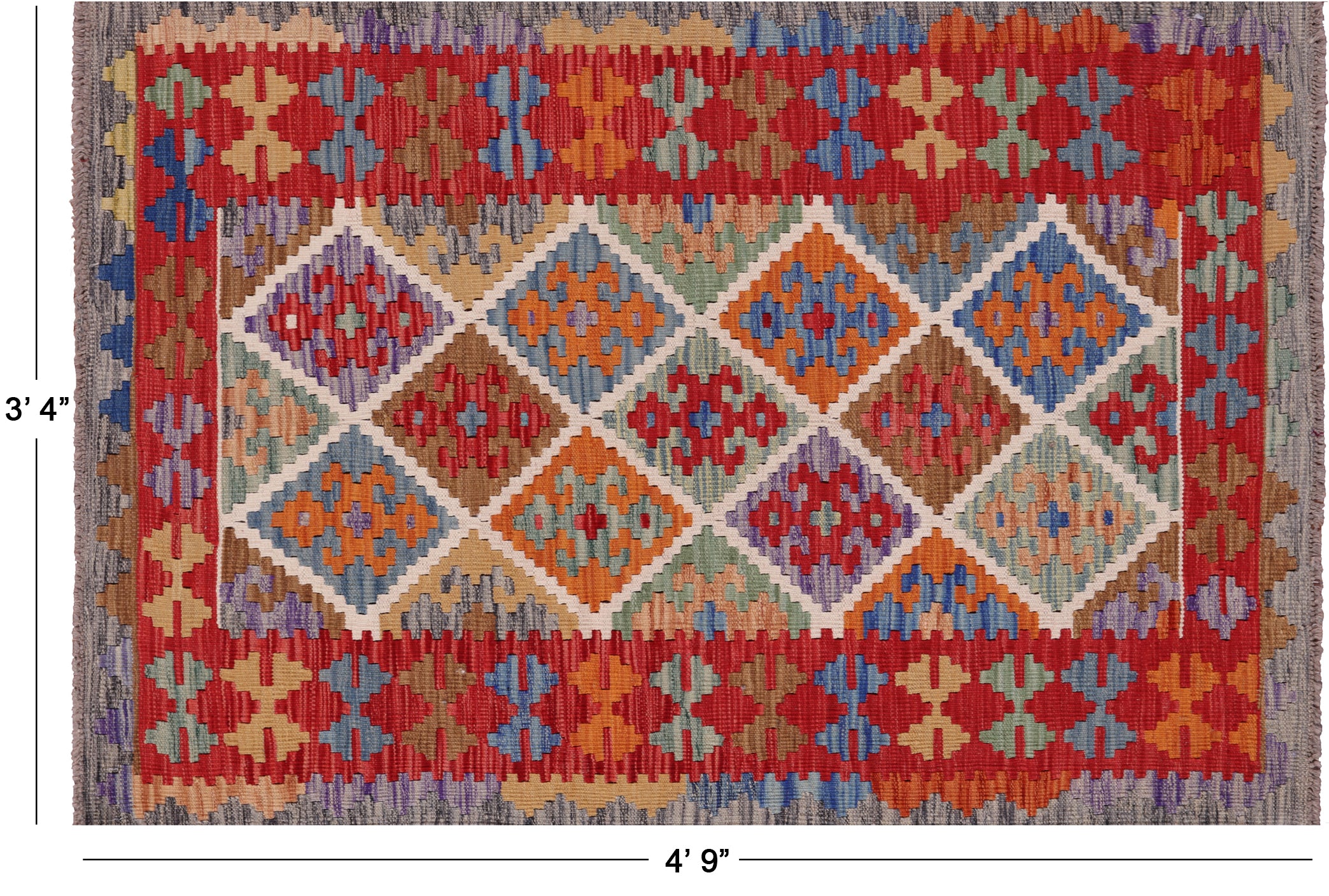 Kilim Flat Weave Reversible Wool On Wool Rug 3' 4" X 4' 9" - Q17914