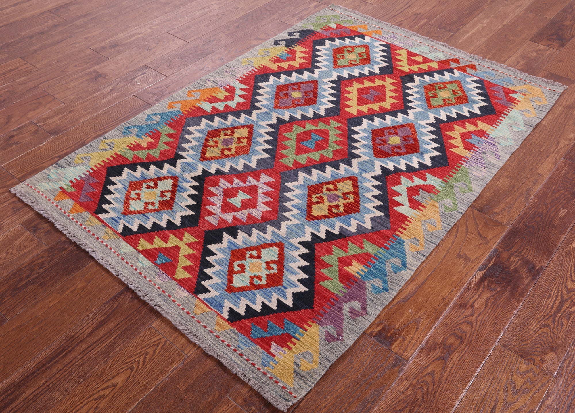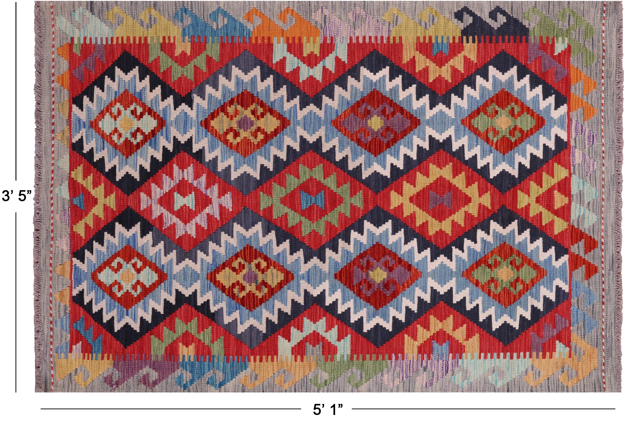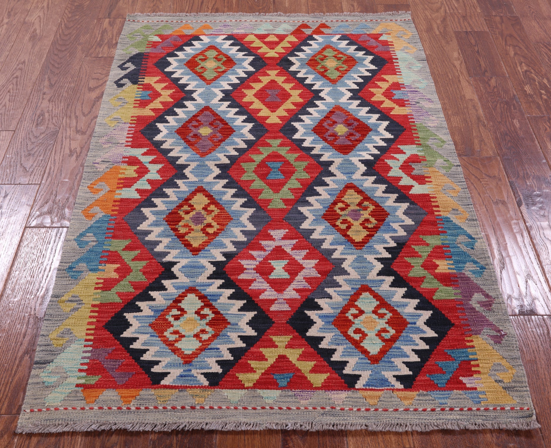 3' 5" X 5' 1" Kilim Flat Weave Reversible Wool On Wool Rug - Q17920 is backordered and will ship as soon as it is back in stock.